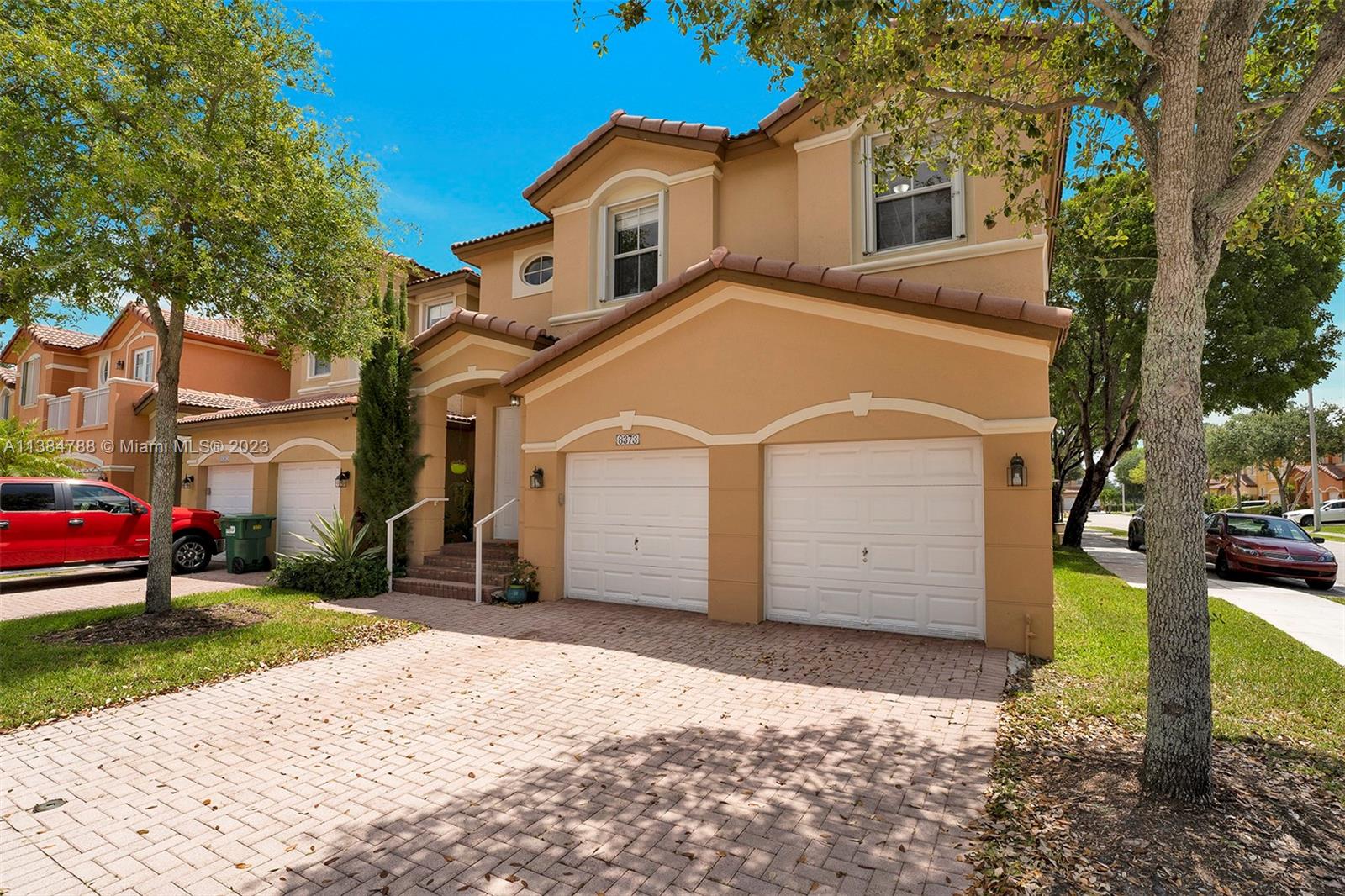 Welcome to this beautiful 4Bed 2.5Bath w/ 2 Car Garage Coach Home located in Madeira I Islands at Doral. The corner unit offers an open floor plan with marble flooring on the first floor and real wood flooring on the second floor. The kitchen features stainless steel appliances, an extra-sized refrigerator, double oven, wine cooler, stylish back splash, and cooktop. The impact windows and sliding doors on the first floor provide both security and energy efficiency, while the hurricane shutters on the second floor offer additional protection during storms. Madeira residents can access many amenities, including a community pool, gym, tennis/basketball courts, playground, jacuzzi, and more. The location is convenient, with A+ schools, shopping centers, restaurants, and major highways nearby.