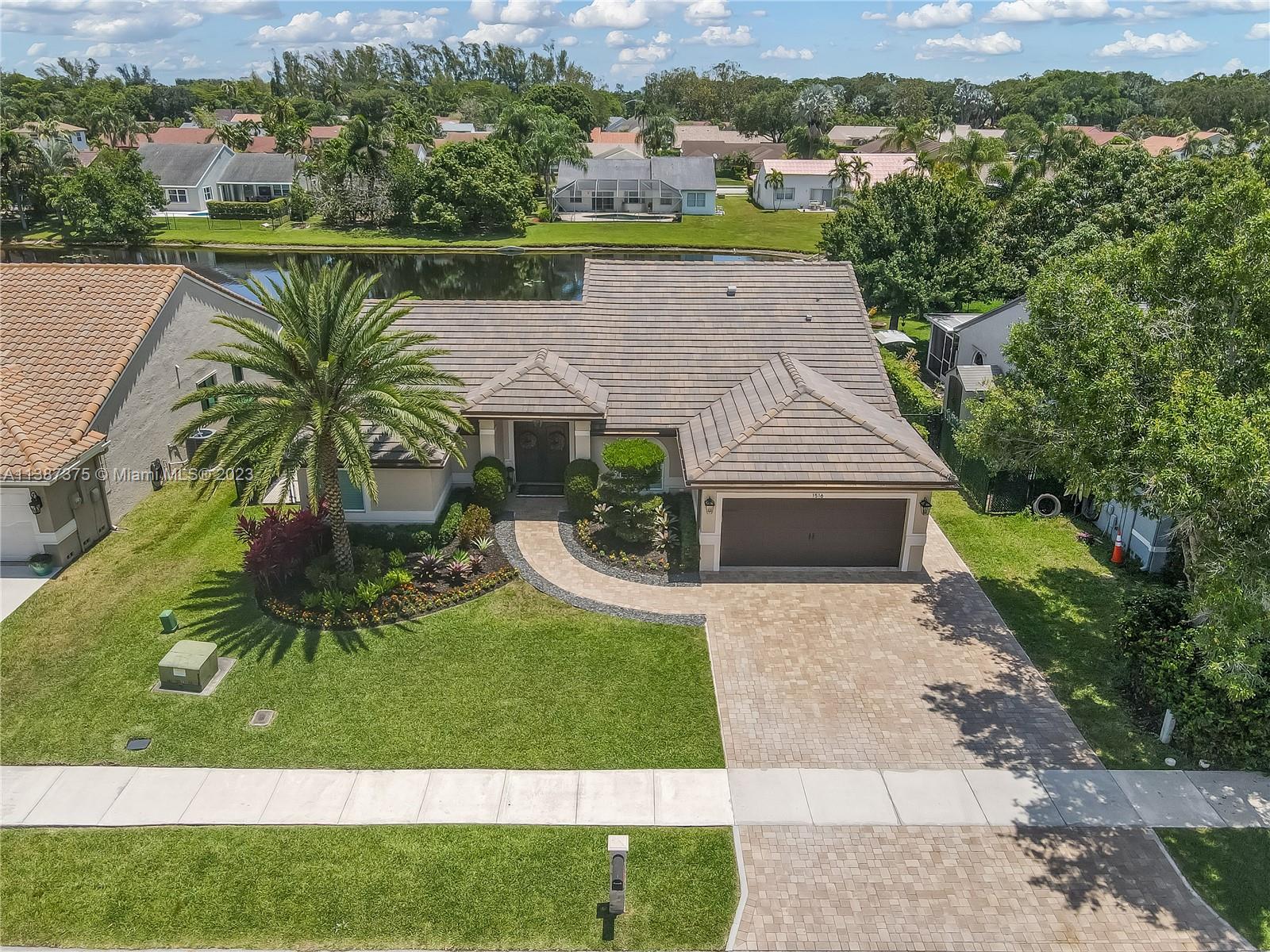 Marvelously Stylish and Upgraded Home with Heated Swimming Pool! Situated in a coveted community only ½ mile from excellent schools, this 4BR/3BA, 2,300+sqft property dazzles with lush tropical greenery and a custom paver driveway. Only updated by licensed contractors with appropriate permits, the interior features an open concept floorplan, plantation shutters, automatic blinds, and a gourmet kitchen with highly-rated GE Monogram appliances. Gather outdoors in the fenced-in and fully-turfed backyard, which has a heated PebbleTec pool with LED lights (controlled by app) and a covered lanai. Find tranquility in the primary bedroom with a California closet and chic en suite. Other features: insulated 2-car garage w/built-ins, newer roof (2018), near shops, and more! Call now for your tour!