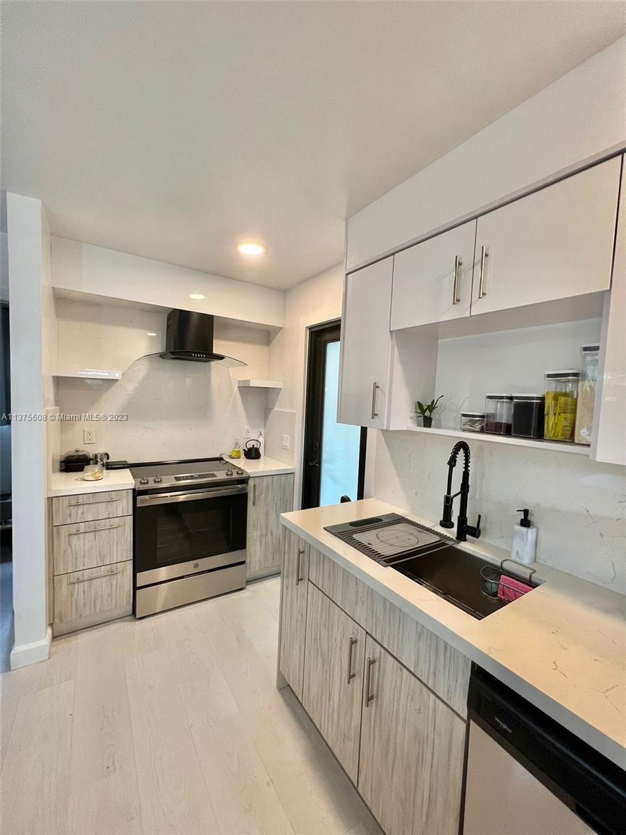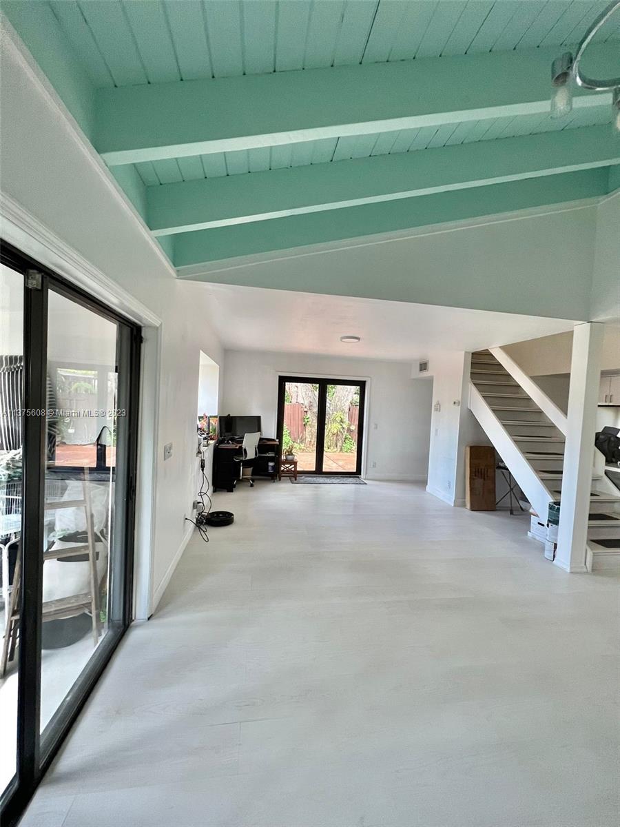 Amazing corner townhouse with extra-large private patio [backyard] (Great for pets, large family gatherings, gardening). Home has the barnstyle beach feel to it. Only unit in the bldg to have an extra rm downstairs to use as an office or 3rd bedrm. Updated Floors & kitchen with stainless steel appliances - Hurricane Impact Windows. Updated half bathrm on 1st floor. Washer and Dryer in the unit. Beautiful wood beams on the ceiling in the living room (Vaulted ceiling). Updated & modern looking large master bedrm w balcony & bath with beautiful, modern. Renovated Large walk-in closets! AC and water heater fairly new. Close to the beaches, Young Circle, Aventura Mall & Only one block west of US1. No pet restrictions. Low HOA fees. Truly a find! Do not miss this opportunity!