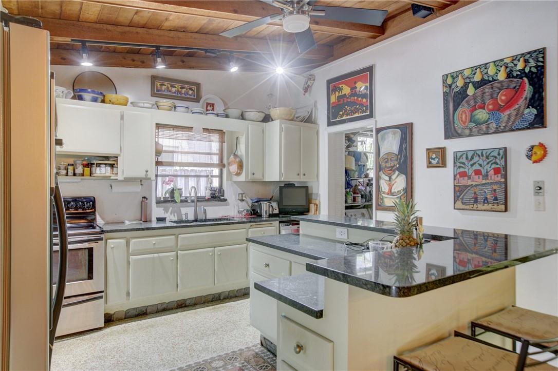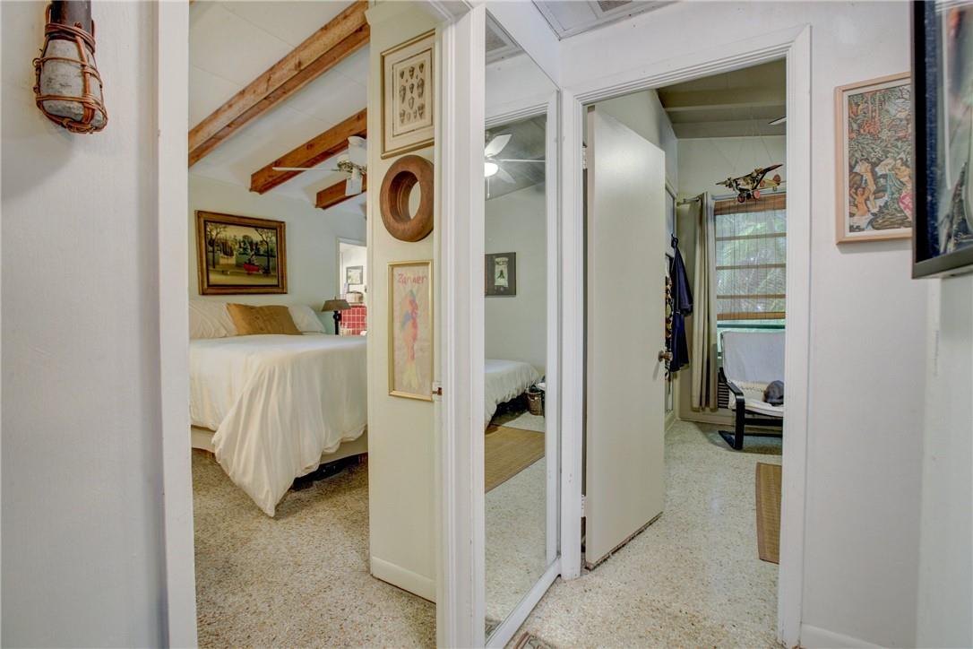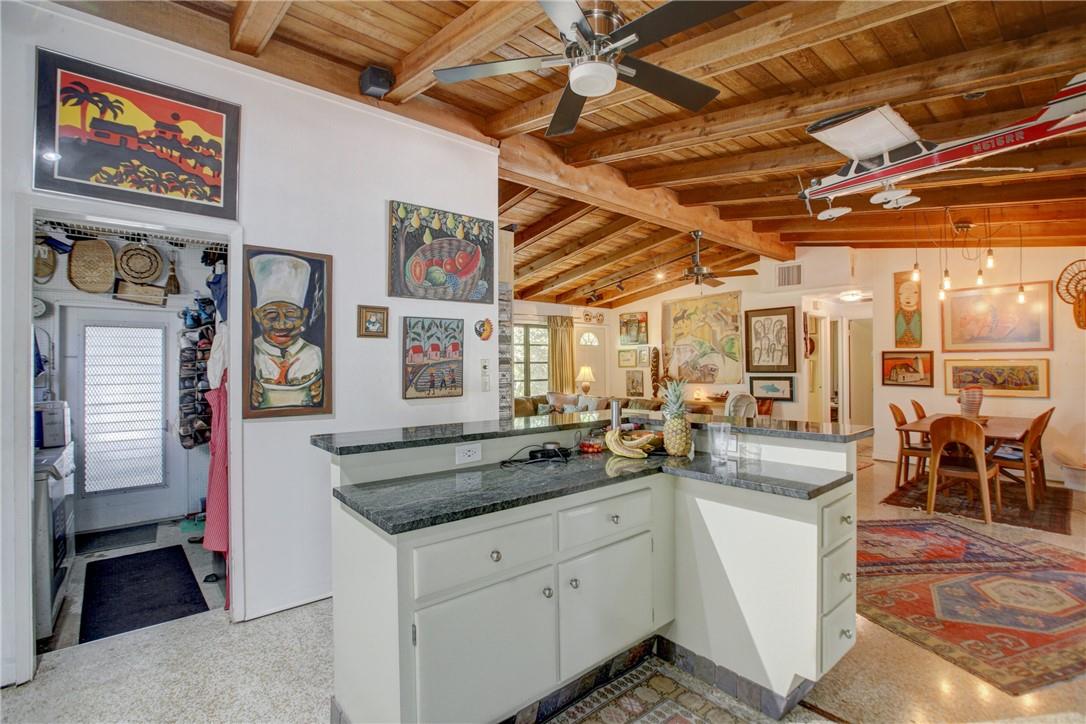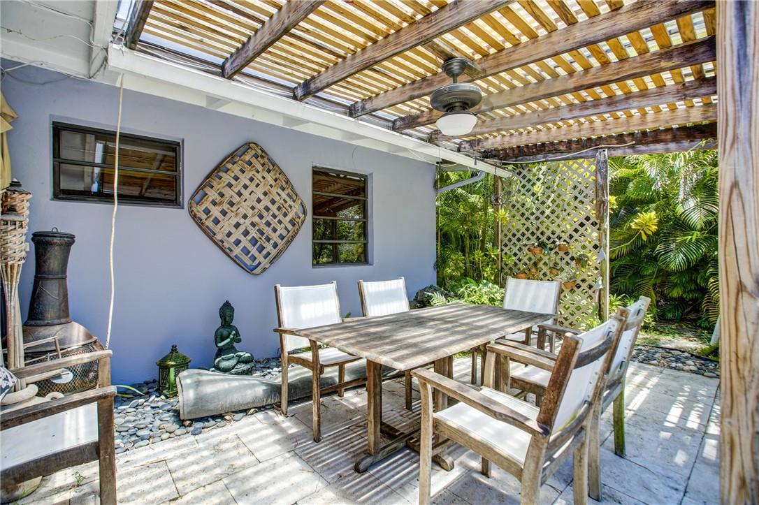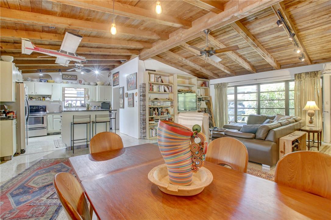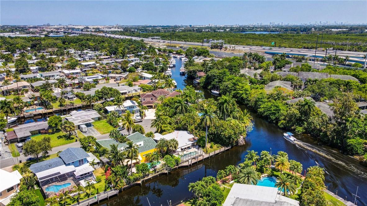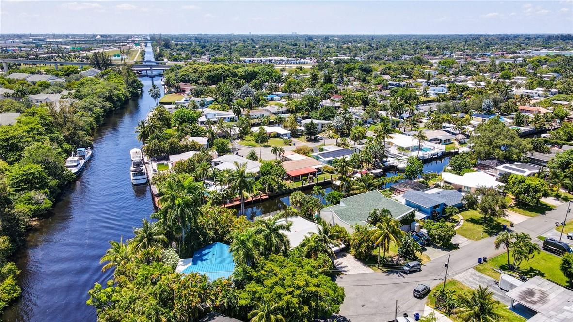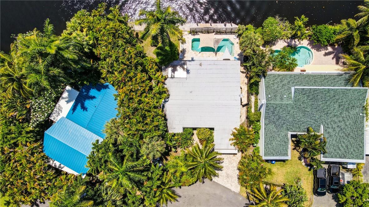 Welcome to the highly sought after Lauderdale Isles. This 2-bed, 2-bath gem is a coastal paradise, highlighting 95 feet of waterfront ocean access without any fixed bridges and a stunning river view. Its open, bright, and airy interior creates a welcoming atmosphere. The pool area features a bar and seating area, ideal for entertaining, south side yard sports a bocce court, while the private dock invites you to explore the waterways at your leisure. Inside features charming terrazzo floors and cedar ceilings. Conveniently located close to major highways, roads, shopping, entertainment, and much more, this home offers convenience and elegance in one. Any / all measurements are estimates and should be verified by the buyer. SURVEY ATTACHED.