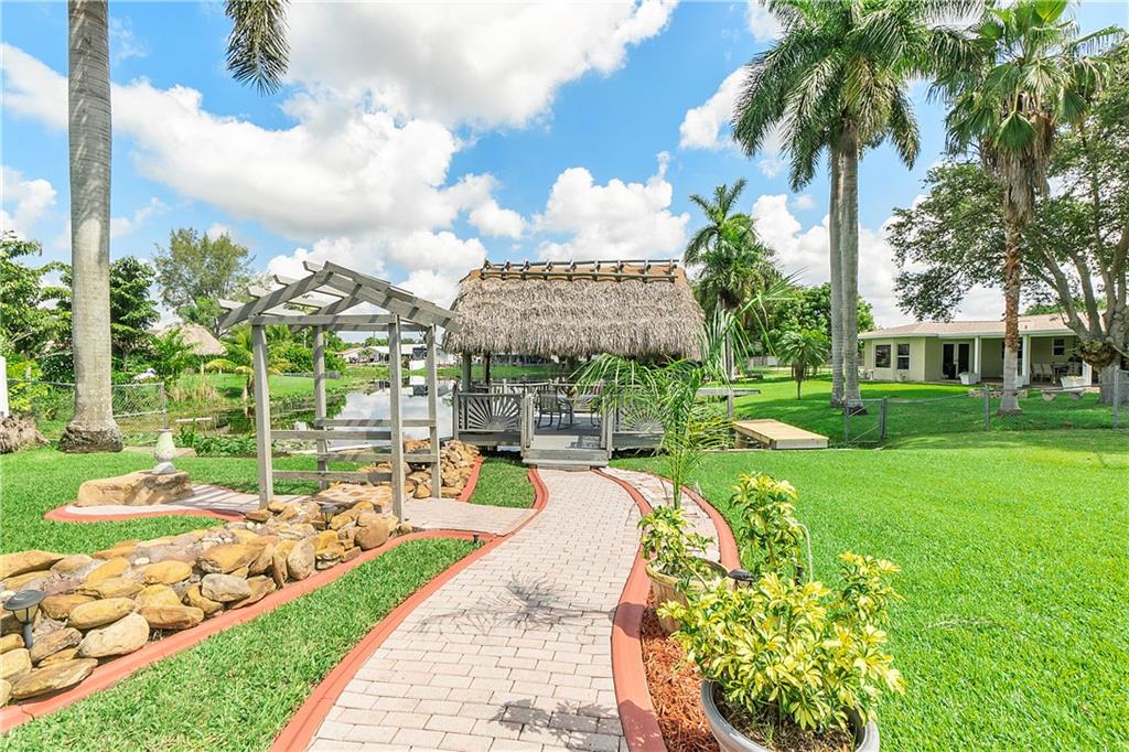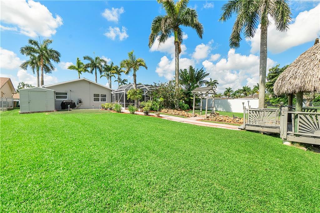 ABSOLUTELY ONE OF THE BEST BACKYARDS YOU WILL EVER SEE! HUGE LAKEFONT LOT WITH SCREENED POOL, WATERFALL & CREEK FEATURES, WOOD DECK, TIKI HUT, PUTTING GREEN, AND LARGE SHED. HURRICANE IMPACT WINDOWS, FRENCH DOORS, & GARAGE DOOR. FAMILY FRIENDLY 3 BEDROOM/2 BATH SPLIT FLOOR PLAN. GOURMET KITCHEN WITH CORIAN COUNTERS, TUMBLESTONE TILE BACKSPLASH, AND NEWER APPLIANCES. NEW ROOF IN 2013. FRESHLY PRESSURE-WASHED AND PAINTED. CERAMIC TILE FLOORING INSTALLED ON A DIAGONAL. THIS IS FLORIDA LIVING AT IT'S FINEST! IF YOU ARE STILL READING THESE REMARKS, YOU MAY ALREADY BE TOO LATE!