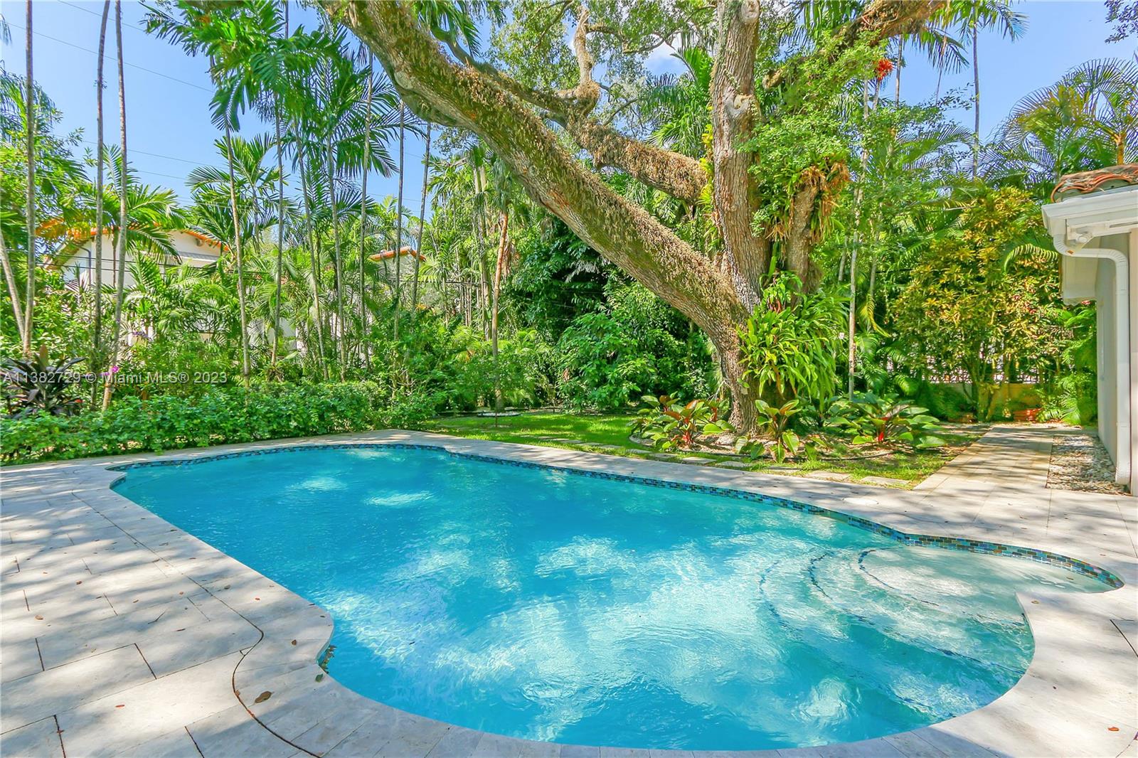 Welcome to this 4 bed, 4.5 bath residence perfectly located in the best part of Coral Gables on a large and private 13,000 SF lot. Originally built in 1955 but completely renovated in 2020 with modern, top of the line upgrades. This home features Italian porcelain floors, a European custom kitchen with Bosch appliances, impact windows, new A/C units with new duct work, and custom cabinetry throughout. The open floorplan includes vaulted ceilings in family room overlooking the lushly landscaped and private backyard oasis that centers around a beautiful saltwater pool. All 4 bedrooms are en-suite and have large custom closets. This is the perfect home for families and entertaining located in the best area of Coral Gables.