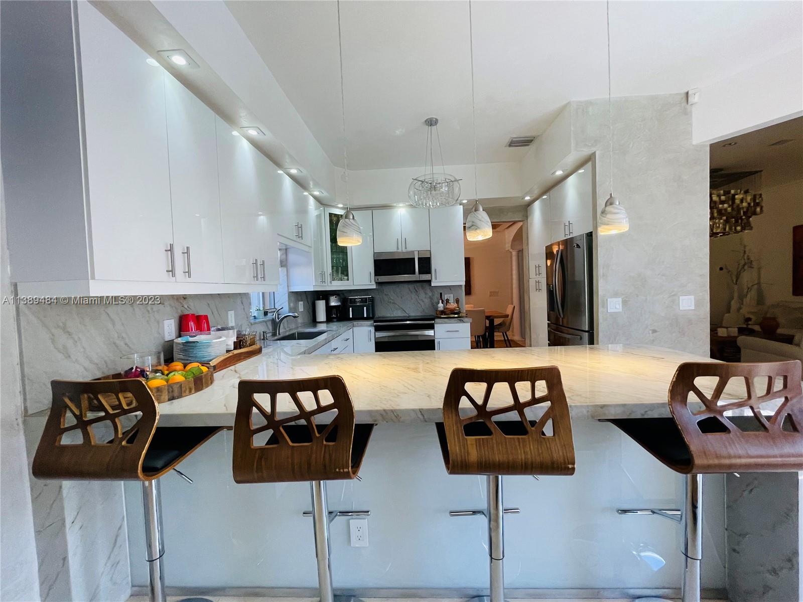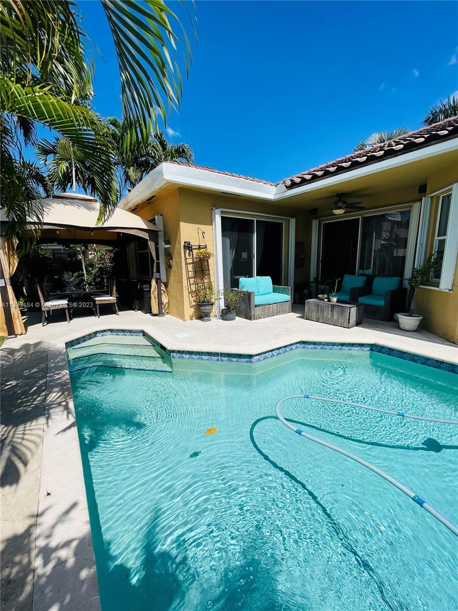 Rare find in desirable gated community Vizcaya. Completely updated 3/2. Relax in this beautiful backyard with a saltwater pool, lush landscape and herb garden. This home has an oversized laundry room with marble countertop and linen cabinets. Come and experience your personal sanctuary. Will not last.