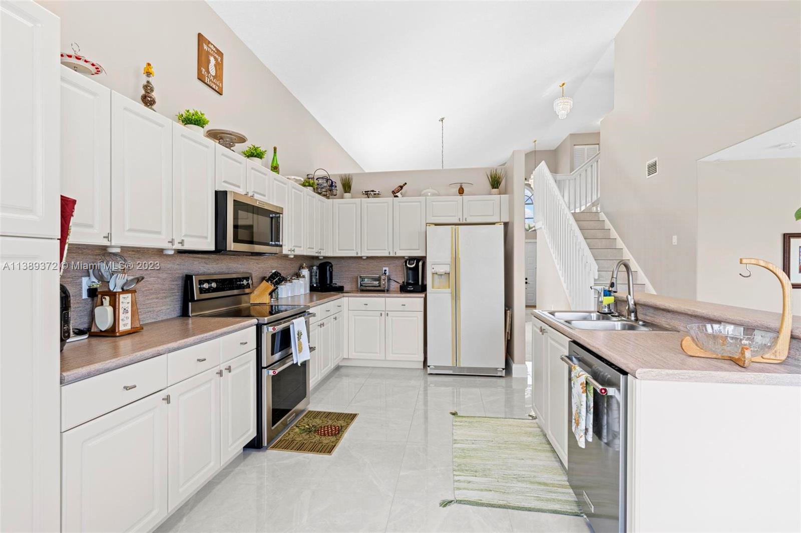BEAUTIFUL 4 bedroom 3 bathroom home situated on a serene private lake! ORIGINAL OWNER! Pride of ownership shows with this home as they have kept this property in immaculate condition. As soon as you step inside you are greeted with natural lighting, volume ceilings and lovely lake views. New tile flooring throughout. Fantastic floorpan with a full bedroom and recently updated bathroom on the first floor! Entire interior was painted in 2022! Two bathrooms have been remodeled and updated! Two car garage and paved driveway! Relax and enjoy Florida living in this wonderful backyard with lake views. Room for a pool! Excellent location near A rated school, shopping, restaurants, hospitals and more!
