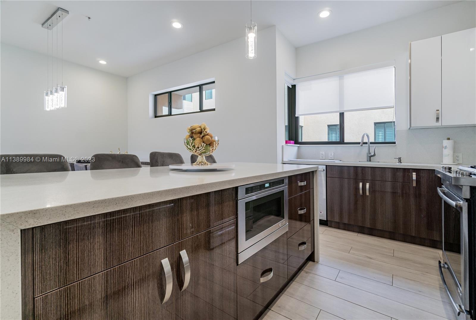 This newer construction FURNISHED townhome is located in the boutique Victoria Park community of The Mandarin. On the second floor, there is a generous open living area and kitchen, a master bedroom, a third bedroom, a bonus open den area, and a laundry room. An impressive turnkey property, this property is equipped with impact windows, an impact garage door, a tankless water heater, a private fenced yard, and designer-selected light gray Montana Maple 8"x45" plank tile flooring, high ceilings, custom laminated lacquer cabinetry in the kitchen and bathrooms, JennAire stainless steel appliances, quartz countertops, 8 foot solid core interior doors with 2-panels, Ecobee air conditioning controls, and ultra high-end bathroom finishes.