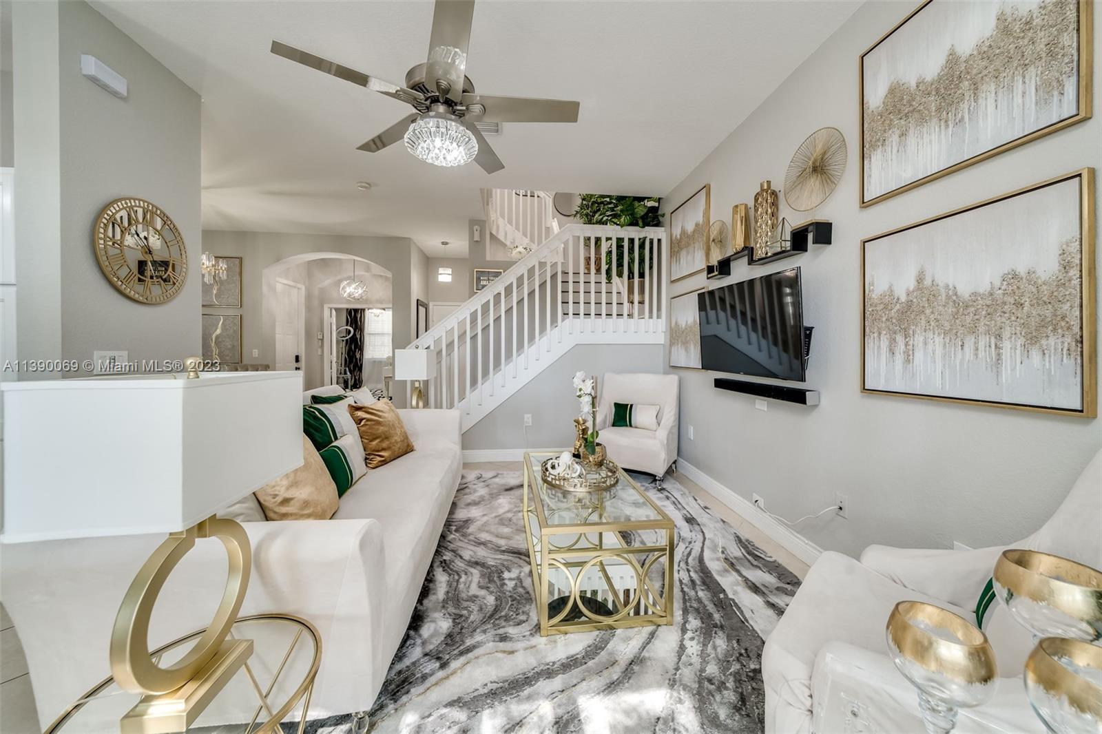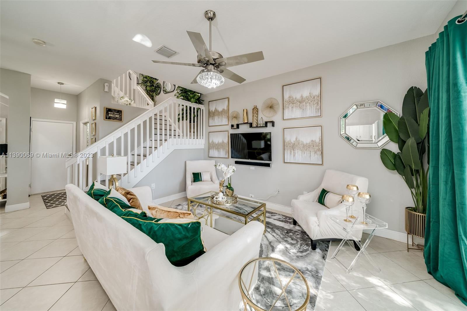 Opportunity knocks to own a rarely available beautiful and updated two story townhouse, corner unit in Silver Falls a gated community. This turnkey unit has 3 bedrooms and 2 full baths upstairs plus a den or 4th bedroom (ideal for home office) and a full bathroom downstairs. One car garage. Almost 2000 sf. under air. Home features high ceiling dining and living room. Updated kitchen with granite countertops and SS appliances. Oversized in suite master bedroom with a tray ceiling and walking closet. Master bath with large tub, shower, and his and hers vanities. Upstairs laundry room w/full size washer and dryer. Impact windows and doors. Large fenced in patio perfect for entertainment. Centrally located in Miramar close to shopping malls, dining, I-75, and Turnpike.
