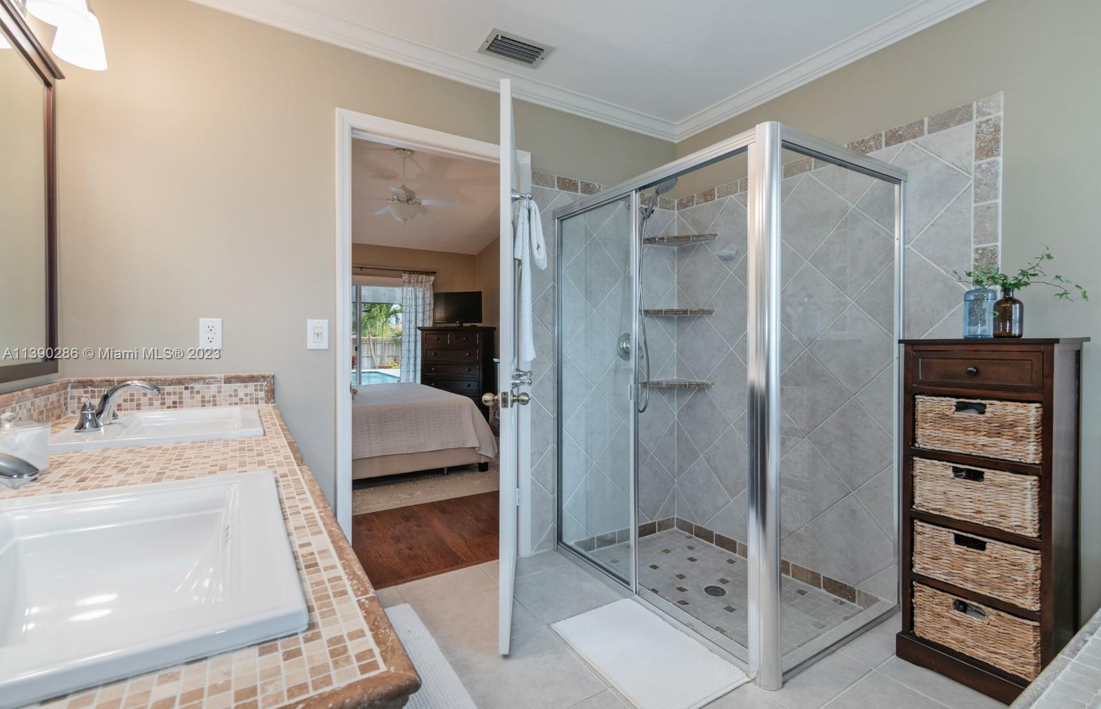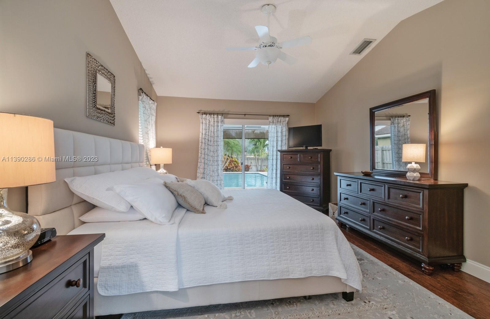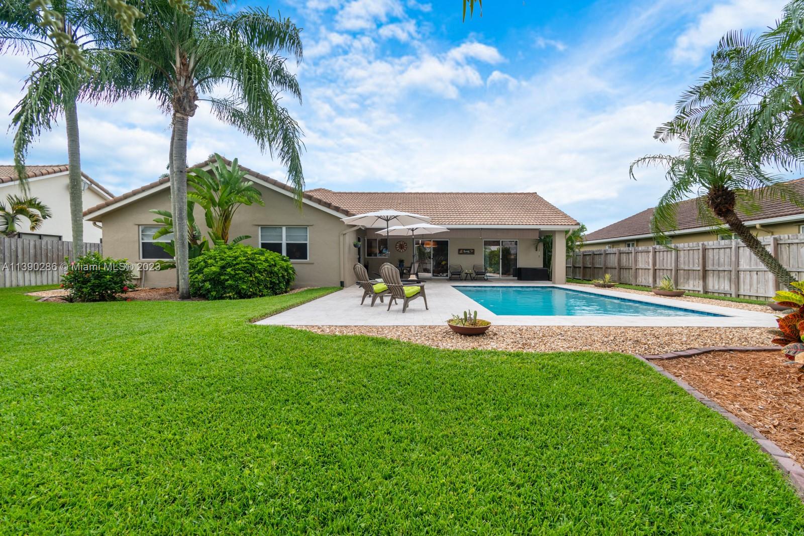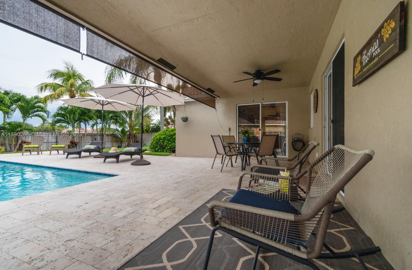 Your future home awaits in this tastefully renovated 3bed 2bath home. A fully remodeled kitchen welcomes you as you walk into this impeccable property. White shaker cabinets, granite tops, modern backsplash, stunning island, deep sink, Whirlpool appl, pull-outs, BONUS pantry, passthrough window. Master w/high, sloped ceilings, view to pool & garden, walk-in closet. Renovated bath, double sinks, separate shower & tub. Tile & laminate floors. Window treatments add elegance & warmth to every space! Remodeled 2nd bath. Laundry w/Whirlpool W&D. Modern style pool, gorgeous backyard, travertine deck. Porch offers shaded area great for relaxing & entertaining. Private fully fenced. 2 sheds. 2-car garage, side door for access. Impact garage door, panels. Tile roof 2009. HOA $370/yr Superb location!