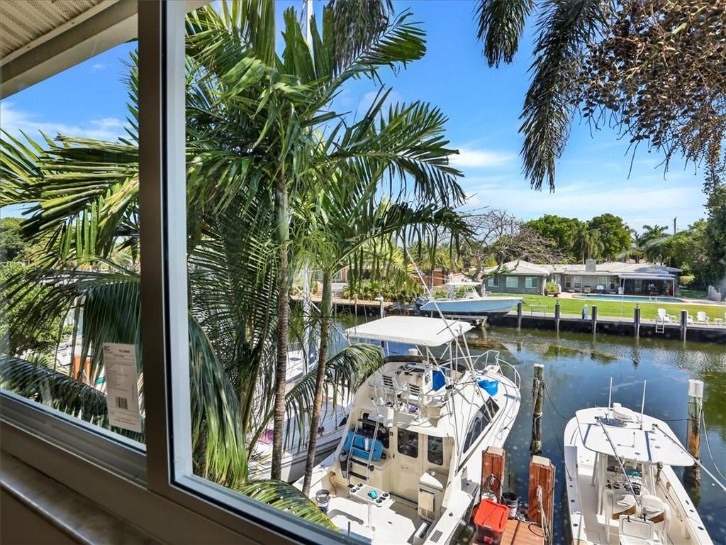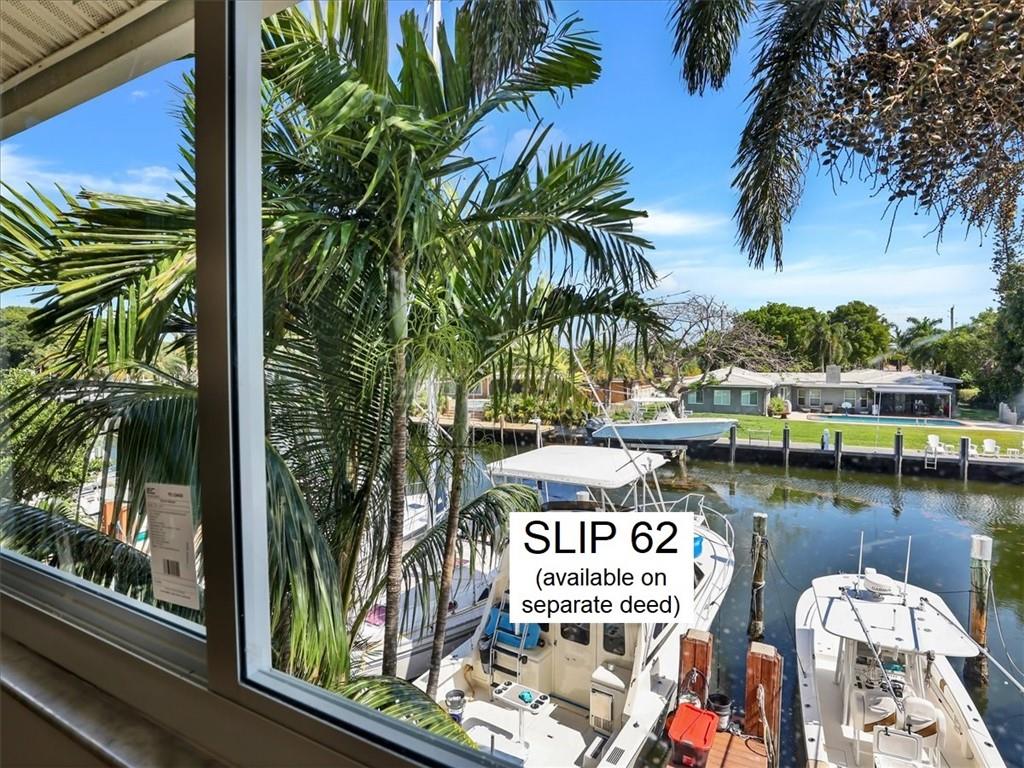 DEEDED DOCK (slip 62) adjacent patio available at $145,000. Ten minutes to Hillsboro inlet. See your boat from your sofa and large shaded patio with palm trees. Boater’s paradise in a quiet, friendly boating community tucked away on a scenic canal. Only 3 minutes from the beach. Less than half a mile to Alsdorf Park Public Boat Launch. Two bedrooms upstairs each with its own en suite bathroom. Half bath downstairs. Full-size washer and dryer upstairs. New AC 2021. New impact windows and doors 2023. One deeded parking space (207), plus ample guest parking. Low monthly HOA dues $200/mo (includes landscaping and water/sewer/trash). Community swimming pool. Dock is on a separate deed from townhome (slip fee $170/QTR). Easy to show! Currently empty with SUPRA box (front fence).