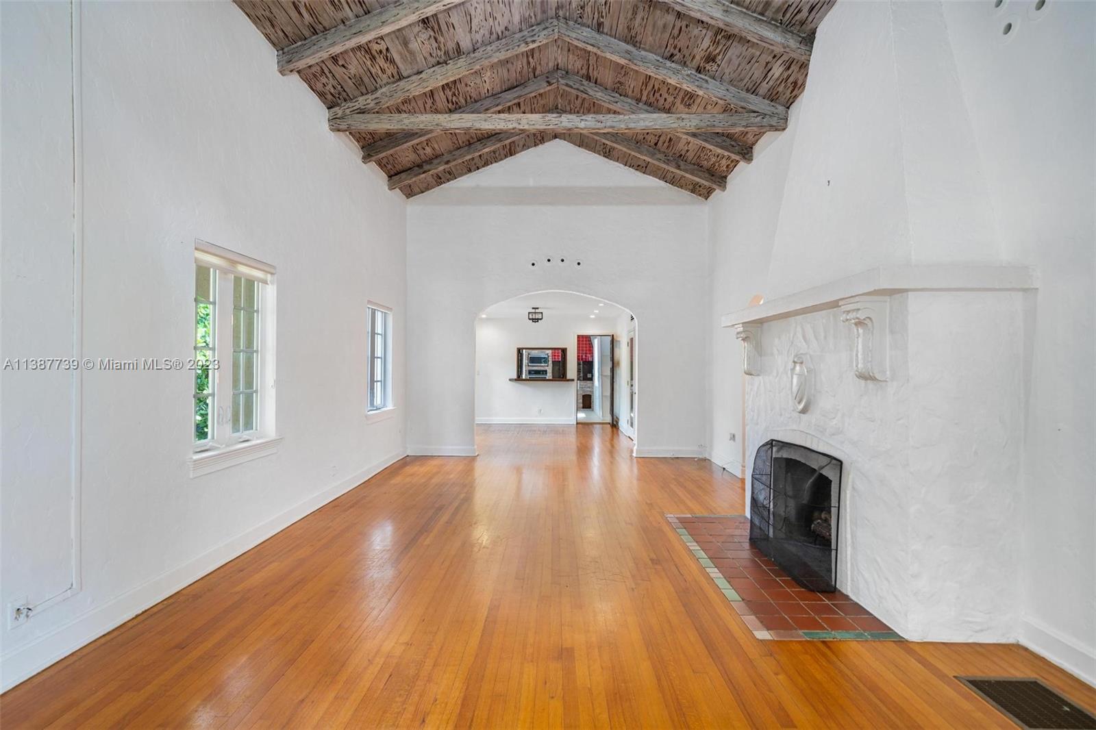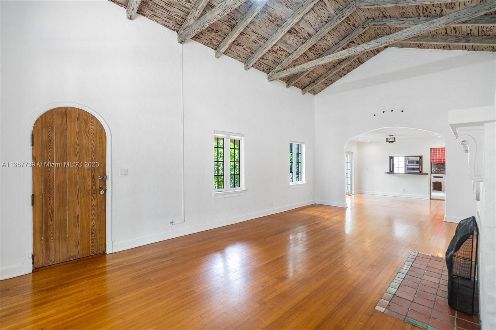 All the makings of a quintessential old Spanish in the Gables - this home is ready for some love to enhance its unique architectural features. Located in the highly desirable "Golden Triangle" of Coral Gables, this 3/2 home boasts an impressive vaulted ceiling flanked by a fireplace and features a bonus: remodeled, detached cottage that includes a full room, closet and cabana bath that leads to the pool. Home has been updated with impact windows & doors (minus kitchen windows). Enjoy Gables living at its best: take a short walk to the Biltmore Hotel and golf course, Coral Gables Youth Center and newly remodeled library or experience fine dining close by in downtown Gables and the new Plaza Coral Gables Development.