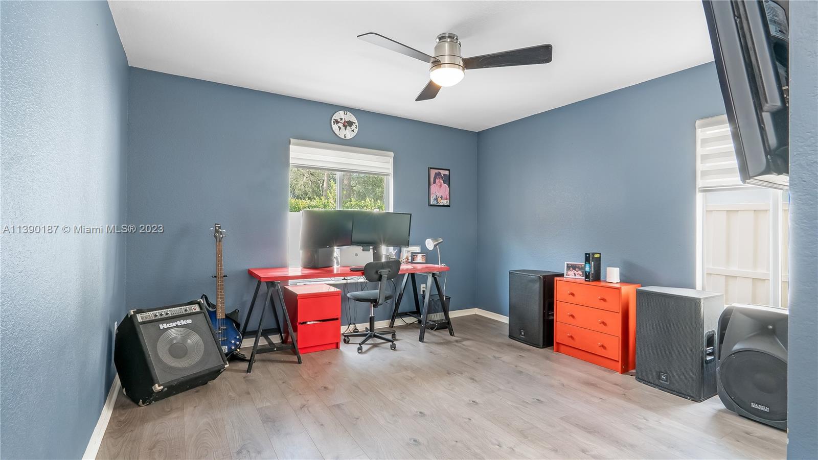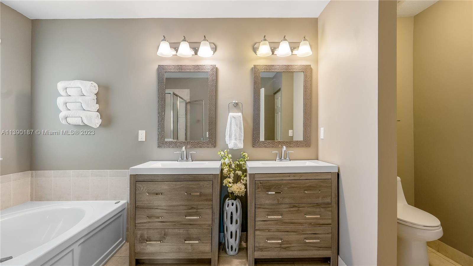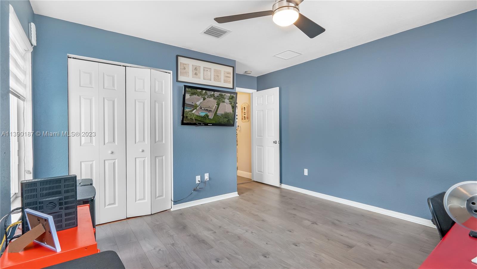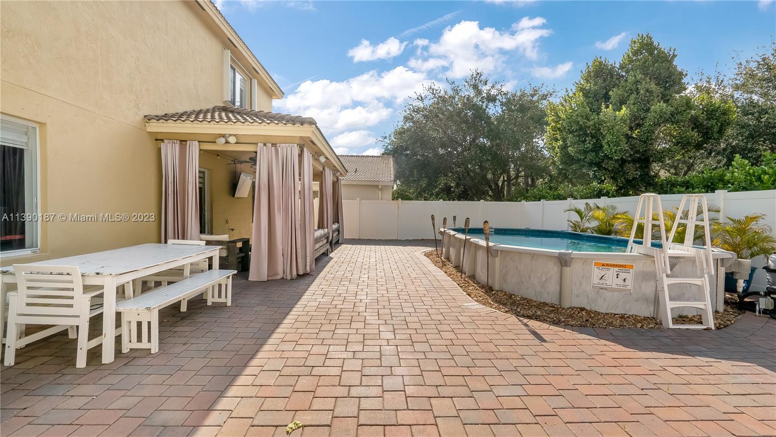 Have a big family? Spacious 5-bedroom, 3-bathroom home in West Miramar's Silver Fall community that offers 24-hour security with a clubhouse that offers a pool and gym. The living area with laminate wood floors and stairs to the upper level. The master bedroom is enormous, featuring a sitting/lounge area, his and hers vanity, a Roman tub, a shower, and walk-in closets. Perfect for large families, with a covered back patio, paved patio perimeter, and accordion hurricane shutters on upper windows. The backyard is completely fenced and enjoy the pool on sunny days. Renovated and spacious kitchen, ideal for any homeowner.Very low association. There is one bedroom and one bathroom on the first level. THE MASTER BEDROOM HAS A BONUS ROOM THAT COULD BE 6TH BEDROOM.