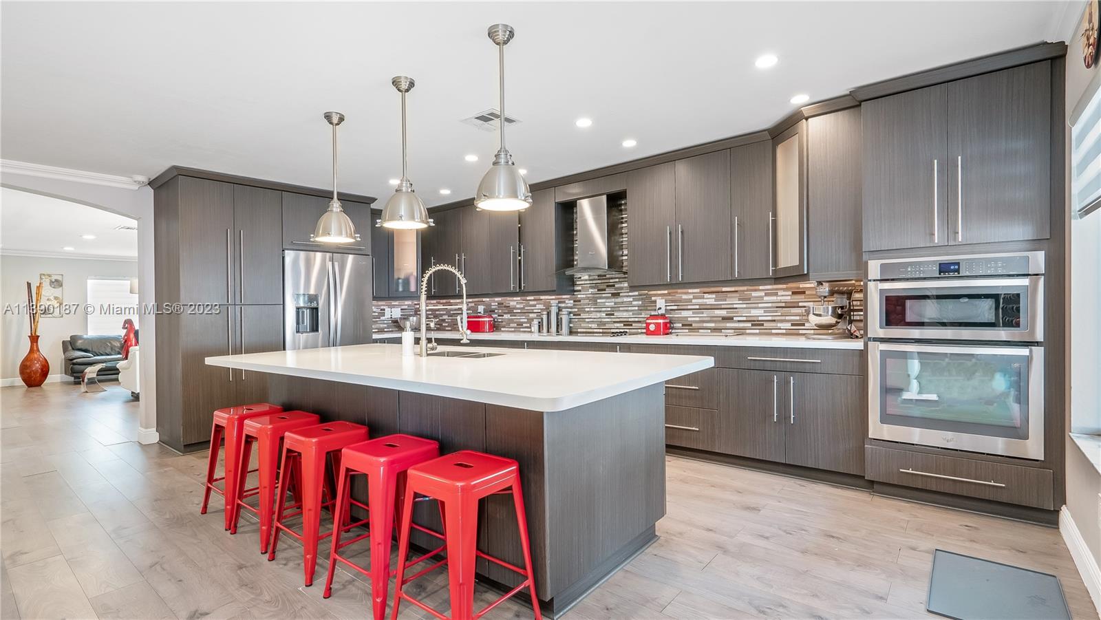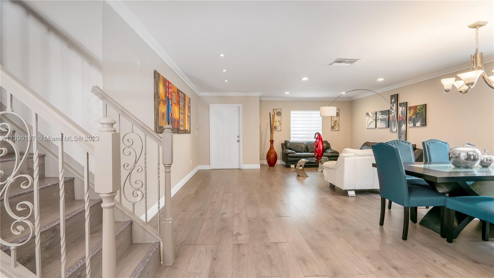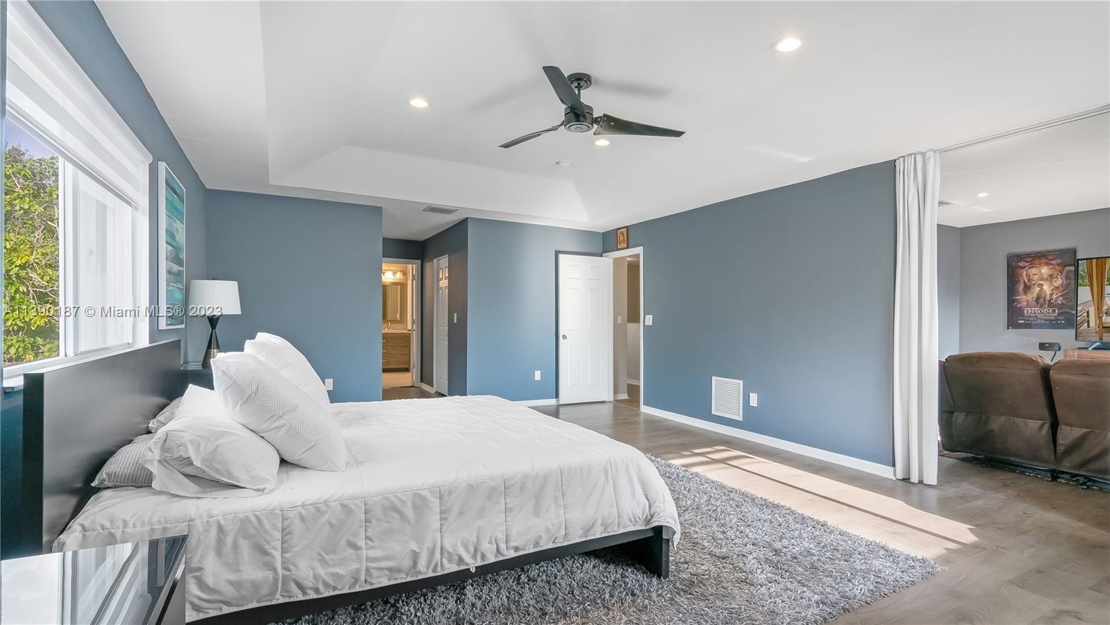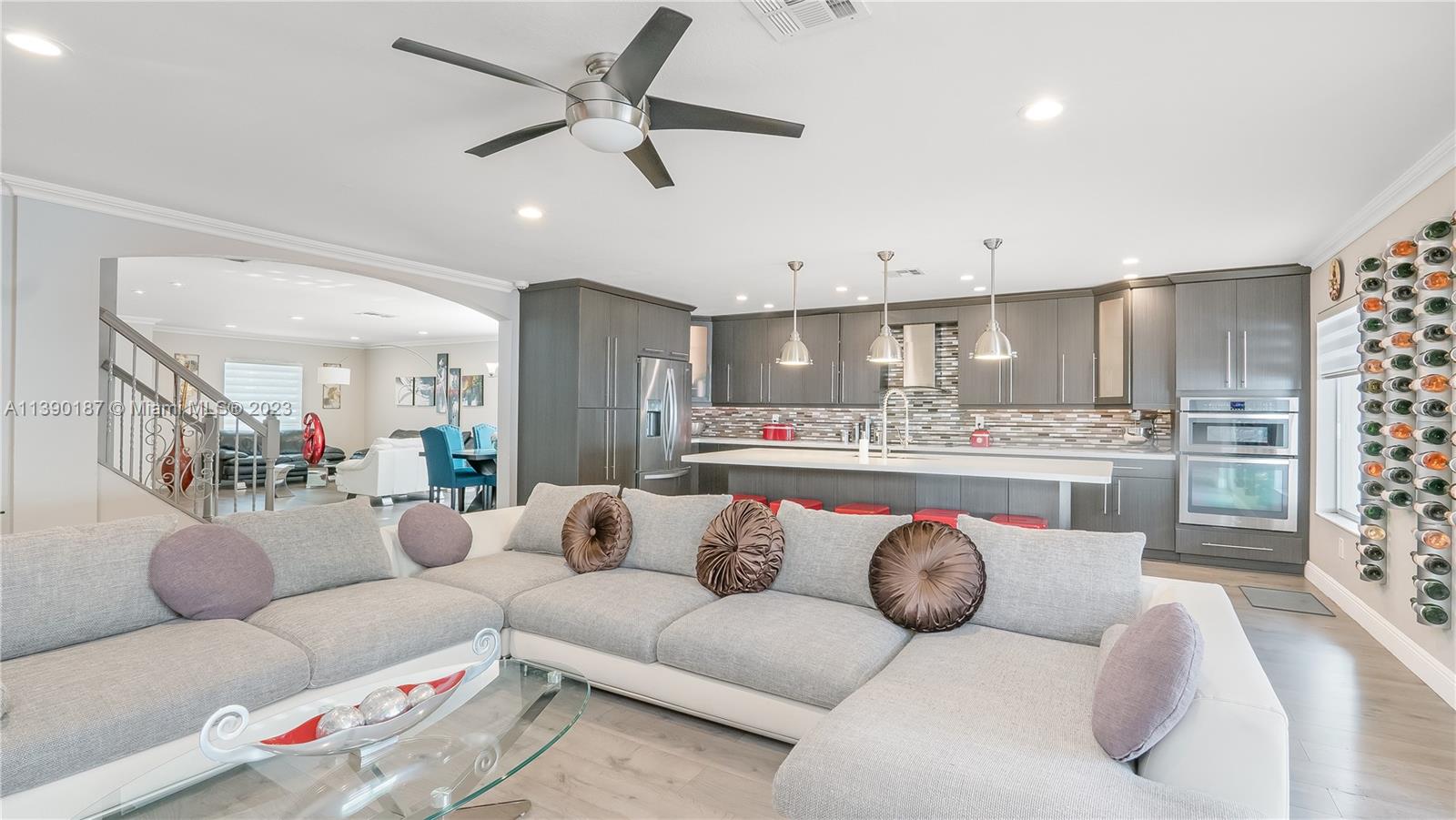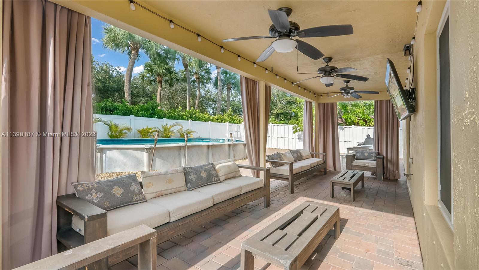 Have a big family? Spacious 5-bedroom, 3-bathroom home in West Miramar's Silver Fall community that offers 24-hour security with a clubhouse that offers a pool and gym. The living area with laminate wood floors and stairs to the upper level. The master bedroom is enormous, featuring a sitting/lounge area, his and hers vanity, a Roman tub, a shower, and walk-in closets. Perfect for large families, with a covered back patio, paved patio perimeter, and accordion hurricane shutters on upper windows. The backyard is completely fenced and enjoy the pool on sunny days. Renovated and spacious kitchen, ideal for any homeowner.Very low association. There is one bedroom and one bathroom on the first level. THE MASTER BEDROOM HAS A BONUS ROOM THAT COULD BE 6TH BEDROOM.