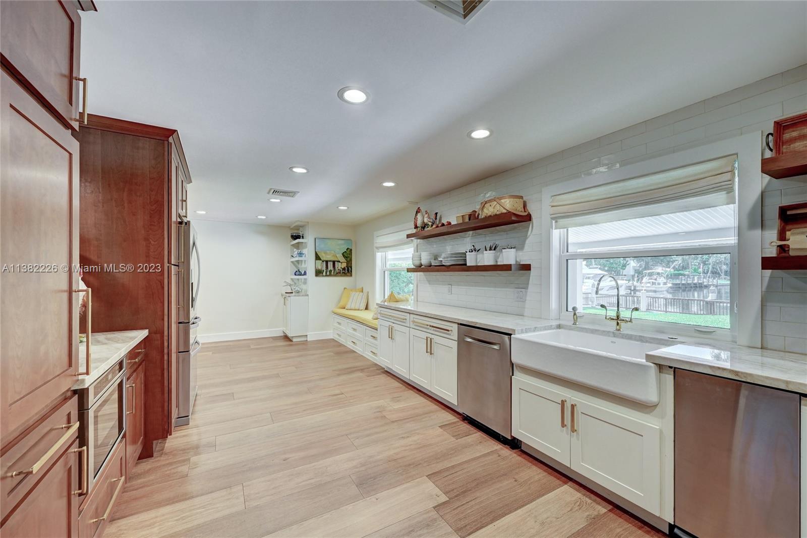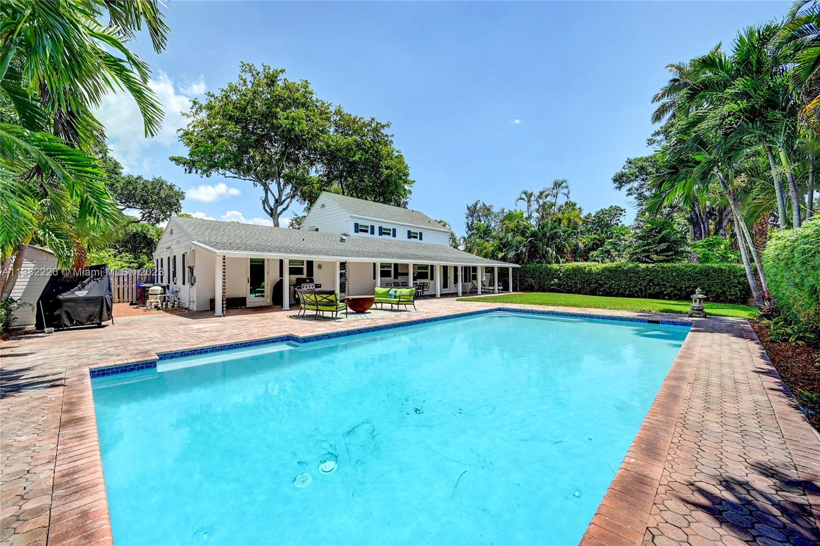 This spacious home is HURRICANE READY with timeless finishes & max privacy. Enjoy the relaxing view of the canal on the New River, perfect for kayaking/paddleboarding. Plan your next party on the oversized back patio, perfect for entertaining or chilling by the pool and firepit. Relax in the swing on the shaded front porch overlooking the expansive fully fenced & gated front yard. The options are yours to enjoy. Live your best life on the ground floor with a PERMITTED redesign & full down to studs renovation completed in 2019 including a new roof, MEP, natural gas generator; pool refinished in 2023. Nothing overlooked! No HOA. Deeded Dock. Almost a half acre with easy access to 95, 595, Turnpike, airport & downtown Fort Lauderdale. Close to St. Thomas & American Heritage. Owner/agent.