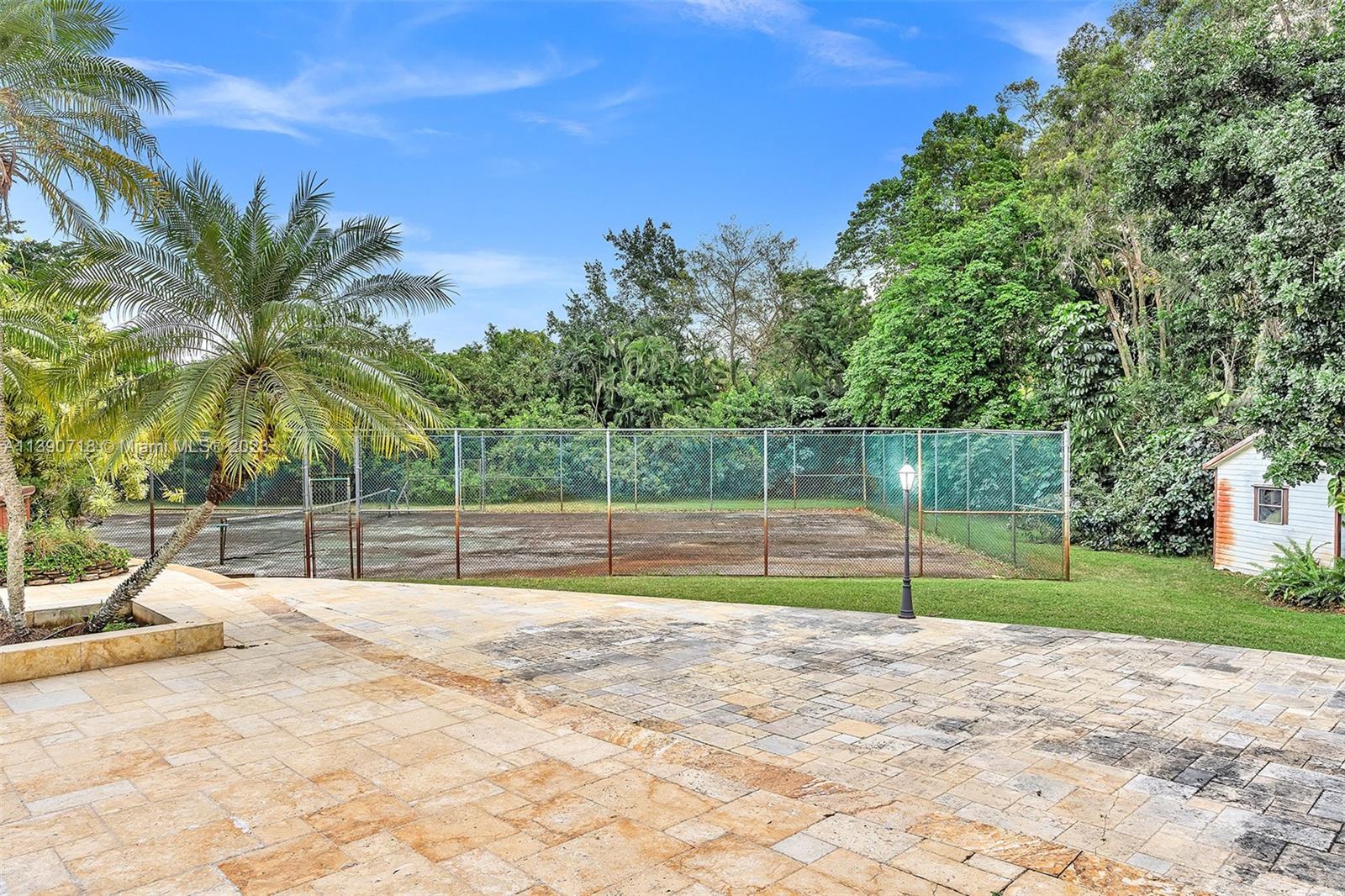Discover the ultimate oasis in this custom 6 bedroom 3 bathroom, pool home Sitting on 1.23 acres. Featuring a tennis court and a separate workshop, lots of space perfect for afterschool fun! This property offers endless possibilities for your customization! Step inside this expansive home featuring vaulted ceilings, an updated kitchen with granite countertops, a center island, and ample storage space. The master suite includes a large walk-in closet and a bonus room for your Home office or gym. Enjoy the convenience of new 3-zone A/C and Easy to install accordion shutters. Relax on the large covered patio overlooking the pool, while watching the sunrise and sunset! There is also a 2-car garage, covered parking, and a fenced yard with a lots of privacy, secured by a rolling electronic gate.