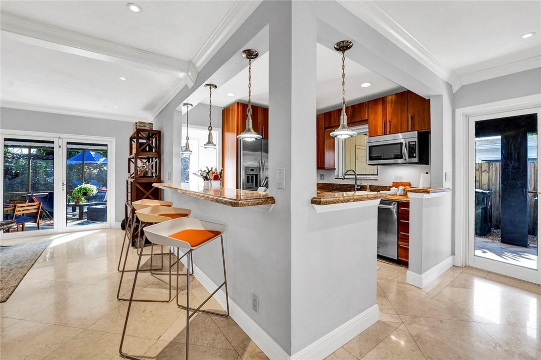 A TURNKEY..Conversation Piece-This Gorgeous 3 bed & 2 bath POOL home is located in one of best neighborhoods of East Fort Lauderdale near Poinsettia Heights. LOCATION LOCATION.. Centrally located.. Less than 2 to miles to Fort Lauderdale Beach, 1 mile to Las Olas, a few blocks south of Wilton Manors. Featuring exquisite landscape w/ Tall Trees and Smooth Lawns - inviting curb appeal, a private oasis backyard with a spacious screened-in porch, newer built POOL *SALT*, high impact windows/doors thru-out, NEW A/C, OPEN kitchen w/ custom kitchen cabinetry and alluring granite counter-tops, gorgeous stone floor tiles , interior doors are SOLID WOOD, updated baths, fantastic open layout distribution, indoor laundry room, Great for AIRBNB opportunity, furnishings can convey with sale, MUST SEE