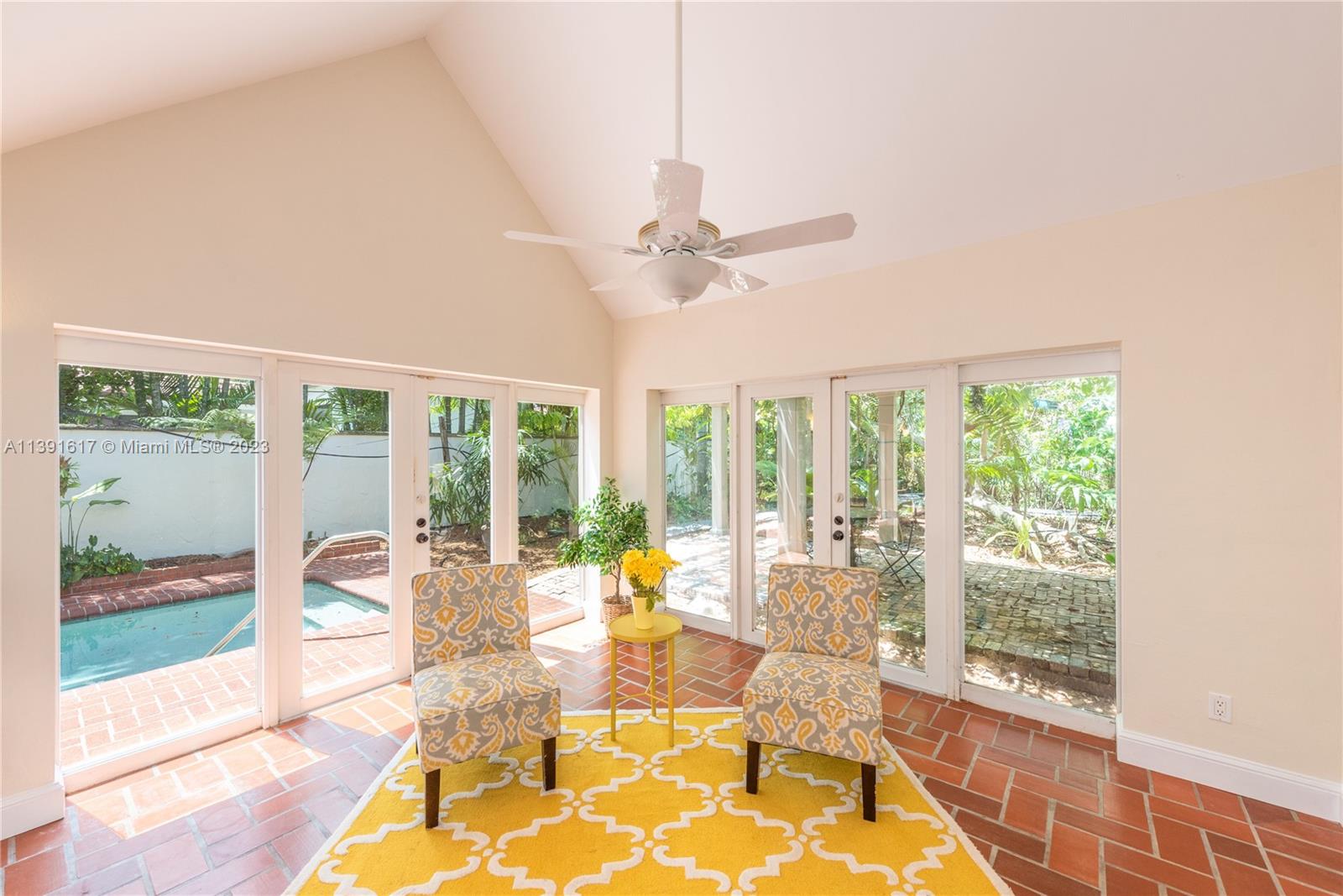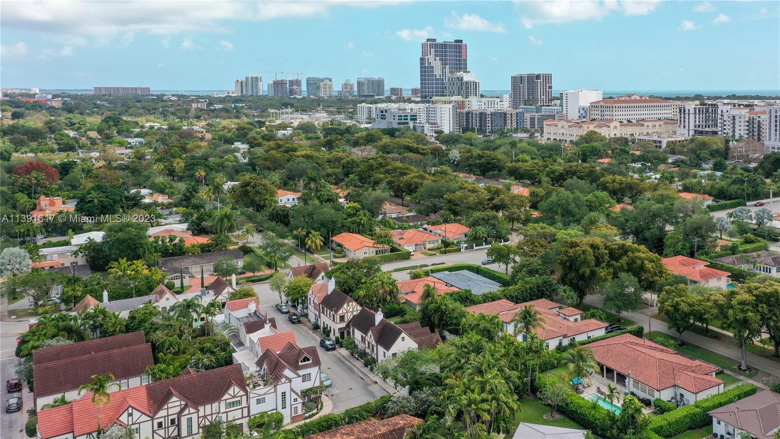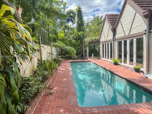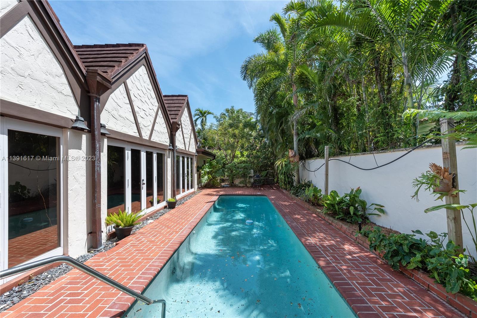 New Listing! Once-in-a-blue-moon opportunity to make one of George Merrick’s original historic villages your home. Nestled within the French Normandy Village, this unique home boasts the only swimming pool and has the largest sq. ft. and land within the neighborhood. Additionally, the house is designed to be environmentally efficient with 28 solar panels and high-end recycled materials throughout. This one-of-a-kind property has over 3,500 adj. sq. ft. High-ceiling living room. Dining room, 2 fireplaces, eat-in kitchen, huge family room with French doors opening to brick patio and pool. 2 master suites - one up and one down, additional bdrm up, library, sitting room, nursery or office, laundry room & 3.5 baths. Lushly landscaped, walled garden. The home can also be enlarged to 5 bedrooms.