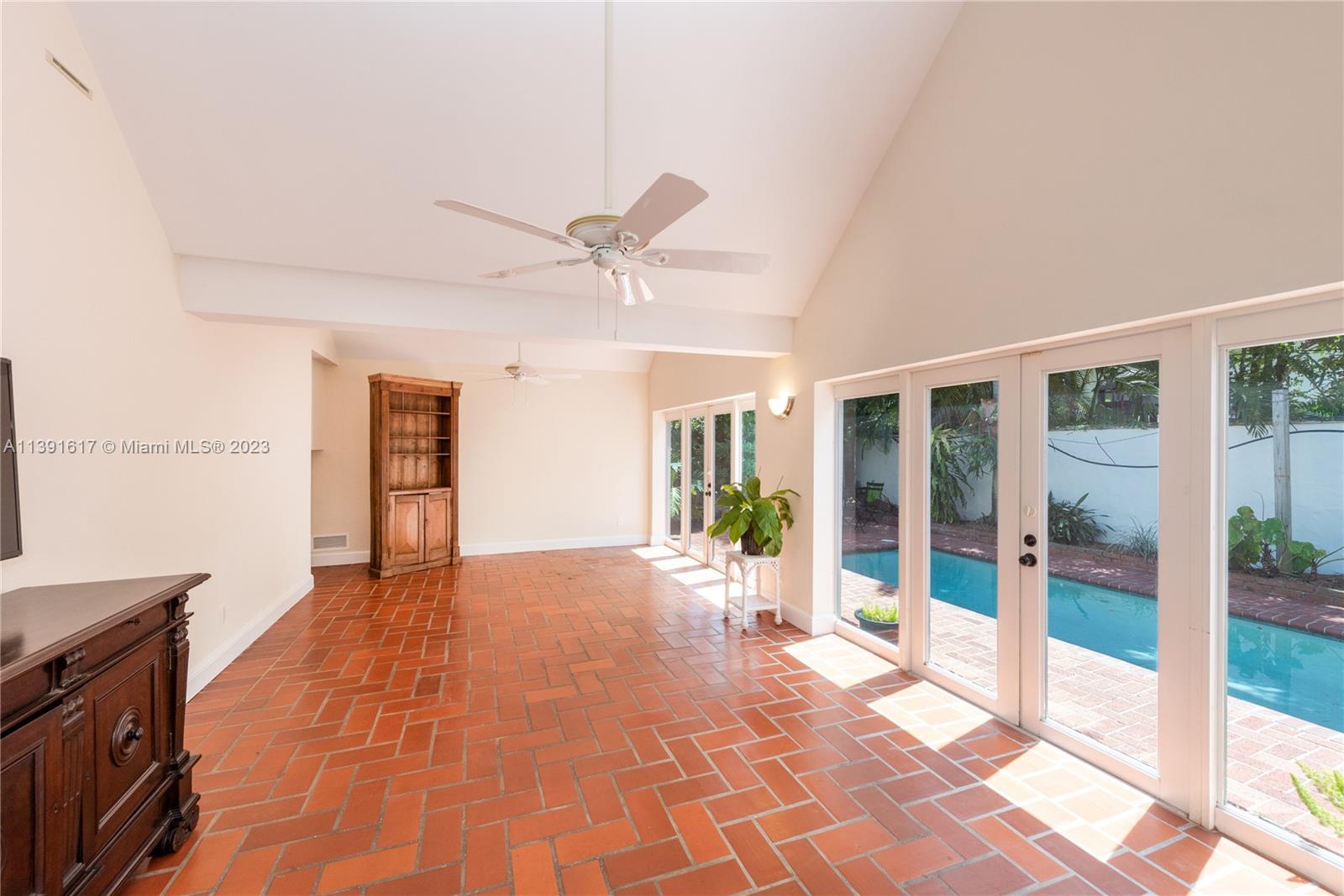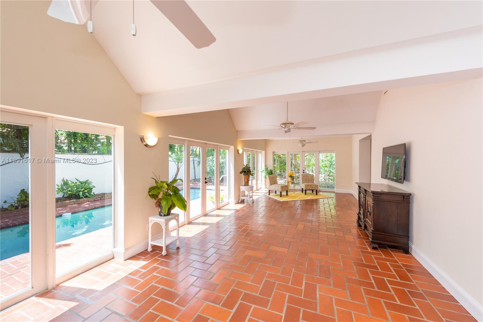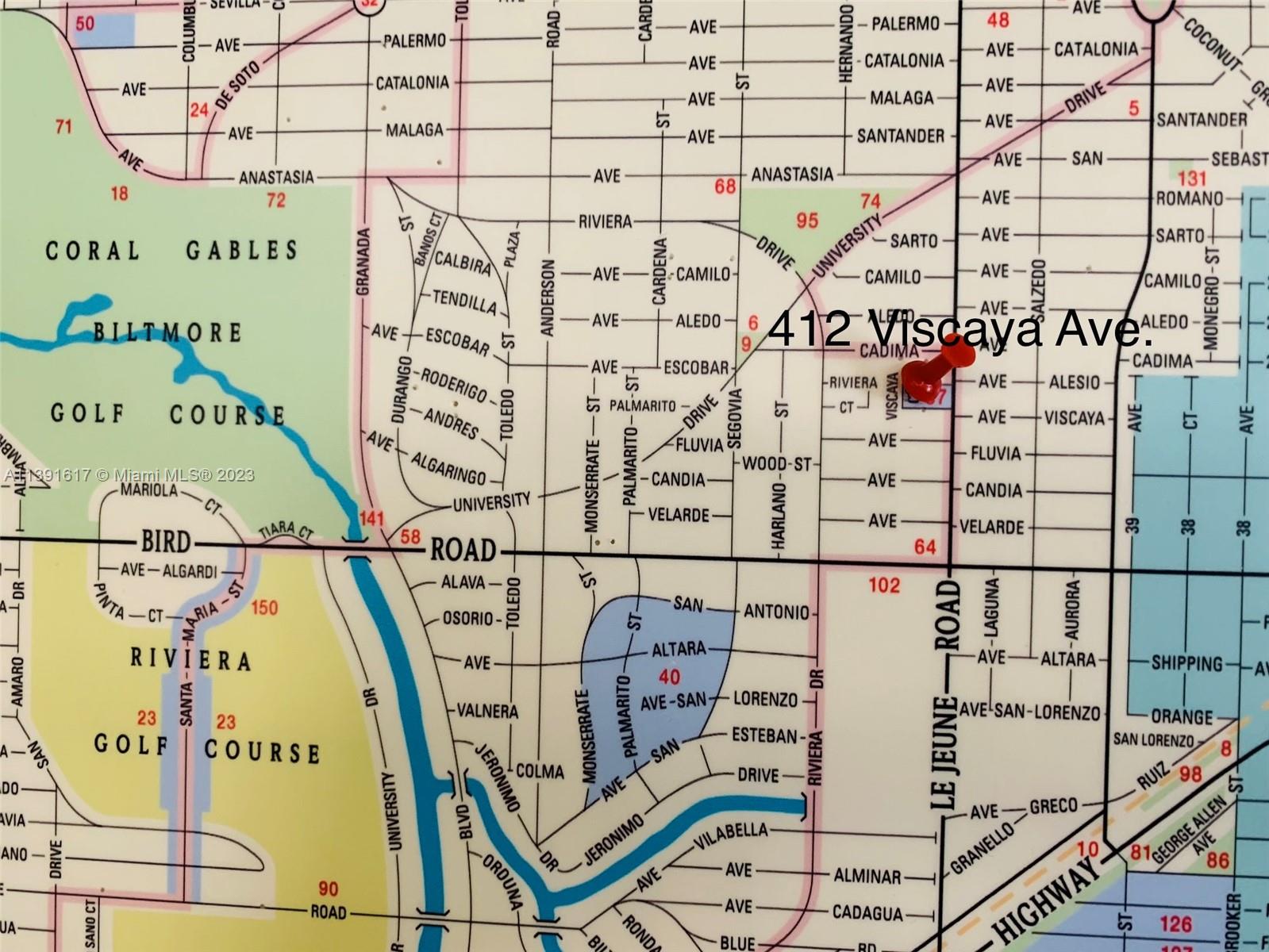 New Listing! Once-in-a-blue-moon opportunity to make one of George Merrick’s original historic villages your home. Nestled within the French Normandy Village, this unique home boasts the only swimming pool and has the largest sq. ft. and land within the neighborhood. Additionally, the house is designed to be environmentally efficient with 28 solar panels and high-end recycled materials throughout. This one-of-a-kind property has over 3,500 adj. sq. ft. High-ceiling living room. Dining room, 2 fireplaces, eat-in kitchen, huge family room with French doors opening to brick patio and pool. 2 master suites - one up and one down, additional bdrm up, library, sitting room, nursery or office, laundry room & 3.5 baths. Lushly landscaped, walled garden. The home can also be enlarged to 5 bedrooms.