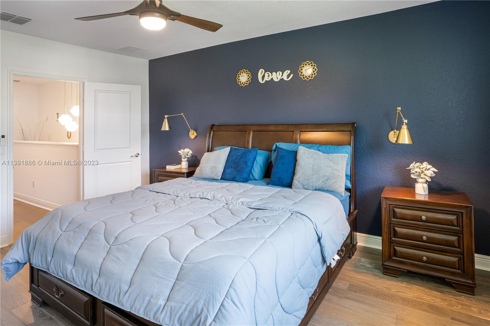 DUE TO HIGH DEMAND, HIGHEST AND BEST BY 05/30/23 Beautiful townhouse in Saddle Bridge built in 2017. The home is a spacious open floor plan with 3 bedrooms and 2½ bathrooms along with a one-car garage and high-impact windows and doors. Open kitchen with stainless steel appliances, granite countertops, and wood cabinets. Tile floor downstairs and engineered wood upstairs. Large master bedroom w/walk-in closet, and dual vanities in the master bathroom. This unit has many smart home features such as wi-fi enabled ceiling fans with light kits throughout, RF controlled Blackout roller blinds at all windows with remotes. Generator Inlet plug at Garage that allows for emergency power to the entire house panel (Generator not included). Near shops, restaurants, & all major highways!
