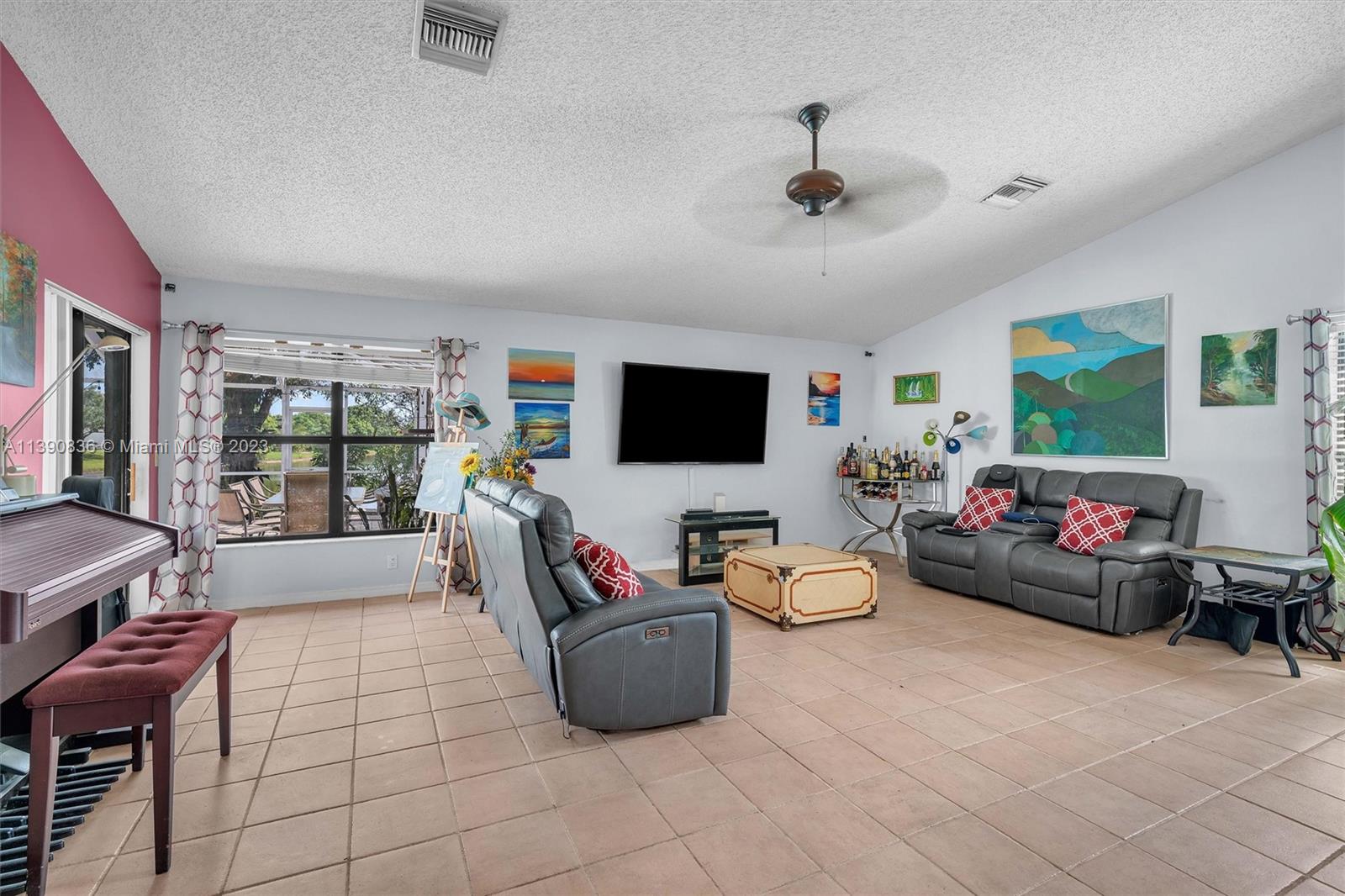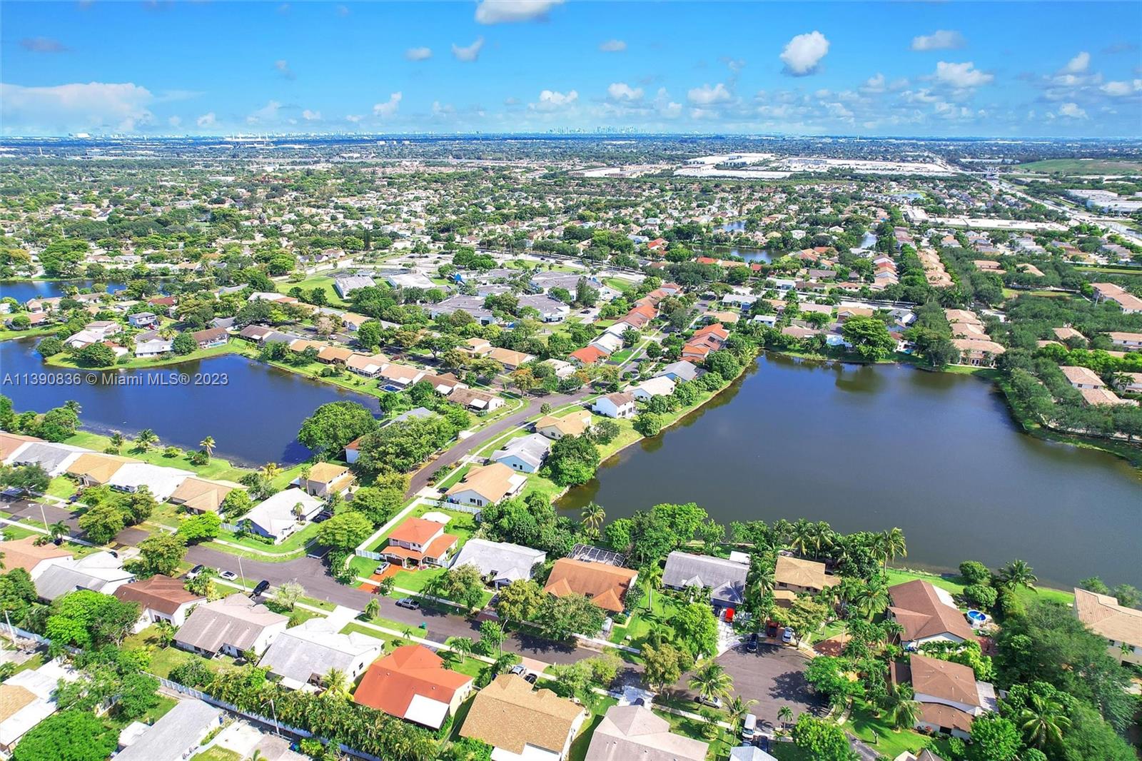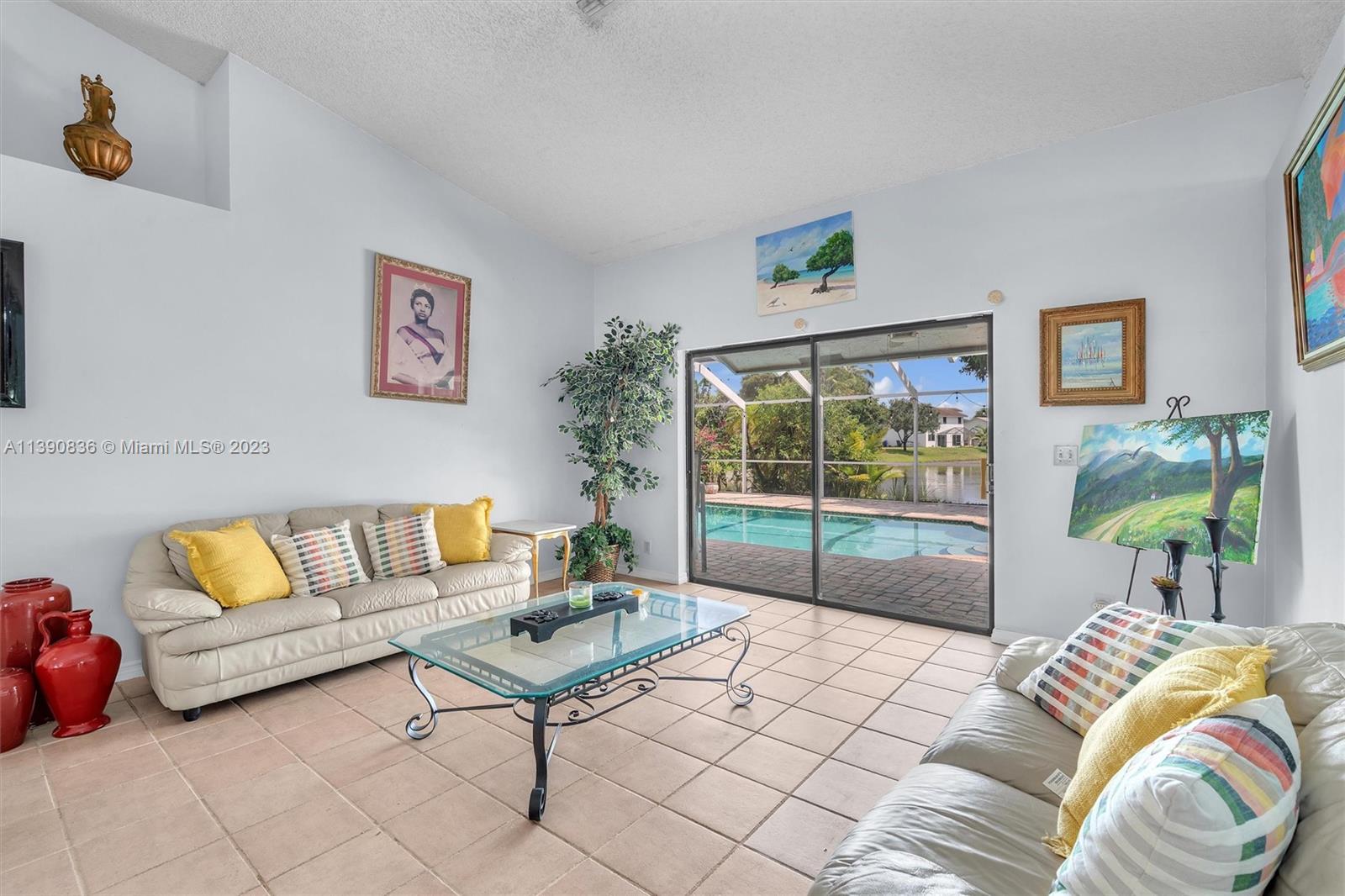 This beautiful & spacious pool & lakefront property sits on a very private and quiet street. It has three bedrooms & three bathrooms, family room & a two car garage. The pool & lake can be viewed from all the main living areas, including the main bedroom. The newly designed modern kitchen is a cook's dream! It has a Quarts waterfall large eating island, stainless appliances, glass backsplash, soft closing drawers & lots of storage space. Two of the spacious bedrooms include private bathrooms. The property is completely tiled & has lots of natural light. The property boasts a 3D shingles roof, replaced pool pump, hurricane panels & newer water heater. It has a very low association & it is walking distance to the elementary school & a park. Easy access to highway.