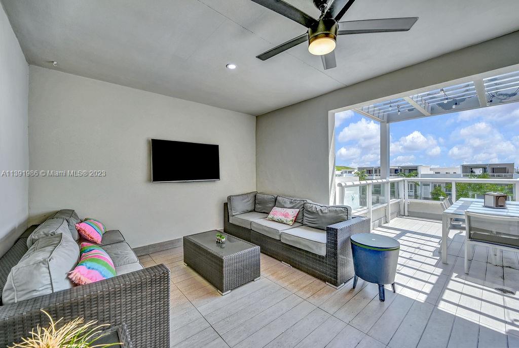 BACK ON MARKET! Modern Townhome at Landmark Doral. Amazing location located right in front of a beautiful walking park! This trip-level unit has modern finishes featuring an open kitchen at entry level and a beautiful rooftop terrace with an outdoor kitchen and lounge area perfect for entertaining!