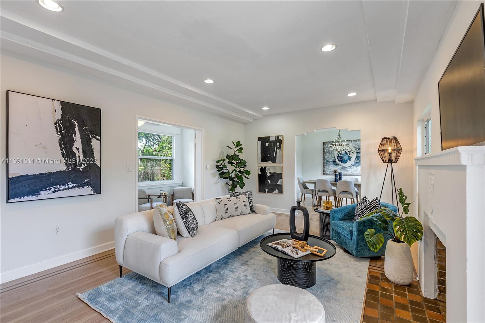 AMAZING OPPORTUNITY IN HIGHLY SOUGHT-AFTER MIAMI SHORES NEIGHBORHOOD! Step into the charm and elegance of a bygone era with this stunning Art Deco gem, offering room for expansion and a pool. This property is an ideal start-up home, with the best proximity to downtown Miami Shores, its' boutiques, restaurants & parks! The home features 2 beds, 1 bath, a Florida room & an oversized gated backyard, and a covered garage. The property boasts fruit trees, a working fireplace, and impeccably preserved original wood floors with artistic corner designs. The Art Deco molding accents and original kaleidoscope ceramic floors in the covered terrace/Florida room add a unique touch. With turn-key condition and vacancy, viewing this unit is effortless.