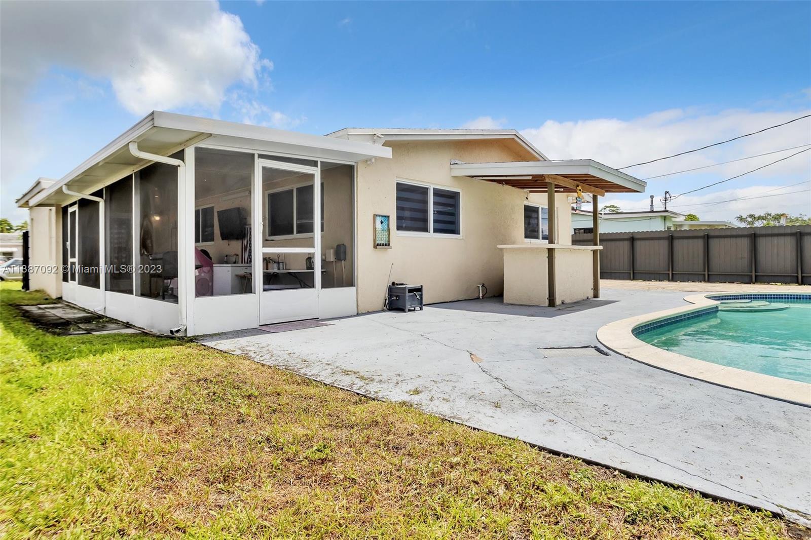 CENTRALLY LOCATED 3-BEDROOM / 2-BATHROOM HOME IN DRIFTWOOD ESTATES. FEATURING A BRAND-NEW KITCHEN WITH QUARTZ COUNTERTOPS, ALL NEW STAINLESS-STEAL APPLIANCES, NEW LIGHTING, UPDATED DESIGNER BATHROOMS, NEW SMART THERMOSTATS, SMART LIGHTING, AND CAMEARAS THROUGHOUT. THE EXTERIOR FEATURES A NICE POOL, A BAR AREA, A GAZEBO FOR LOUNGING IN THE SHADE, A SCREENED PATIO AREA WITH A MOUNTED FLAT SCREEN TV THAT IS INCLUDED IN THE SALE. THIS BACKYARD HAS A GREAT SHED FOR STORAGE, A BRAND-NEW PRIVACY FENCE AND NEW PAVERS. THE HOUSE IS EQUIPPED WITH HURRICANE IMPACT WINDOWS/DOORS THROUGHOUT, A NEW A/C UNIT, AND THE ROOF WAS REPLACED IN 2013. THE CAST IRON PIPES HAVE BEEN REPLACED. LOCATED 7 MINUITES FROM HARD ROCK HOTEL AND CLOSE TO GREAT SCHOOLS, PARKS, AND RESTAURANTS.