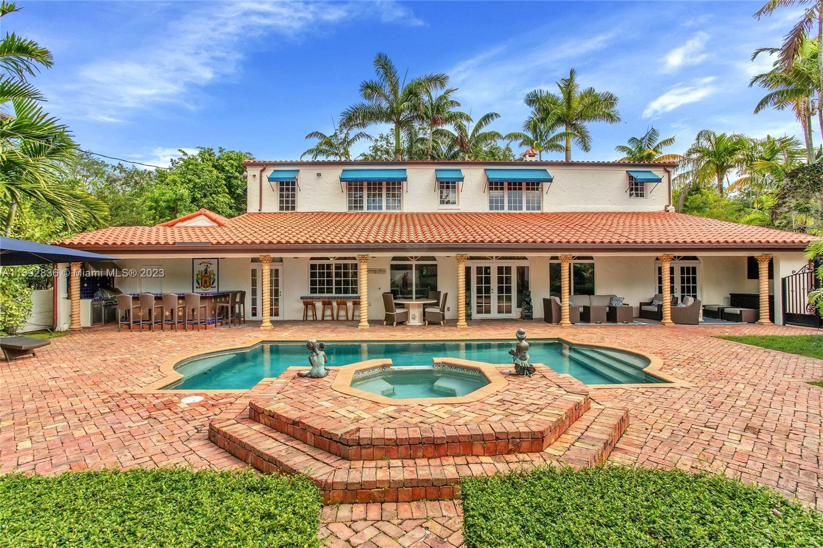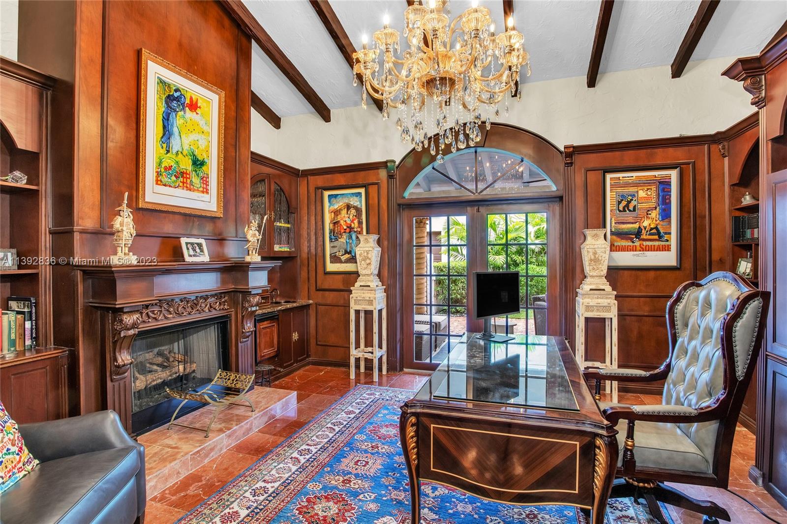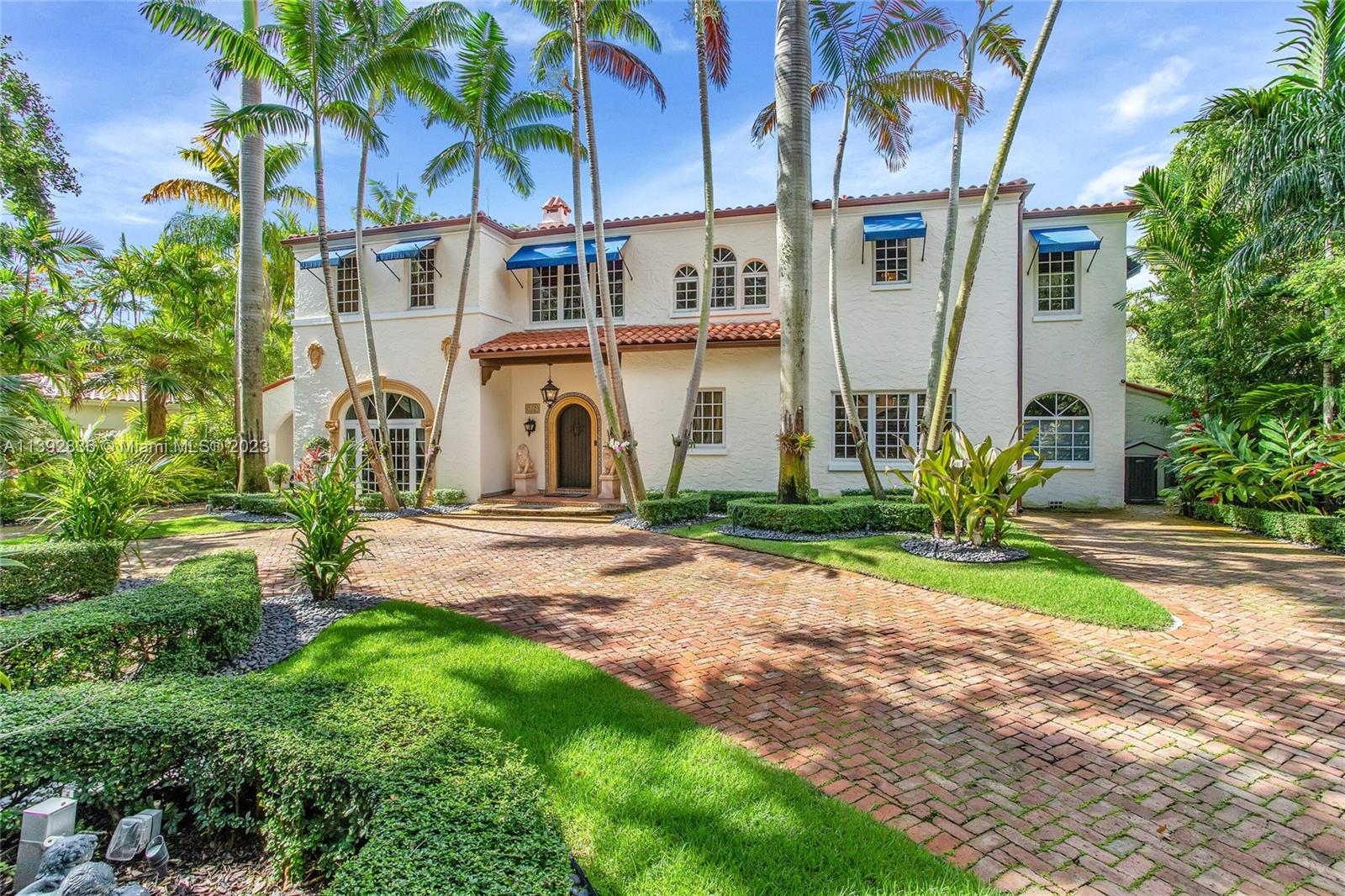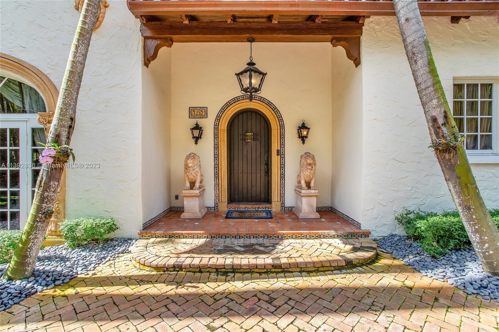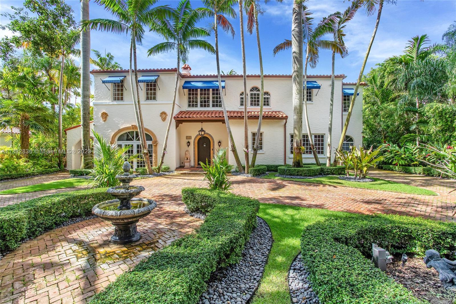 Majestic Mediterranean mansion on Coral Way. Grand foyer leads to large gracious spaces; living room w/fireplace,library/office w/gas fireplace, dining room, and family room w/bar. Main floor features guest room and staff room, each w/bath, cook's kitchen, breakfast room, and wine cellar. Impact glass French doors open to wide covered terrace w/entertaining area. On the 2nd floor: primary bedroom with massive bath and 2 walk-in closets; two other bedrooms each with private bath. Home was renovated in 2006 preserving the Old Spanish look and charm w/wood, marble, and tile floors, beamed ceilings and original stained glass. Pool area features a cabana w/bath, steam room, and a 2nd wine cellar (possible guest cottage). Impact glass throughout, roof and ACs new in 2022.