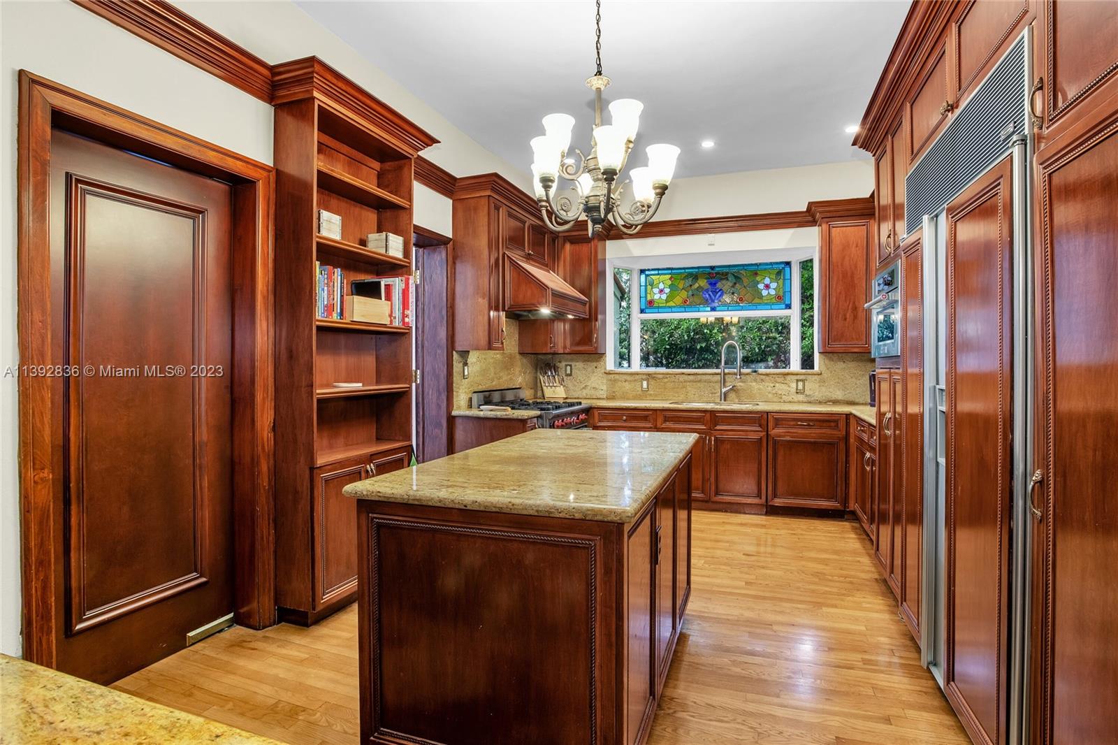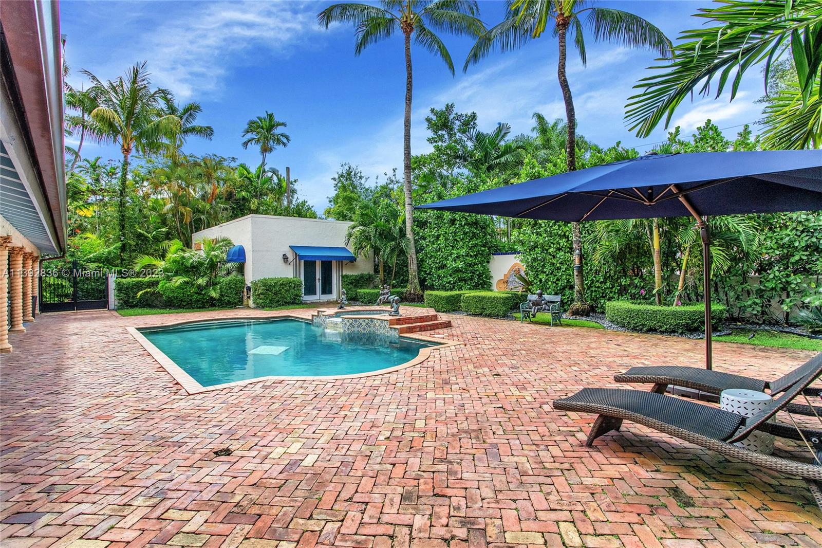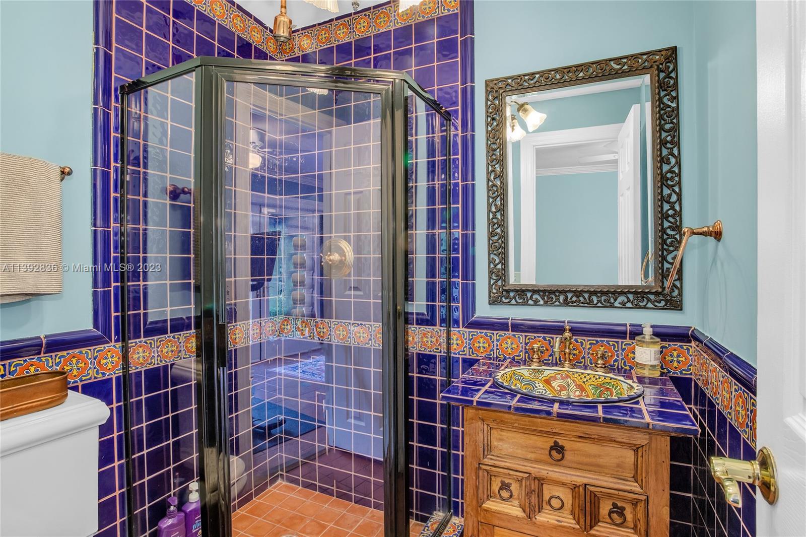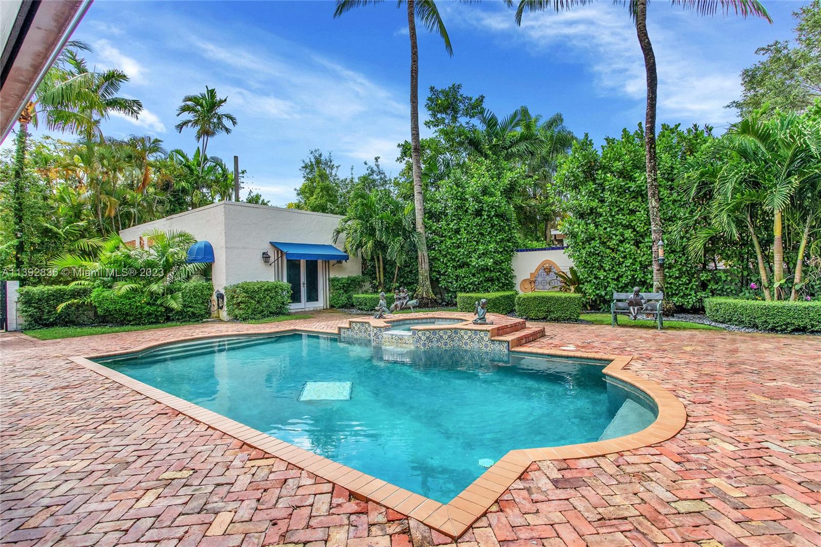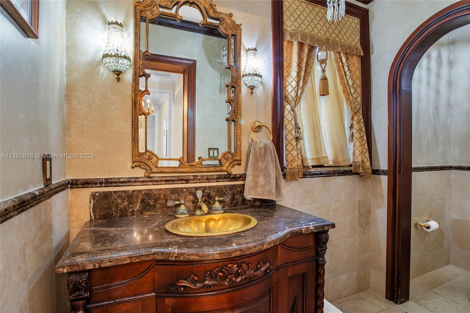 Majestic Mediterranean mansion on Coral Way. Grand foyer leads to large gracious spaces; living room w/fireplace,library/office w/gas fireplace, dining room, and family room w/bar. Main floor features guest room and staff room, each w/bath, cook's kitchen, breakfast room, and wine cellar. Impact glass French doors open to wide covered terrace w/entertaining area. On the 2nd floor: primary bedroom with massive bath and 2 walk-in closets; two other bedrooms each with private bath. Home was renovated in 2006 preserving the Old Spanish look and charm w/wood, marble, and tile floors, beamed ceilings and original stained glass. Pool area features a cabana w/bath, steam room, and a 2nd wine cellar (possible guest cottage). Impact glass throughout, roof and ACs new in 2022.