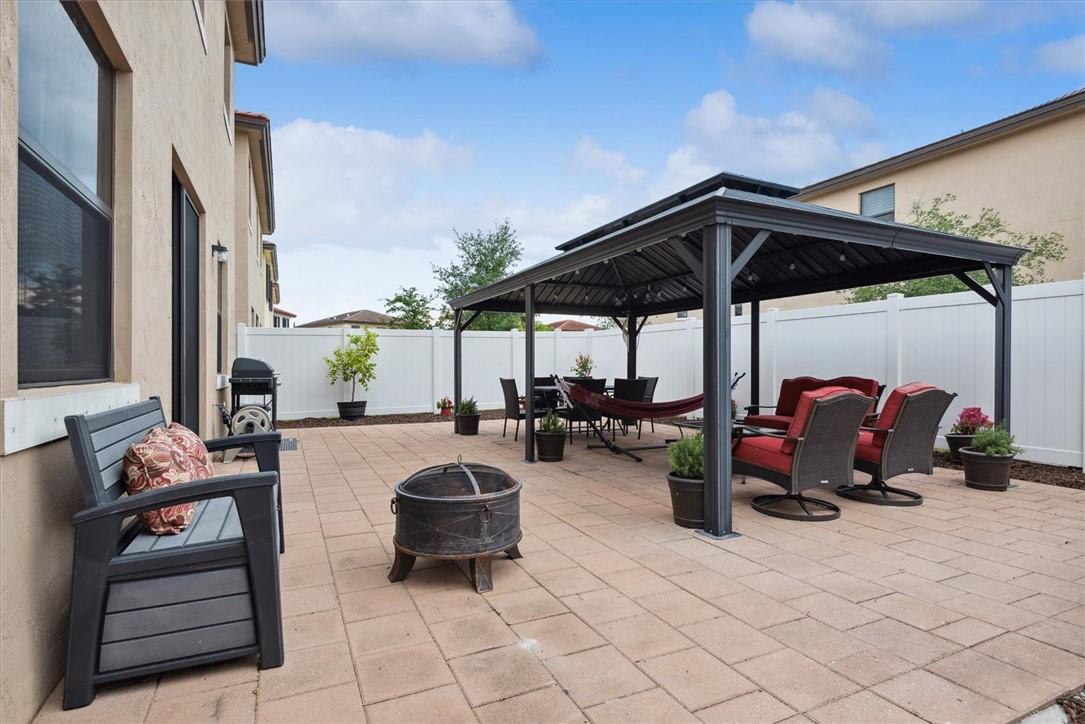 Stunning Oceana floor plan in the sought after community of Aquabella. This beautiful home features four spacious bedrooms and three and a half bathrooms. Stainless steel appliances and oversized island in the open kitchen would make any home-chef happy. Impact windows and doors. The gazebo in the fenced in backyard is the perfect place to relax and unwind with your family after a long day! Community has resort style clubhouse/pool and state of the art fitness center.