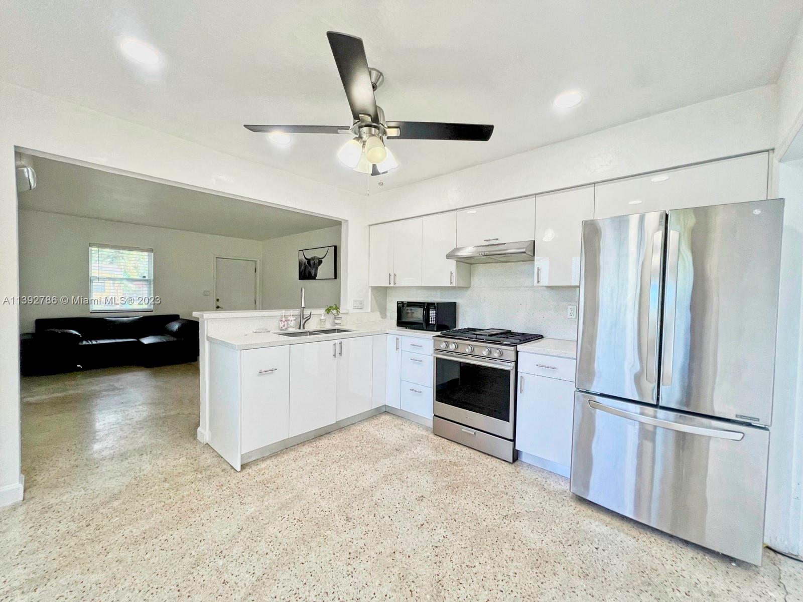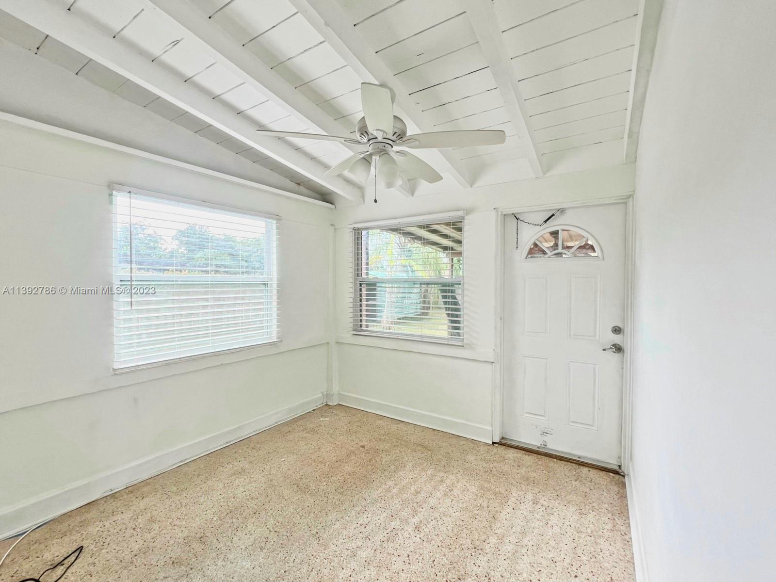 Come check out this charming mid-century home! This bright sun filled property sits on an 8,404 SF lot offering a fantastic backyard and plenty of room for a pool. Enter through a large open living room leading to a renovated eat-in kitchen, 2 Bedrooms 1 Bath plus a bonus Florida room or den. Terrazzo floors throughout the property, remodeled bath, mini split A/C system and a large carport under the original roof line. Septic and drain field replaced in 2011, 2007 roof. Located in a quiet residential neighborhood just minutes to Downtown Hollywood!