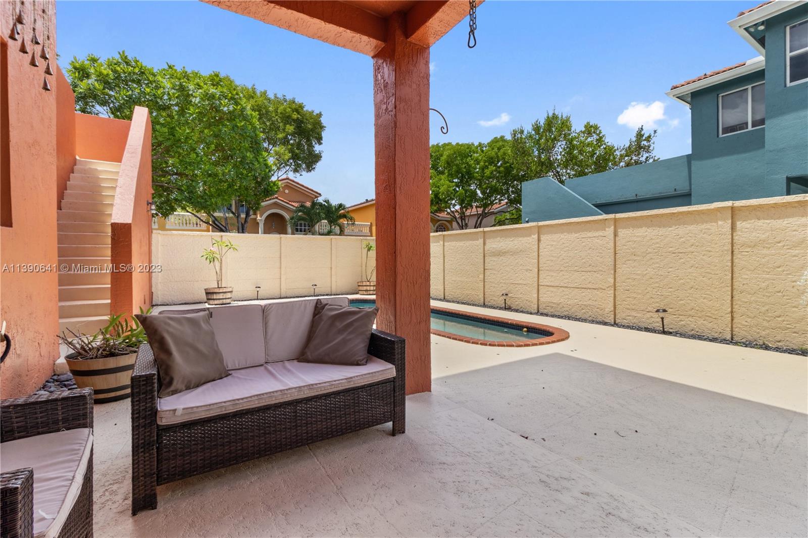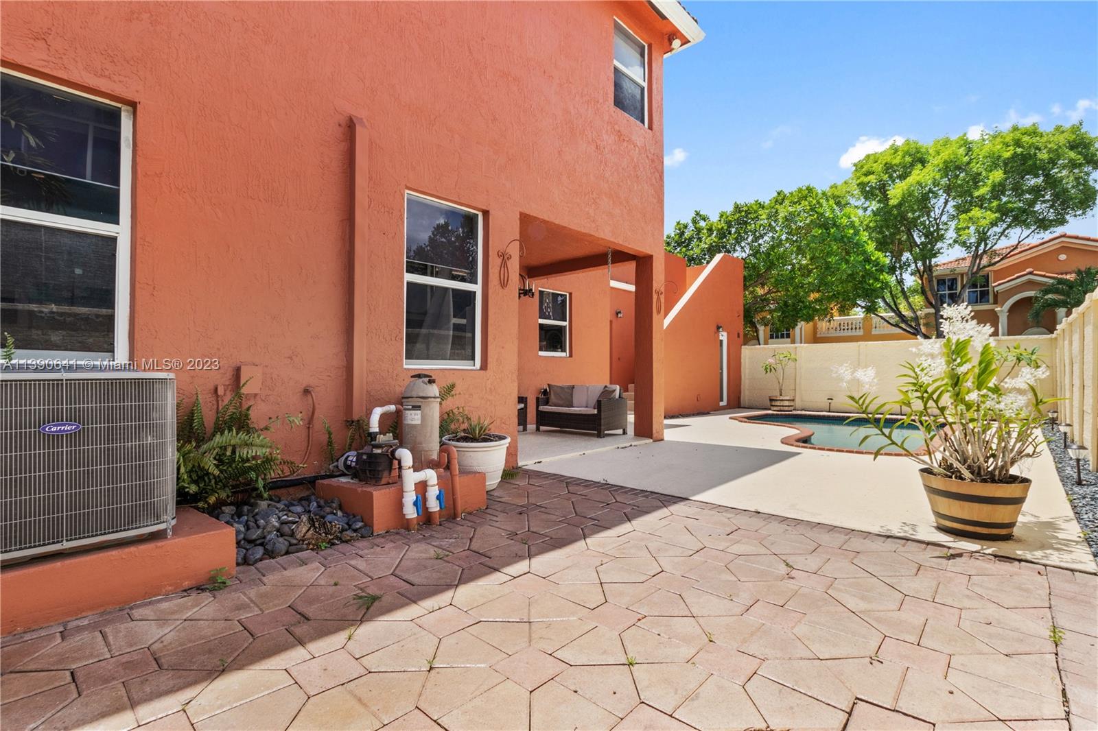 Looking for a Home in the desirable community of Doral City, that you can enjoy with your family? Stop, this house has it all!! Located in a private Mediterranean complex called Piazza Vecchia, this 2-story home is remodeled with an open design, it features 3 bedrooms upstairs at 3 bathrooms, 1 open bedroom/office downstairs, and a modern kitchen. Well-maintained, with new ACs, and upgraded bathrooms, The outdoor amenities include a pool, pool full bathroom, a BBQ area, and an upper spacious terrace, that offers extra open space and views of the Piazza, providing a serene and relaxing retreat. With a 2-car garage, this small community offers a quiet neighborhood in a prime location. fall in love with the neighborhood and the house! Easy to Show!