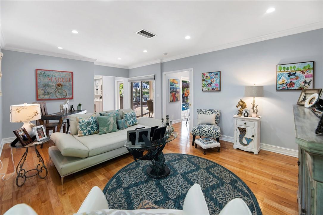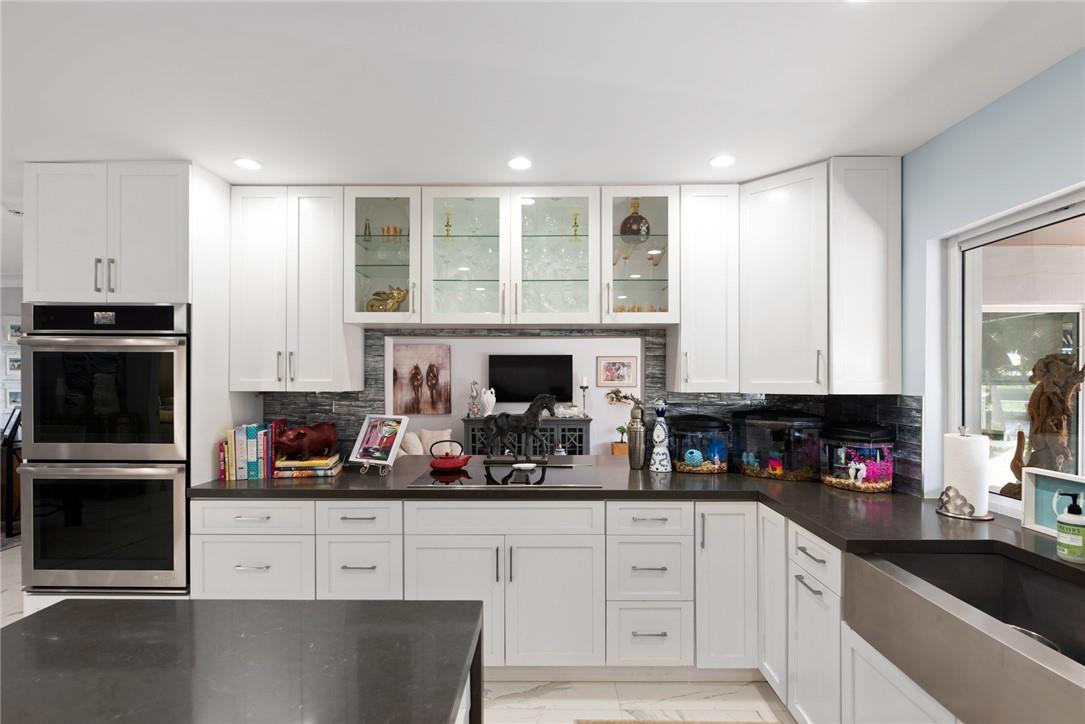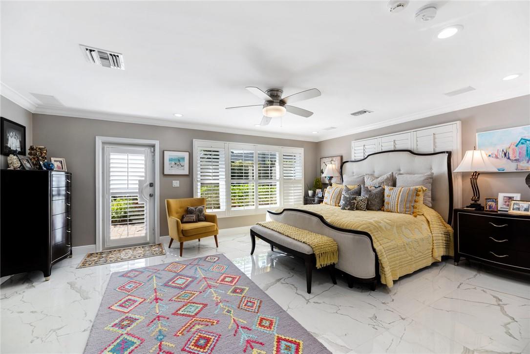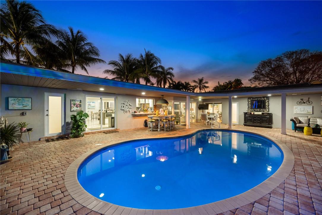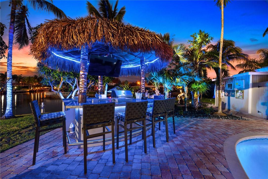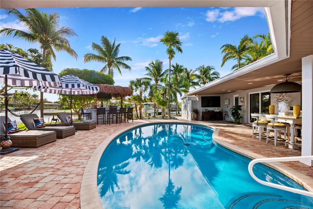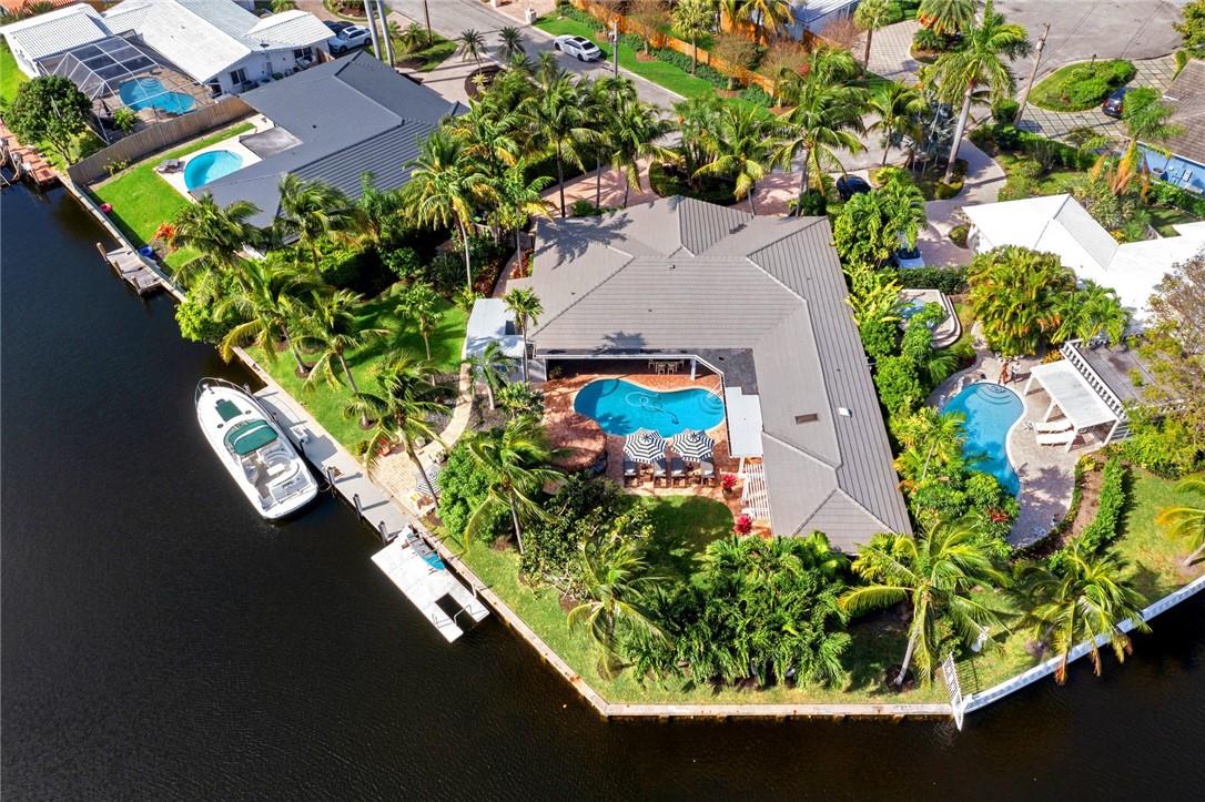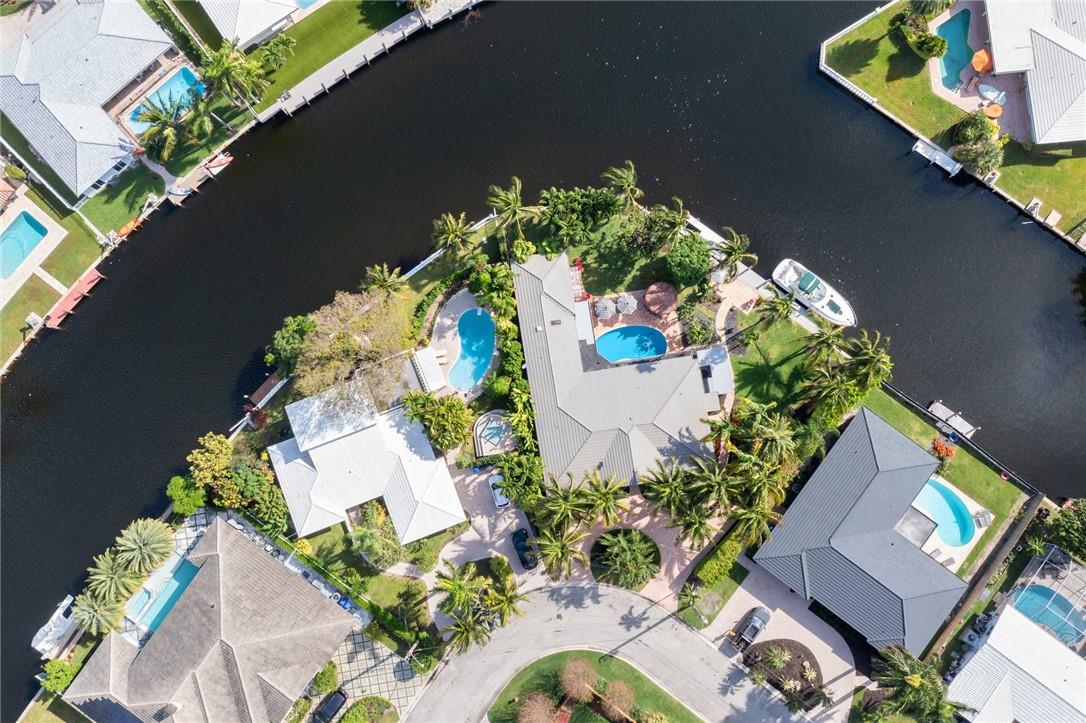 Spectacular point lot. with 157 ft on the water with beautiful views. Split bedroom plan. 4 bedrooms and 3 baths. New updated master bathroom with steam shower and jacuzzi tub. Gourmet kitchen, new a/c, impact windows and doors and security system and cameras. Fenced yard, new she shed, new outdoor kitchen with all amenities., new dock. Beautiful landscaping with new lighting. Only mins to the intracoastal. (NEW METAL ROOF)