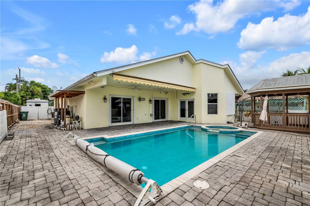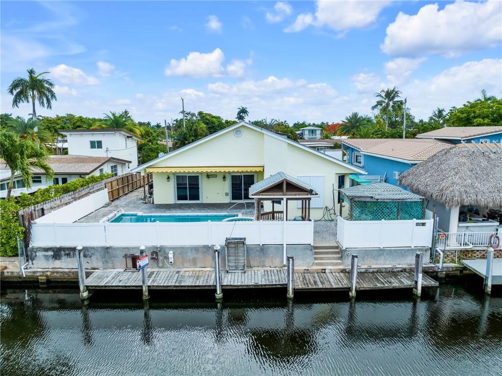 Newer construction 2002 built home in Lauderdale Isles with 65' on ocean access, deep water canal. No fixed bridges to the ocean. Enjoy the comforts & security of this solid built home with metal roof, PVC pipes, 2 car garage, circular driveway, heated pool & jacuzzi. As you enter the home you are greeted with a sprawling floorplan & high vaulted ceilings. You will love the open kitchen to the living areas. Dock your vessel at the 50' dock equipped with 50-amp service, water & cable. These items have been recently replaced; pool pump, hot water heater, a/c, refrigerator, stove & microwave. The spacious primary suite offers a jacuzzi tub, double closets & new flooring. Soak up the sunshine in the heated pool with spa & relax in your covered waterfront gazebo.