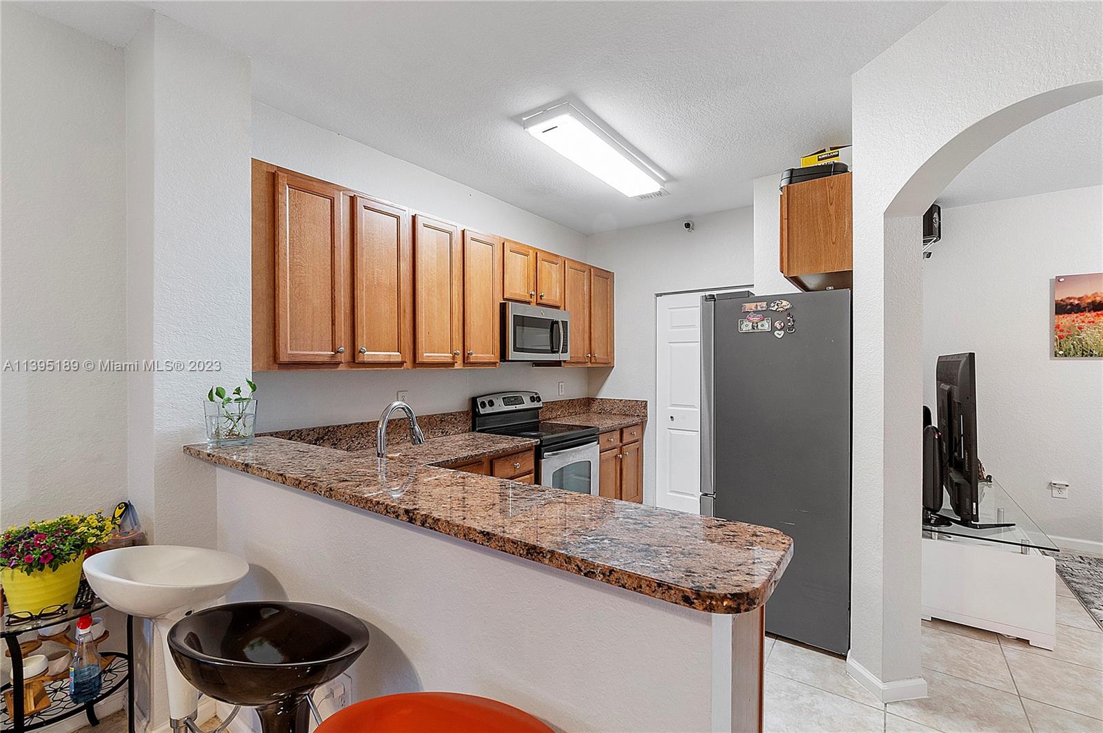 Come see this move in ready cutie! This townhouse is so cozy and it's been updated beautifully. Walk through the private gated patio into a tiled family room that leads to a beautiful kitchen with wood cabinets, granite countertops and stainless steel appliances. From there you can step out to your second gated patio and enjoy your morning coffee. Upstairs you will find luxury vinyl flooring throughout and an updated second full bathroom. The primary bedroom features his and hers closets, a modern updated bathroom and a walk out balcony where you can sit and enjoy the view. This townhome is centrally located in West Miramar; close to dining, shopping and more. For showings please TEXT listing agent with 24 hour advance notice.