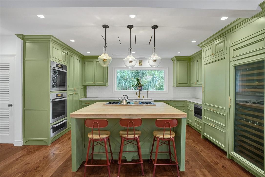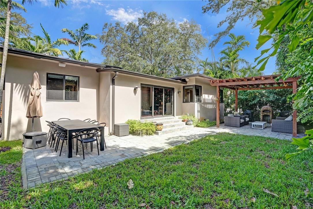 Mid century modern with a Miami flare. East of Biscayne Blvd & blocks away from the water in the family-oriented neighborhood of Miami Shores! Completely remodeled in 2015 w/ all new plumbing & electrical. Metal roof (2017), hurricane impact windows & doors. Solid oak wood flooring throughout the house. Custom chef’s kitchen features 2 Miele wall ovens, SubZero fridge, 146-bottle SubZero wine fridge, & 6 burner Wolf gas stove w/ griddle. Triple split floor plan for privacy. Master suite features a walk-in closet & marble bathroom with separate shower & clawfoot soaker tub. 4th bedroom currently used as an office. Fenced in private back yard has room for a pool & features a built-in pergola and pizza oven.