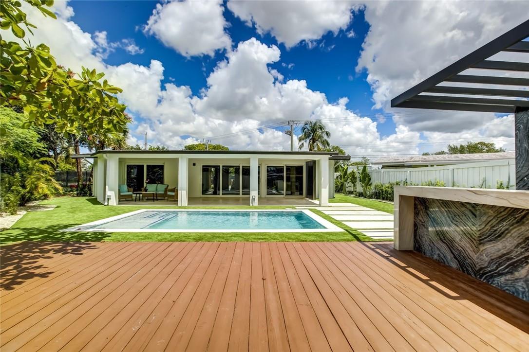 Step into this outstanding 3 bed 2 1/2 bath new construction contemporary design and you will find the highest level of interior finishes with exceptional appointments throughout this masterpiece. The open spacious floor plan boasts a stunning kitchen with high end appliances, one-of-a-kind stone countertops and hand-crafted custom cabinetry. Gather your friends and family and step out to the perfectly designed entertainment center with extraordinary details including a fully equipped lighted summer kitchen, tranquil swimming pool, landscape lighting. Step further down to your own dock with a sitting area suitable for a firepit. No fixed bridges. dock is 20ft, a boat much smaller to fit in the space. This oasis of unique style can be your next home. Feel like you are on vacation forever!