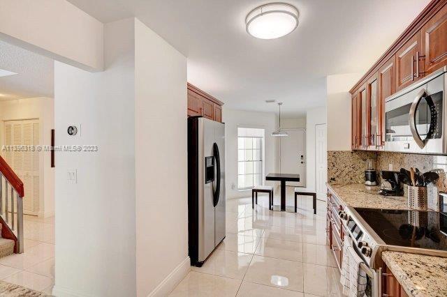 Amazing opportunity in Doral! This rarely available 3-bedroom 3-bathroom townhouse is over 2,000 sqft under air with beautiful tile floors, granite kitchen countertops, and stainless steel appliances. All bathrooms are remodeled, Full Bathroom downstairs with Jacuzzi Tub, Master Bathroom includes an amazing Sauna Shower. Lots of extra closet space throughout. 1-car garage attached with automatic opener. Adjacent to golf course. Pool and playground on-site. Association has a partnership with Doral Park Country Club to provide magnificent amenities, including golf, tennis, gym, restaurants, pools, and more. Must see, magnificent home to entertain, largest model of townhouse in this community. Ready to move in! Easy access to major highways, very close to MIA, CityPlace.