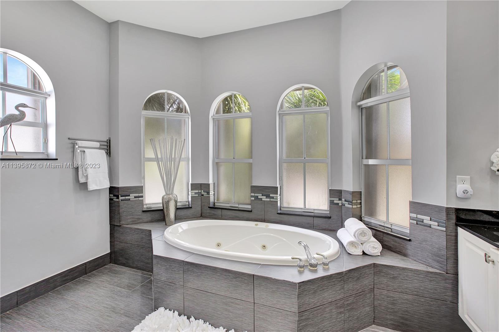 A Gem of a home is waiting for you to relax and kick back! This spacious home blends a modern open look with a beautiful outdoor pool/jacuzzi and water views. Have a cocktail watching the sunset or throw a lavish party, this home checks all the boxes. The main feature is a huge main bedroom suite with a jacuzzi tub, rain shower, and a waterfront balcony with captivating views. It boasts a closet that one can get lost in. A spacious kitchen with SS appliances is the home's hearth, great for family dinners or hosting an outdoor event. Other features include a 2016 AC unit, pool/jacuzzi, hurricane protection including upstairs shutters, clubhouse w/pool, exercise room + tennis, 3 car garage, large pantry, lots of storage, and move-in ready. This home is priced to sell and won't last!