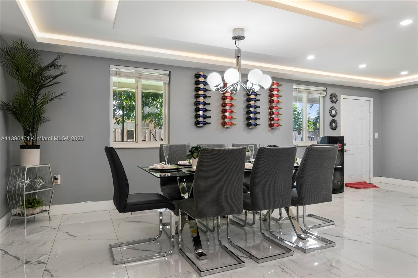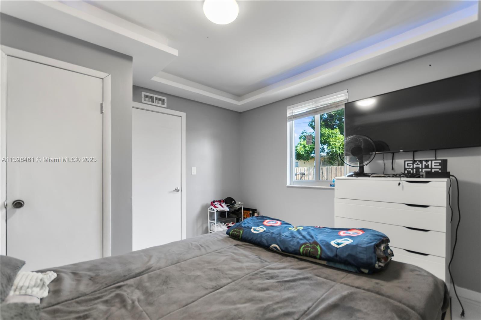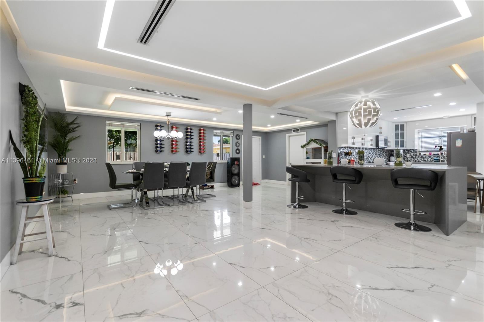 Absolute gorgeous home in Miramar, completely remodeled, with 48"x 24" porcelain flooring throughout, Very bright and spacious space, some concrete columns were replaced with steel, recessed base boards, fry reglete, cove lights ceiling, those lights are controlled from the phone, with modern kitchen cabinets, Quartz countertop, stainless steel appliances, Impact windows, large family room with plenty of light overlooking your own private backyard and with plenty of room to build a pool, now is with synthetic grass, spacious master bedroom and bathroom with large walk in closet, large utility room with brand new washer and dryer, , Roof was replaced 2017, A/C 2020 (5 Tons) with digital thermostat, Converted garage with updated modern bathroom. The light fixtures are not included.