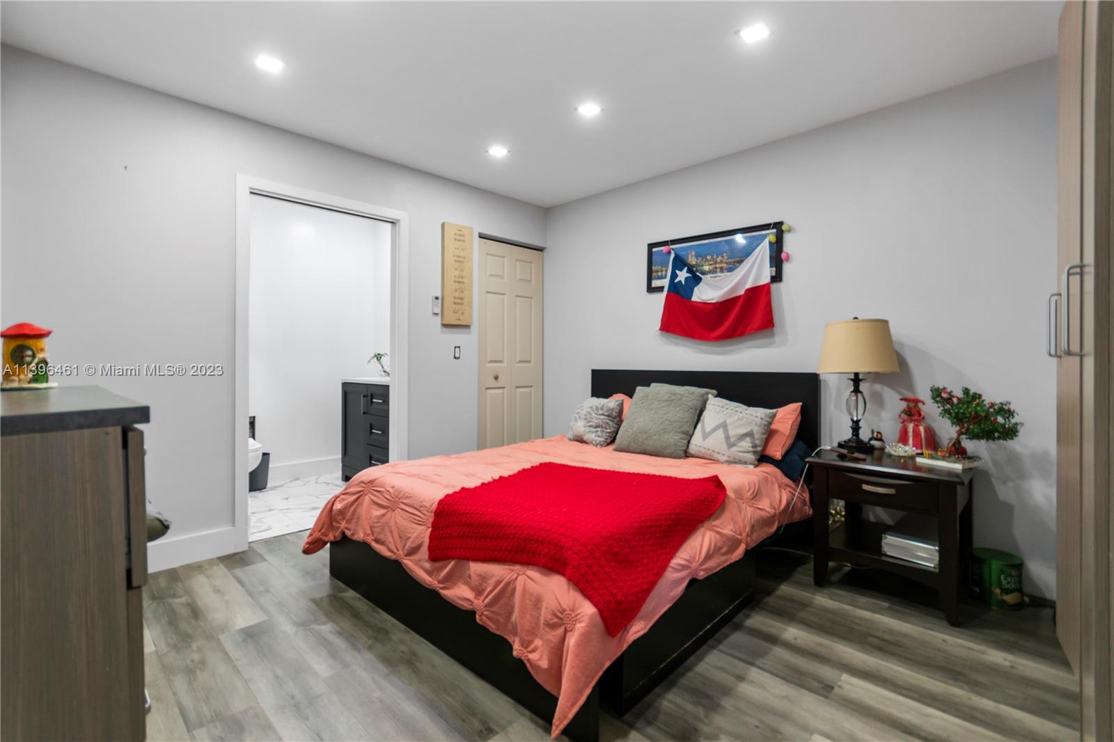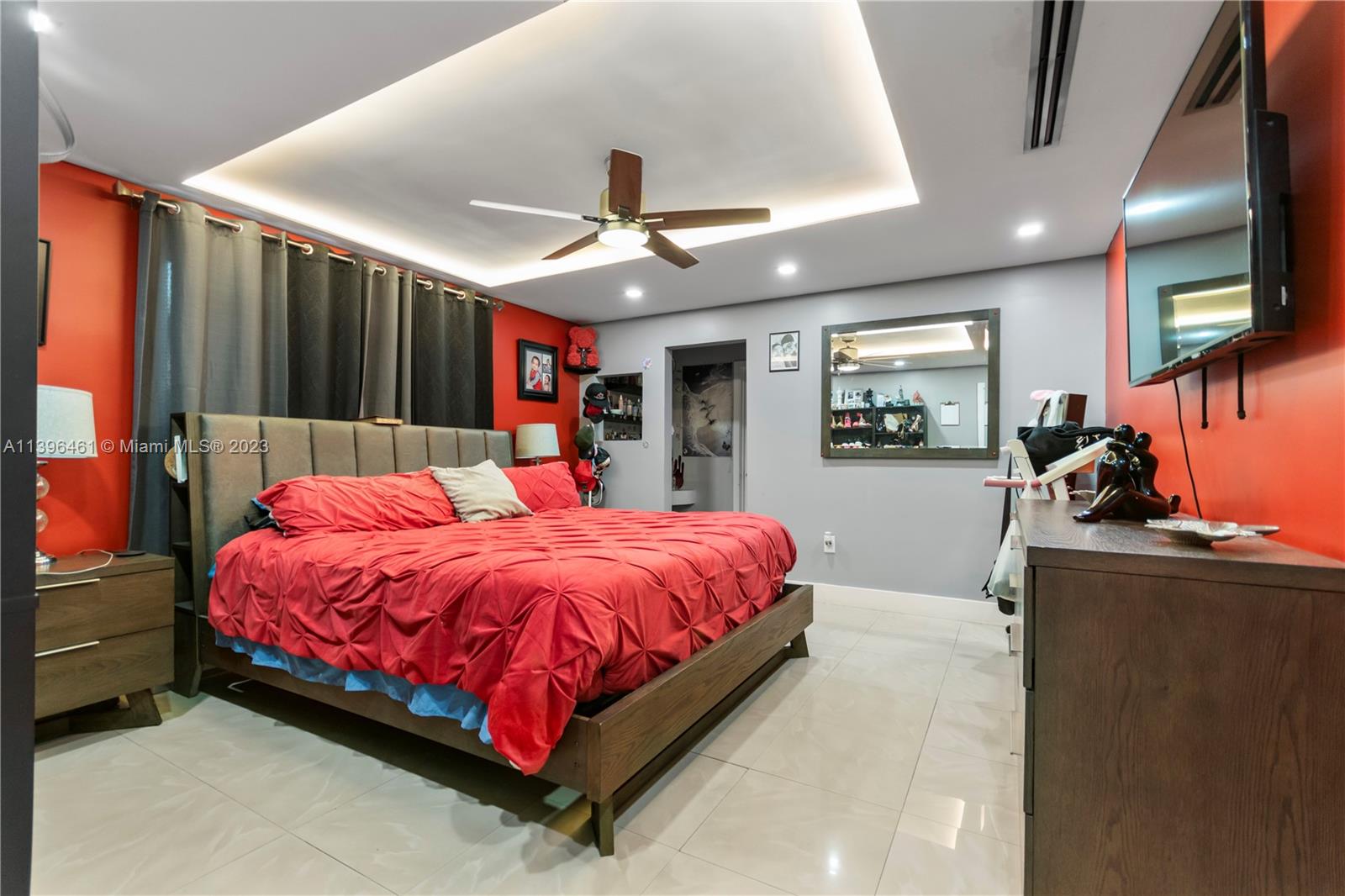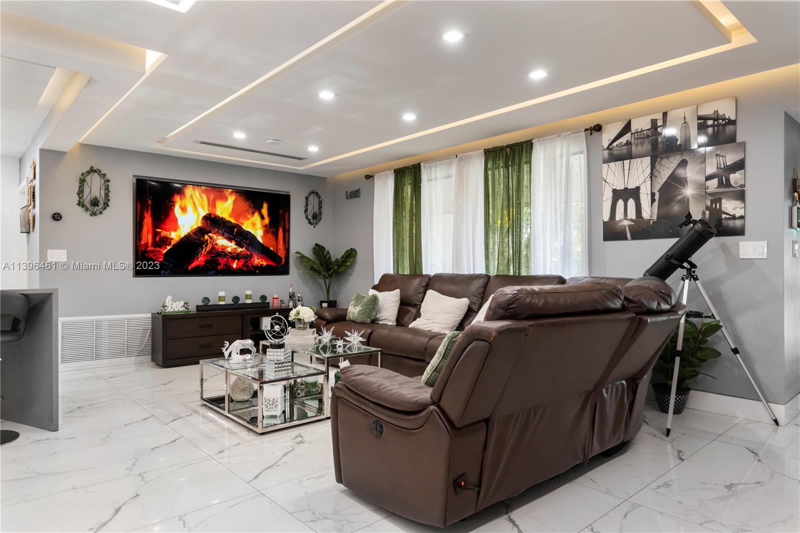 Absolute gorgeous home in Miramar, completely remodeled, with 48"x 24" porcelain flooring throughout, Very bright and spacious space, some concrete columns were replaced with steel, recessed base boards, fry reglete, cove lights ceiling, those lights are controlled from the phone, with modern kitchen cabinets, Quartz countertop, stainless steel appliances, Impact windows, large family room with plenty of light overlooking your own private backyard and with plenty of room to build a pool, now is with synthetic grass, spacious master bedroom and bathroom with large walk in closet, large utility room with brand new washer and dryer, , Roof was replaced 2017, A/C 2020 (5 Tons) with digital thermostat, Converted garage with updated modern bathroom. The light fixtures are not included.