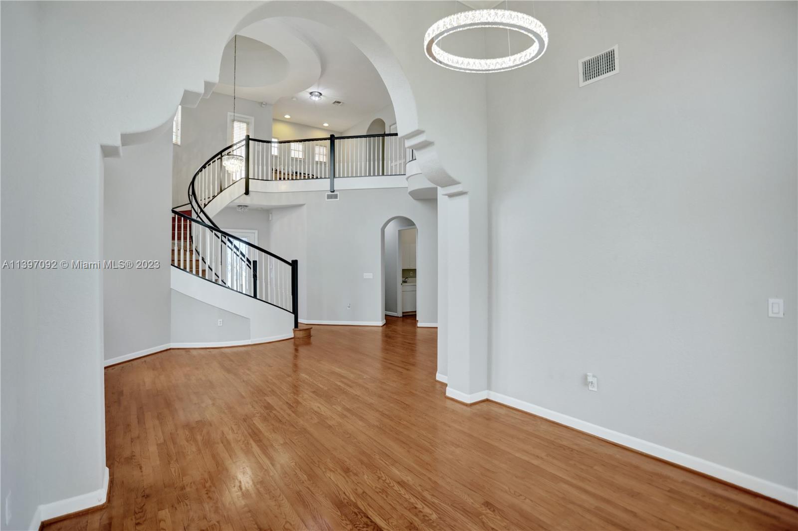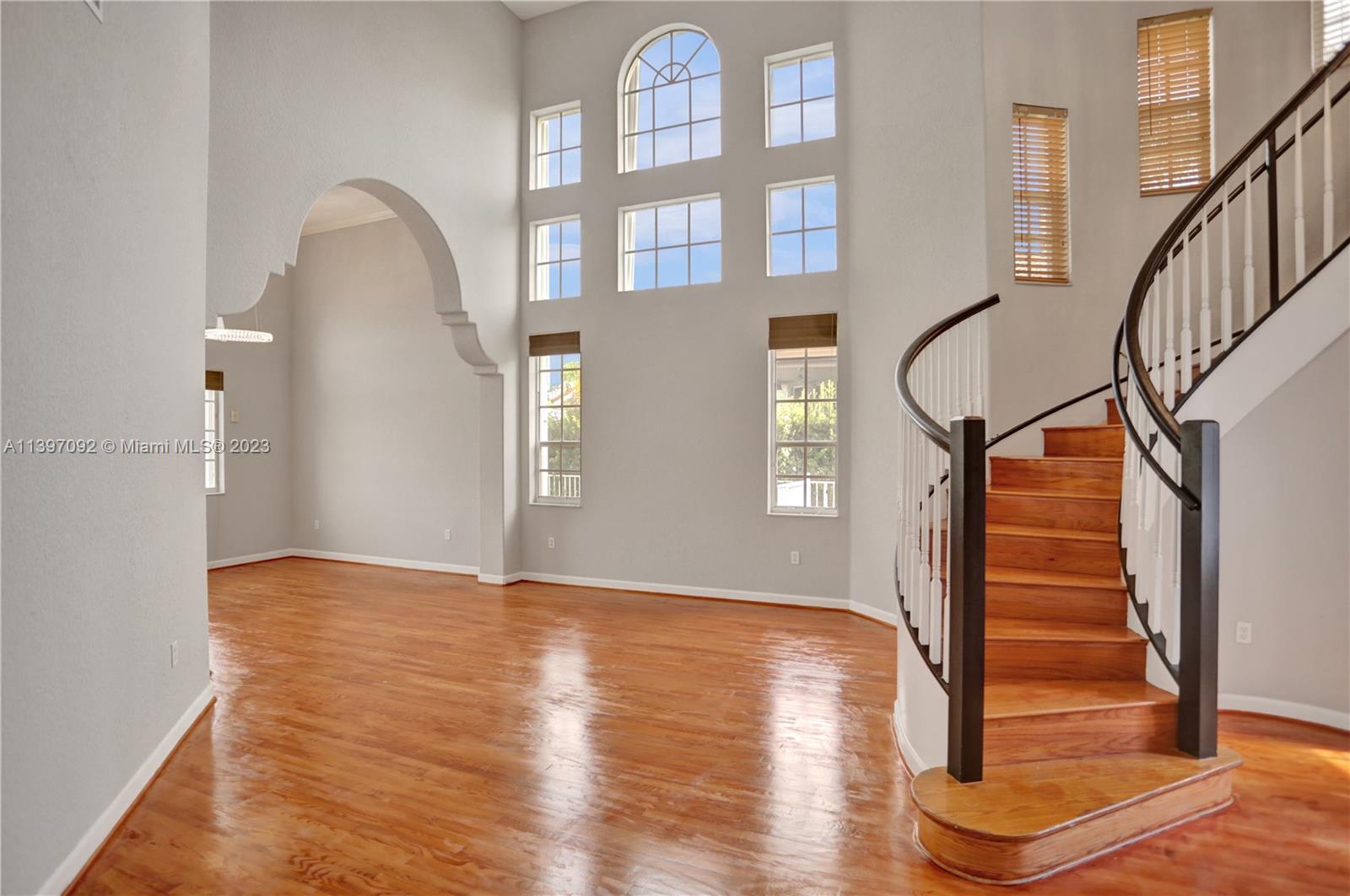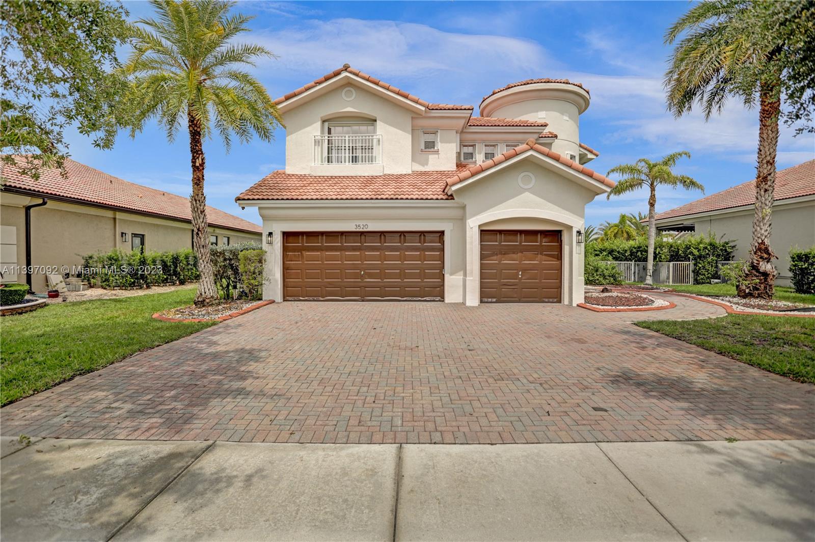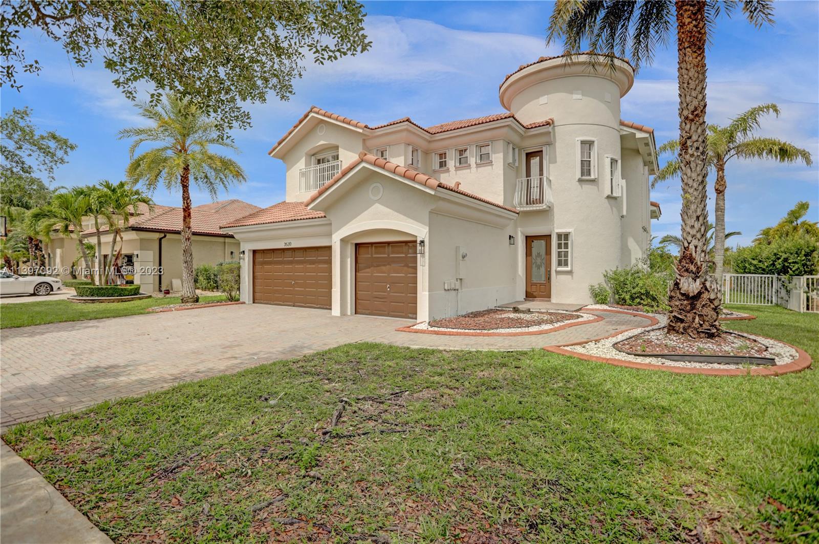 Mediterranean Castle Waterfront Pool Home located in the sought after gated community of Grand Isles. Boasting vaulted ceilings with eng wood floors throughout. Enjoy a bedroom on the first floor with ensuite bathroom. Formal dining room, kitchen and the family room all have the million dollar views, lots of privacy with the Everglades sitting directly across. Fresh exterior and interior paint along with kitchen cabinets and brand new stainless steel appliance. The primary bedroom has sitting area, balcony, 2 walkin closets and huge spa bathroom. Seller willing to give concession for renovations. Sunset Lakes amenities include a clubhouse, pool, gym, tennis and bb courts, Kid’s Club, and more. Come see!