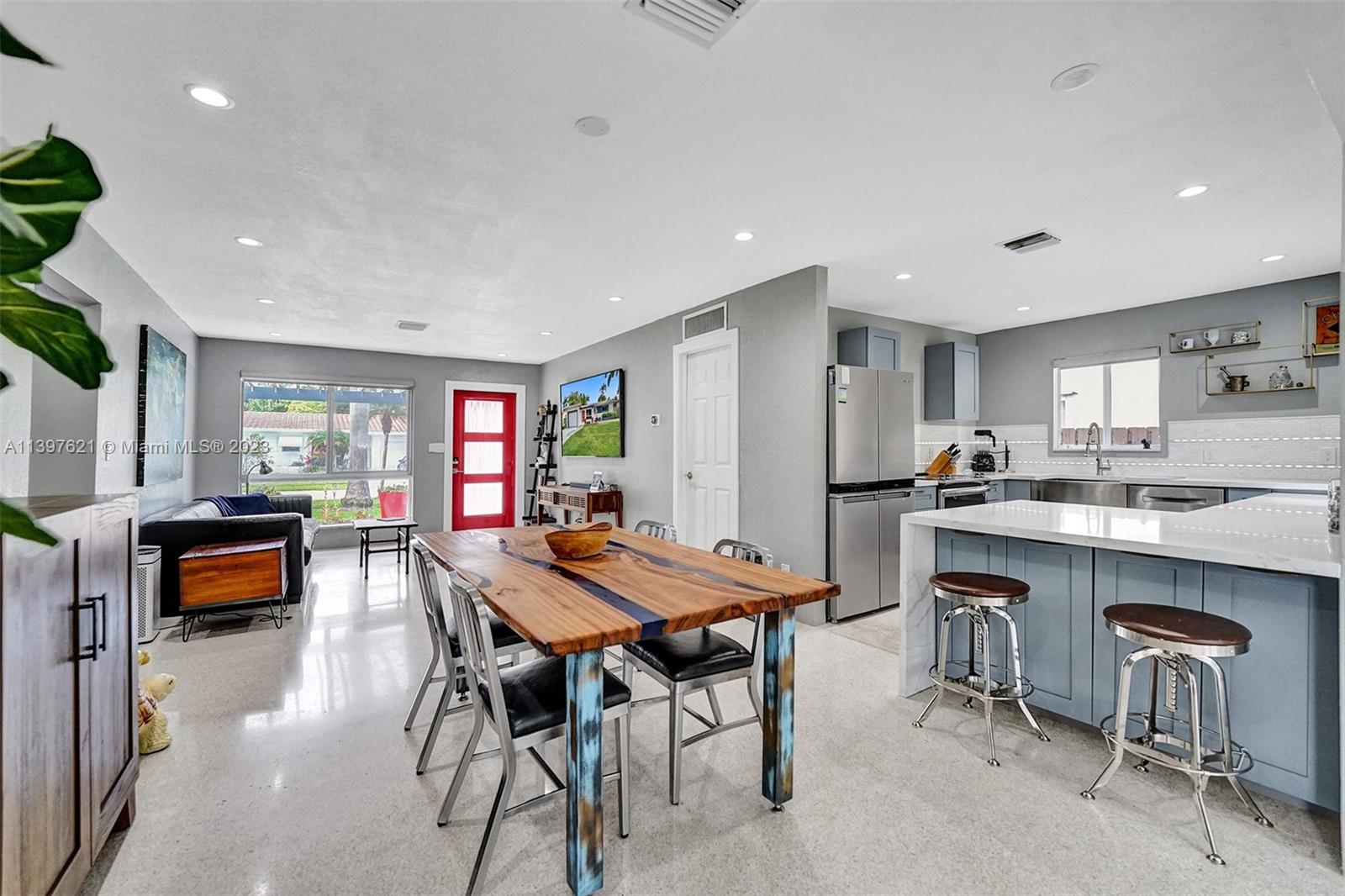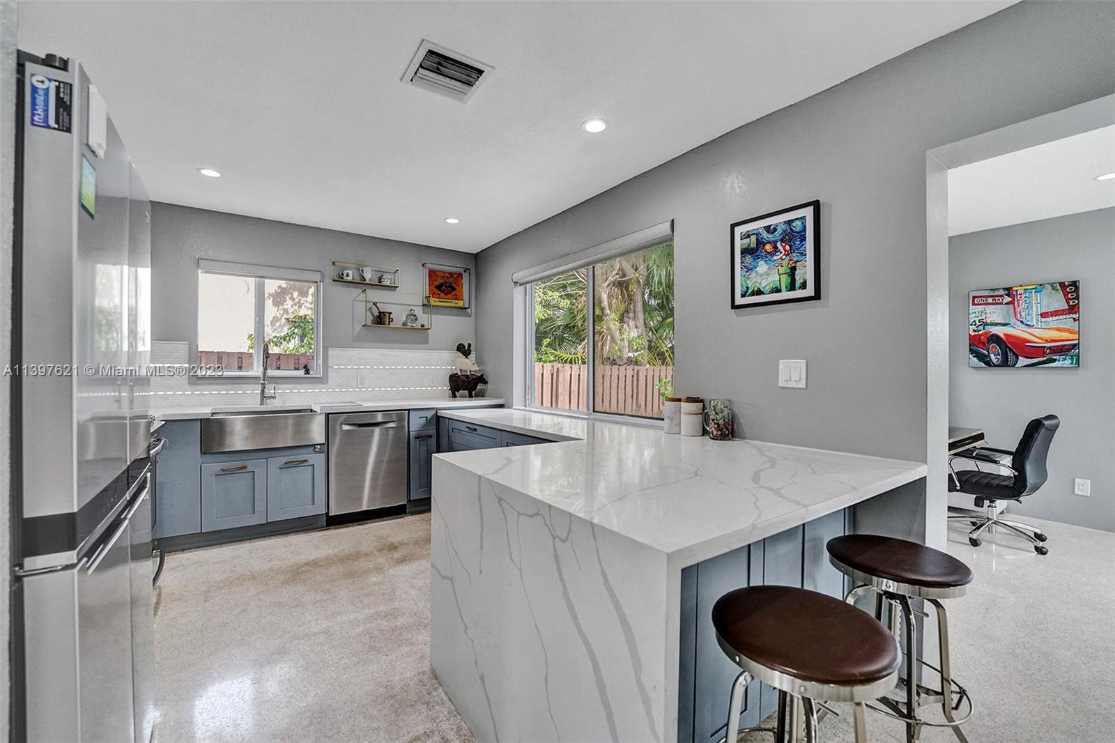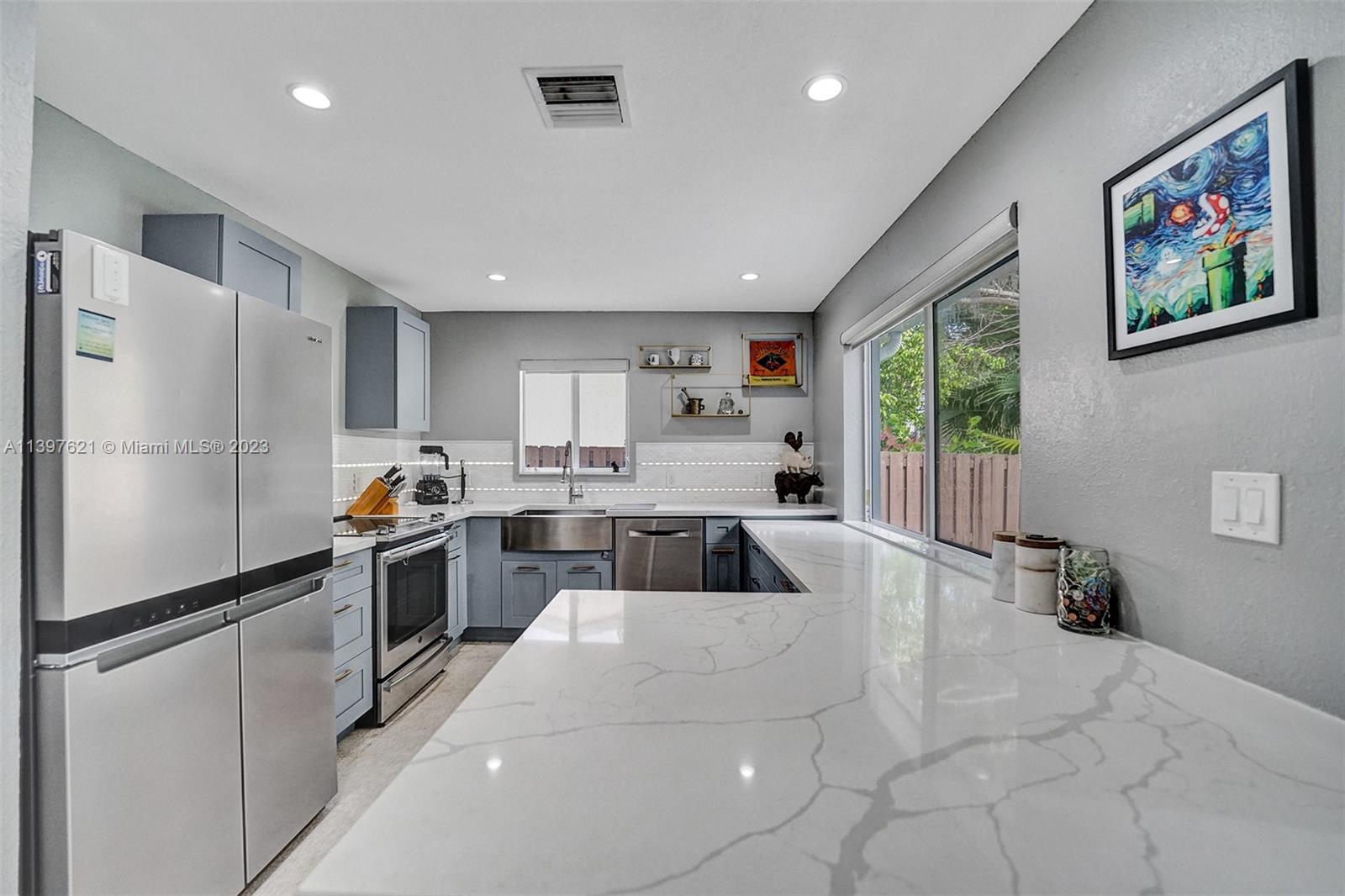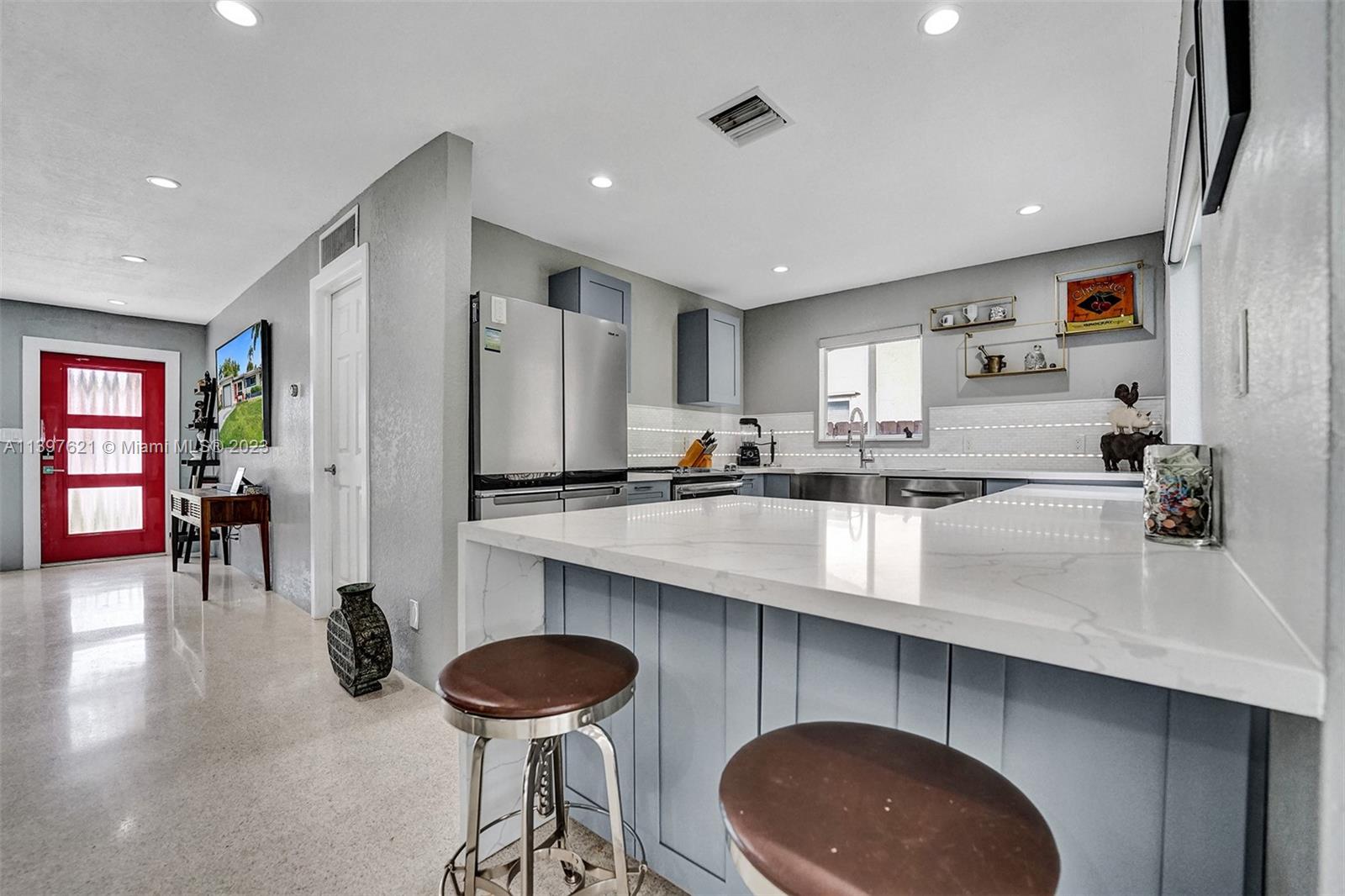 Amazing and fully updated 2 bed 2 bath house actual year is 1994 due to so many updates. House could be easy turned to a 3 bedroom house with a Garage. Newer fence all around. Behind home is the alley so easy garbage removal. This home sits on a huge lot. Concrete tile Roof done in 2019, stamped concrete driveway, oversized HVAC with new duct work done in 2019, Resurfaced Terrazzo floor, Whole house Generator connected to natural gas line on Property 2022, Inline gas water heater 2020, New kitchen with stainless appliances 2021, Quartz counter tops, automated patio roof 2019, new insulated garage door, fully impacted windows and doors. Enjoy the front porch or the back patio for entertainment. Led light throughout the house an outside as well.