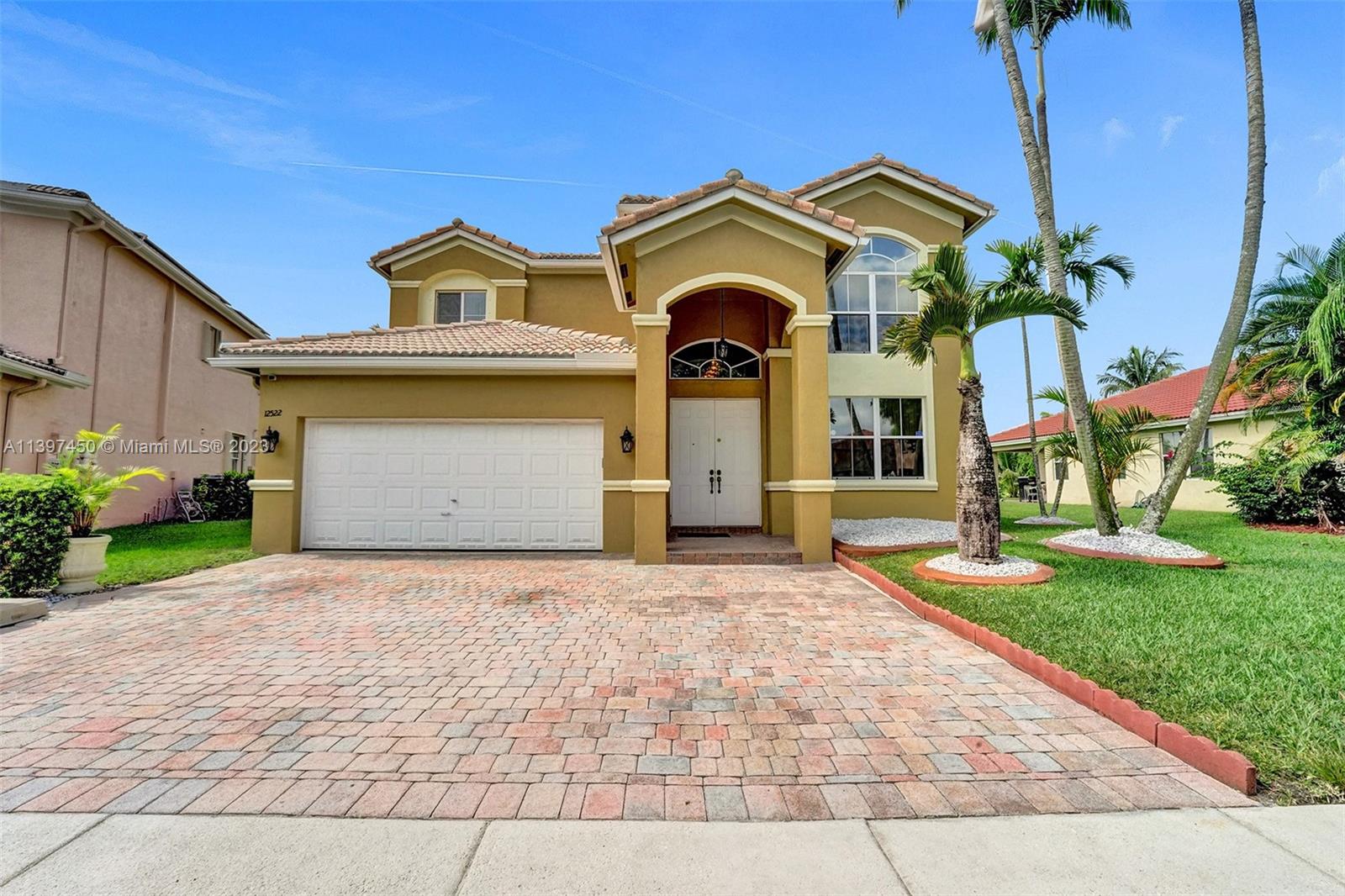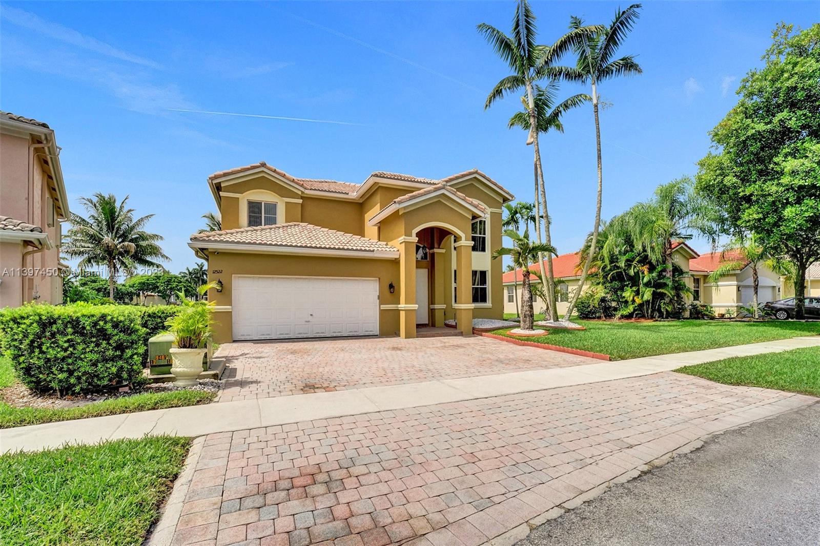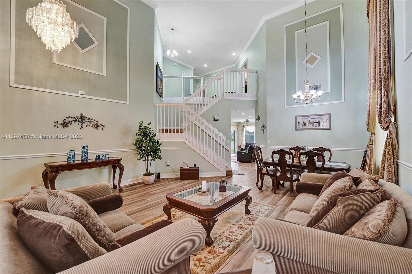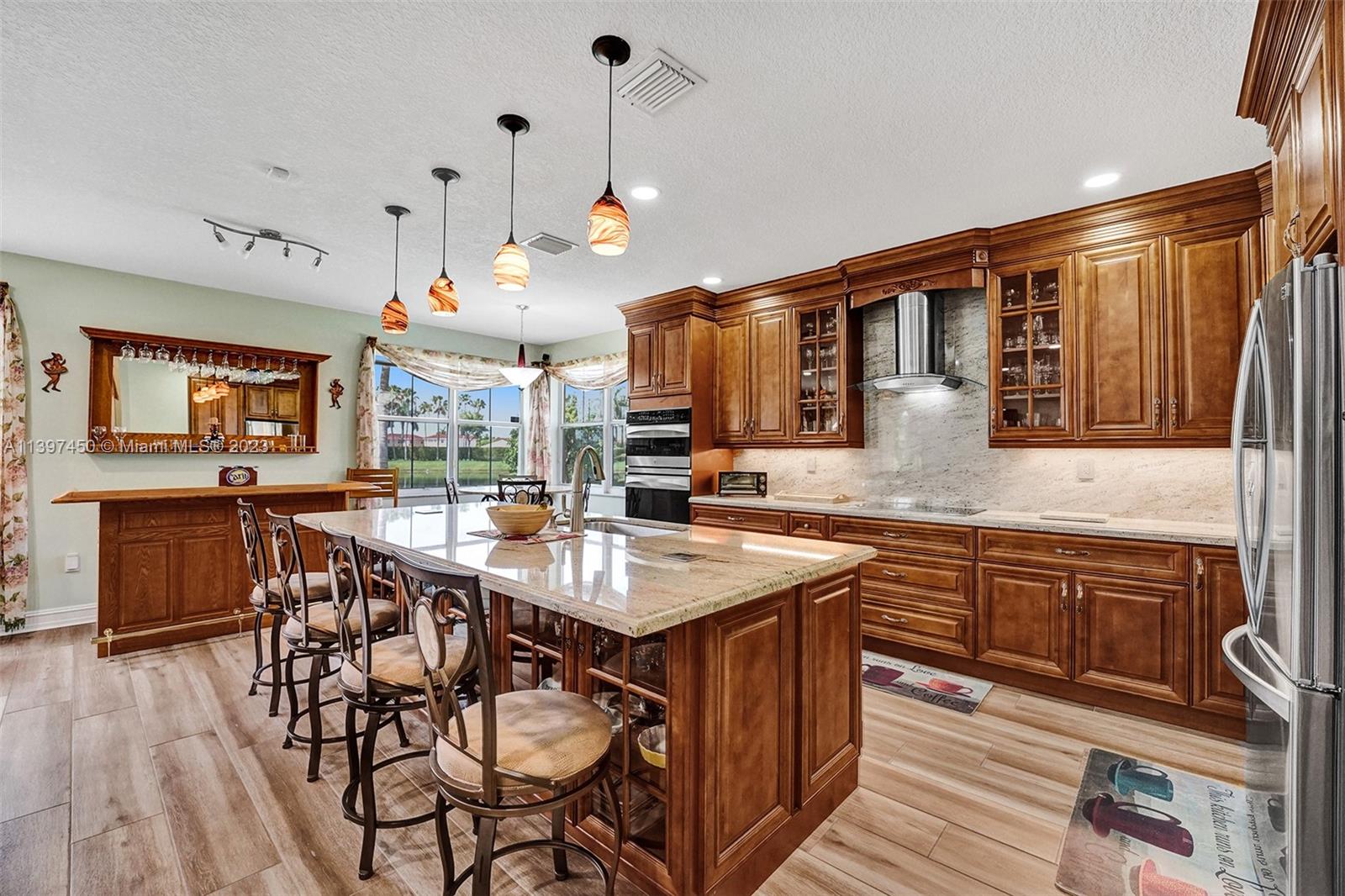 The most attractive and meticulously 1 owner recently renovated waterfront 4/3/2 home in Monarch Lakes currently for sale offering luxurious and serene living with rare wood-like porcelain tile throughout. Electrical wiring system and plumbing pipes has been replaced with upgraded materials throughout entire home in 2019. The gourmet kitchen is a culinary enthusiast's dream, boasting stainless steel appliances, sleek stone countertops, wine cooler, and an abundance of custom cabinetry. This home features a 1st Floor Bedroom and Full bathroom, a plus for a multi-generation family. Pictures don’t give this home justice, schedule your tour today.