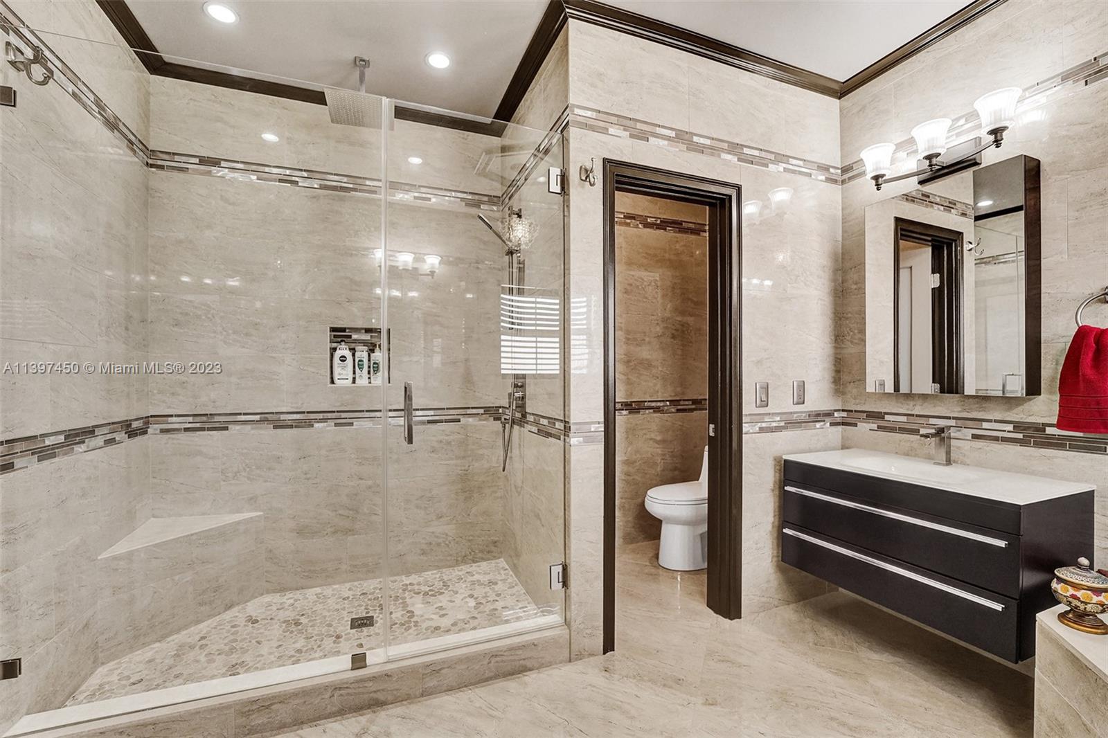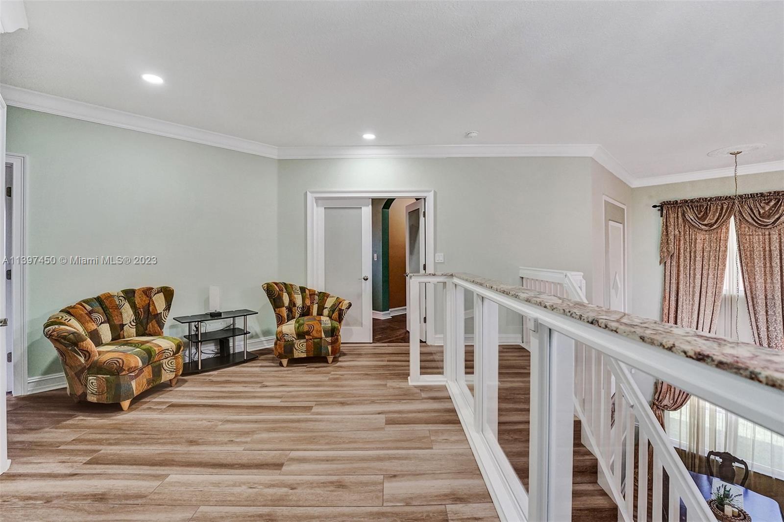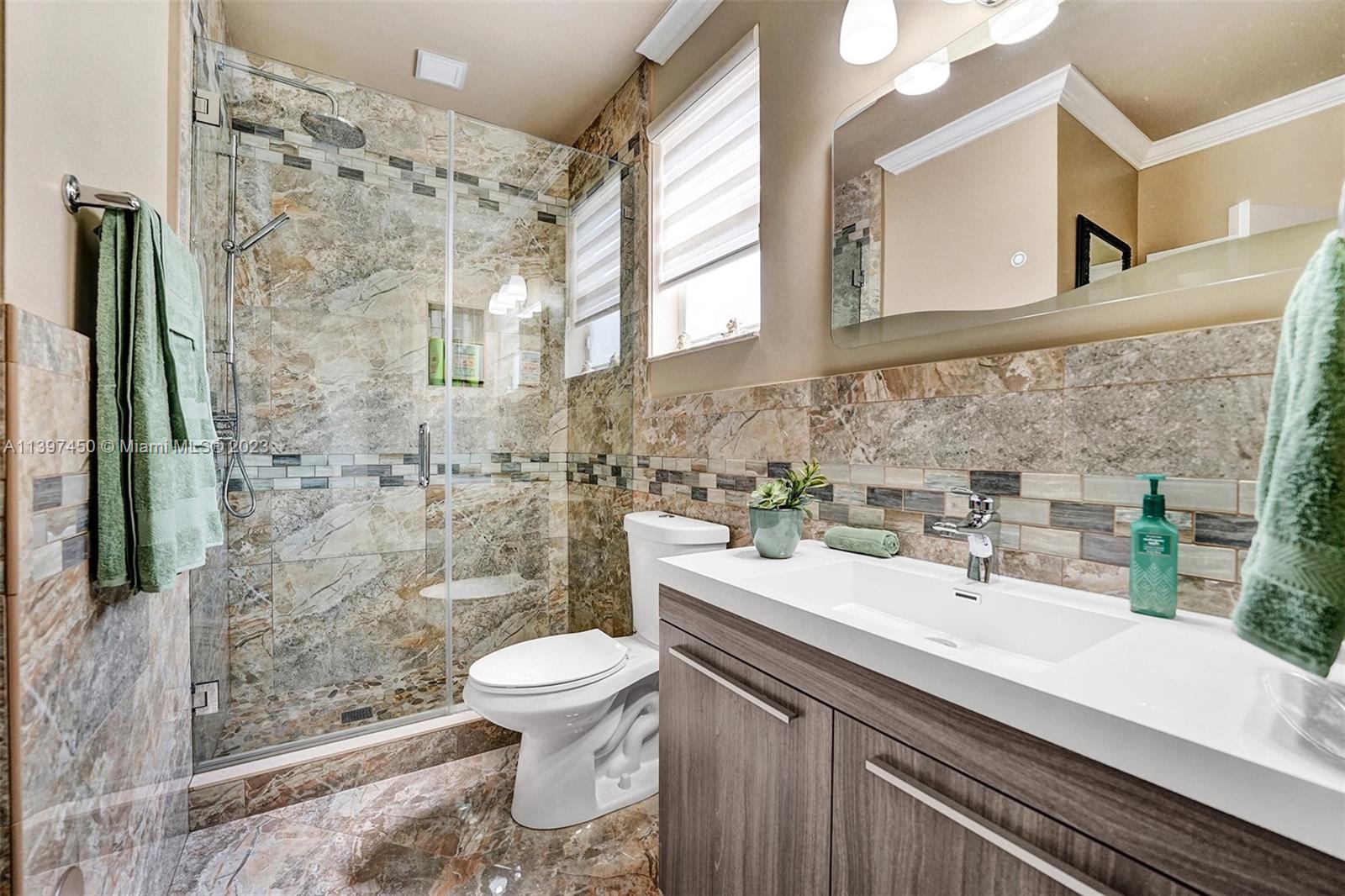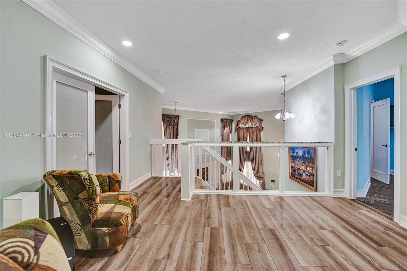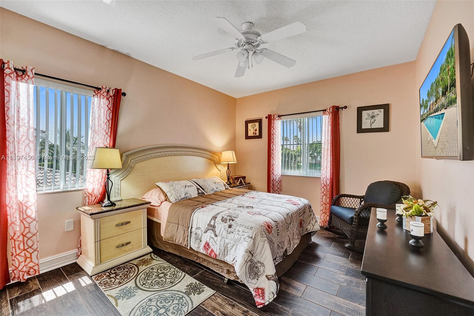 The most attractive and meticulously 1 owner recently renovated waterfront 4/3/2 home in Monarch Lakes currently for sale offering luxurious and serene living with rare wood-like porcelain tile throughout. Electrical wiring system and plumbing pipes has been replaced with upgraded materials throughout entire home in 2019. The gourmet kitchen is a culinary enthusiast's dream, boasting stainless steel appliances, sleek stone countertops, wine cooler, and an abundance of custom cabinetry. This home features a 1st Floor Bedroom and Full bathroom, a plus for a multi-generation family. Pictures don’t give this home justice, schedule your tour today.