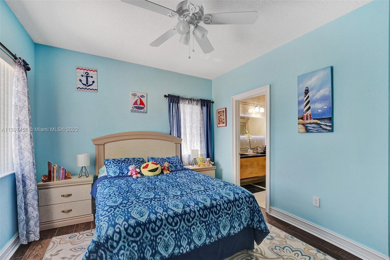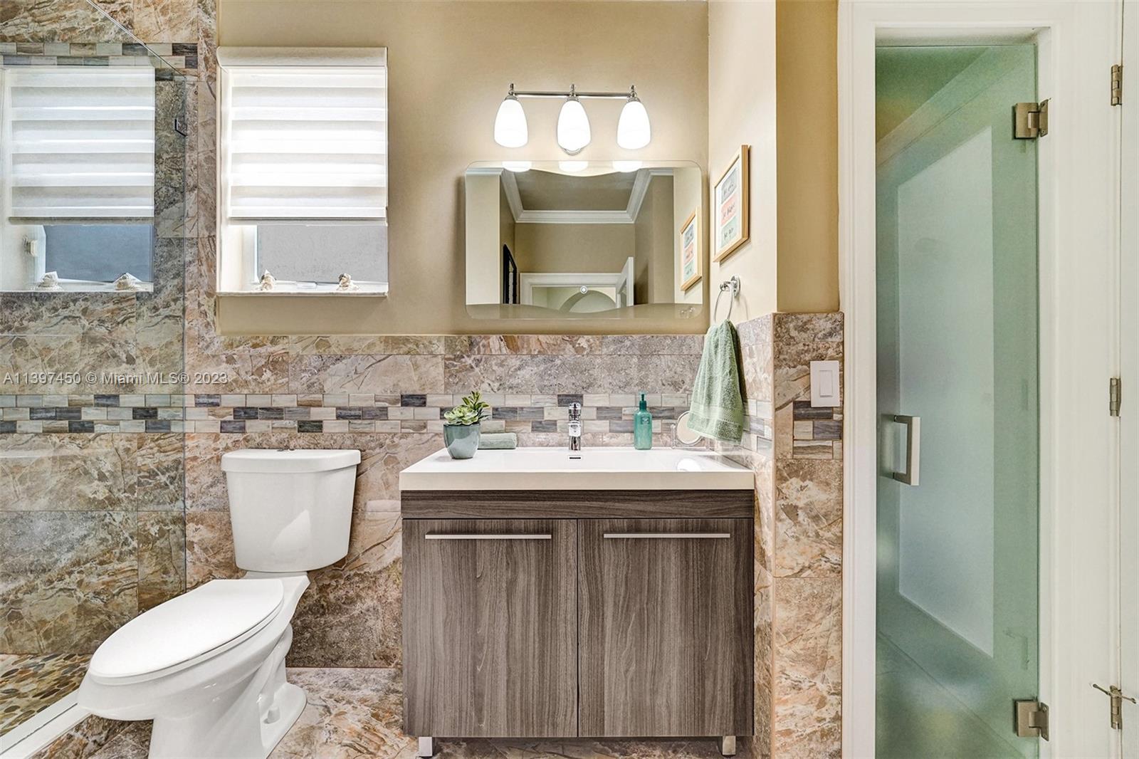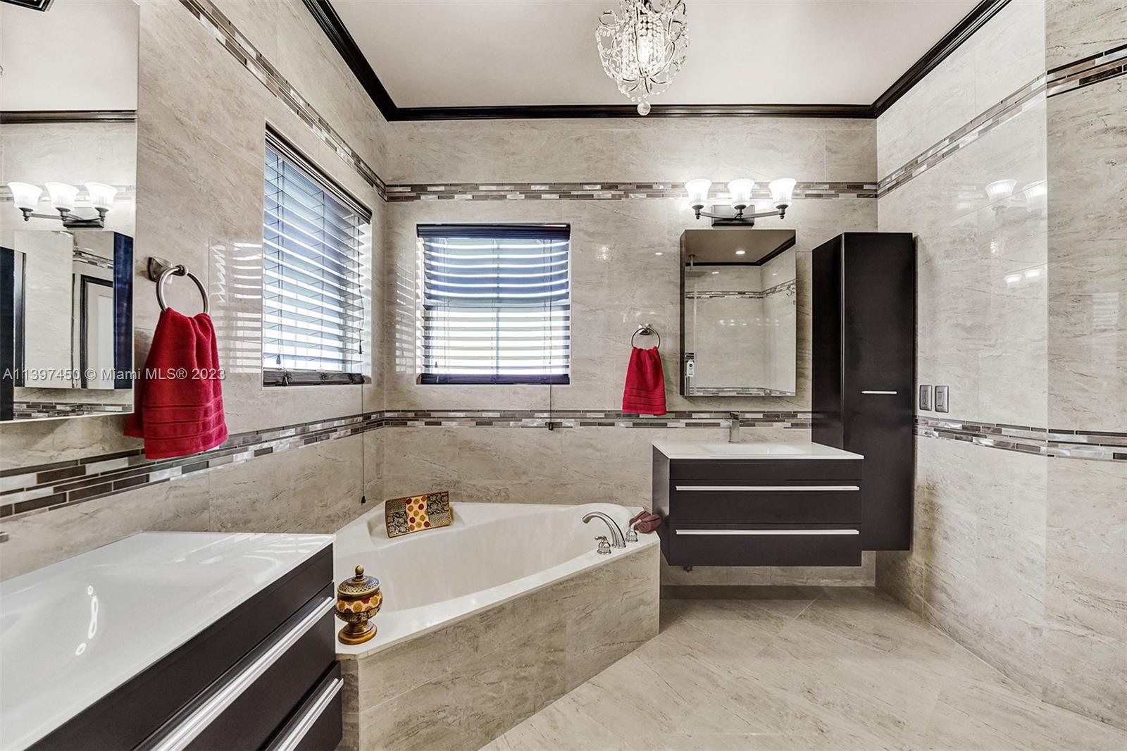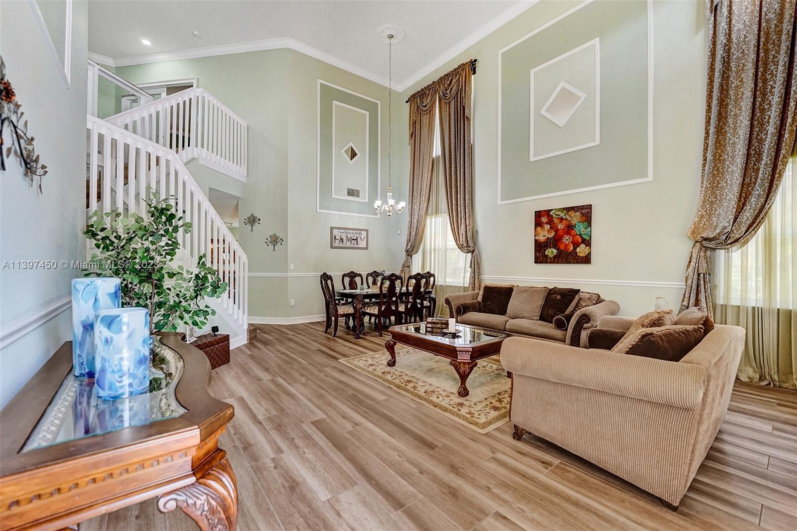 The most attractive and meticulously 1 owner recently renovated waterfront 4/3/2 home in Monarch Lakes currently for sale offering luxurious and serene living with rare wood-like porcelain tile throughout. Electrical wiring system and plumbing pipes has been replaced with upgraded materials throughout entire home in 2019. The gourmet kitchen is a culinary enthusiast's dream, boasting stainless steel appliances, sleek stone countertops, wine cooler, and an abundance of custom cabinetry. This home features a 1st Floor Bedroom and Full bathroom, a plus for a multi-generation family. Pictures don’t give this home justice, schedule your tour today.