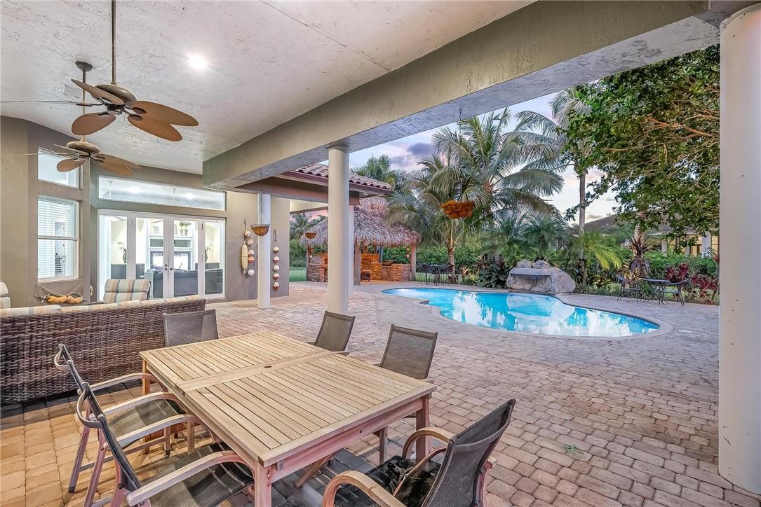 Located in the exclusive gated, boutique community of Hicks Estates, this custom estate features 5 Bed/4.5Bath + office includes a lounge/game room with wet bar. Soaring ceilings over 12 feet give your new home a light, bright and airy feel. The chef's kitchen features hardwood cabinets, granite counters and stainless steel appliances with a walk-in pantry. Huge primary suite with spa like bath and matching closets. Situated on a builder's acre, this home features an entertainer's dream backyard with large patio surrounding a freeform pool, chickee hut outdoor kitchen with built in grill and brick pizza oven, and lush tropical landscaping. Impact windows and doors, a newer tile roof (2016) makes this home safe and secure. Too many features to list, come and see today!
