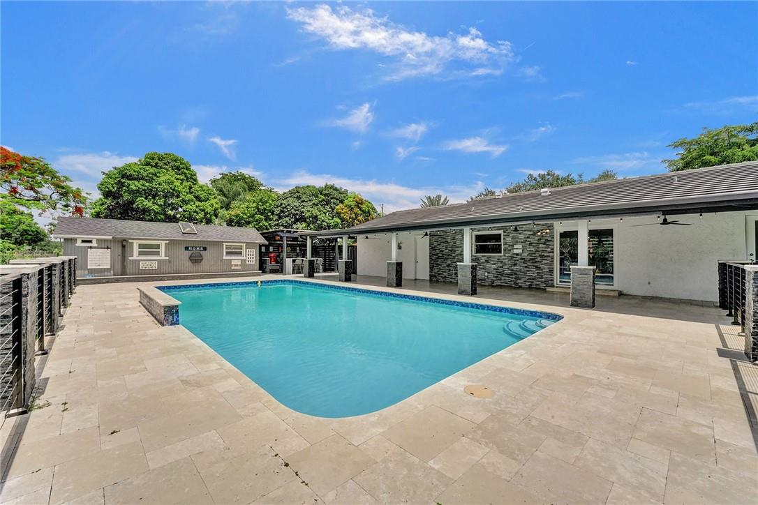 This is THE ONE! A rare find, this tastefully updated home is nestled on a sprawling almost 30,000sf lot in Davie. The modern interior features newer tile floors,recessed LED lighting,accent walls,built-in bar w/ice maker & wine cooler. Newer Roof,A/C,W/H & W/D. The remodeled kitchen is adorned w/Bosch appliances,quartz countertops & dual-toned cabinets. Enjoy safety & efficiency w/full impact windows&doors. Retreat to the travertine pool deck & indulge in a recently remodeled massive 20 x 40 saltwater pool. Prepare meals using your summer kitchen w/granite countertops,built inBBQ & KamadoJoe Ceramic Smoker. Cool off w/OutdoorShower & Enjoy music w/built in exterior Sonos Sound Sys. Have your guests stay in the adorable guest home This one is an all around must see, EASY TO SHOW!