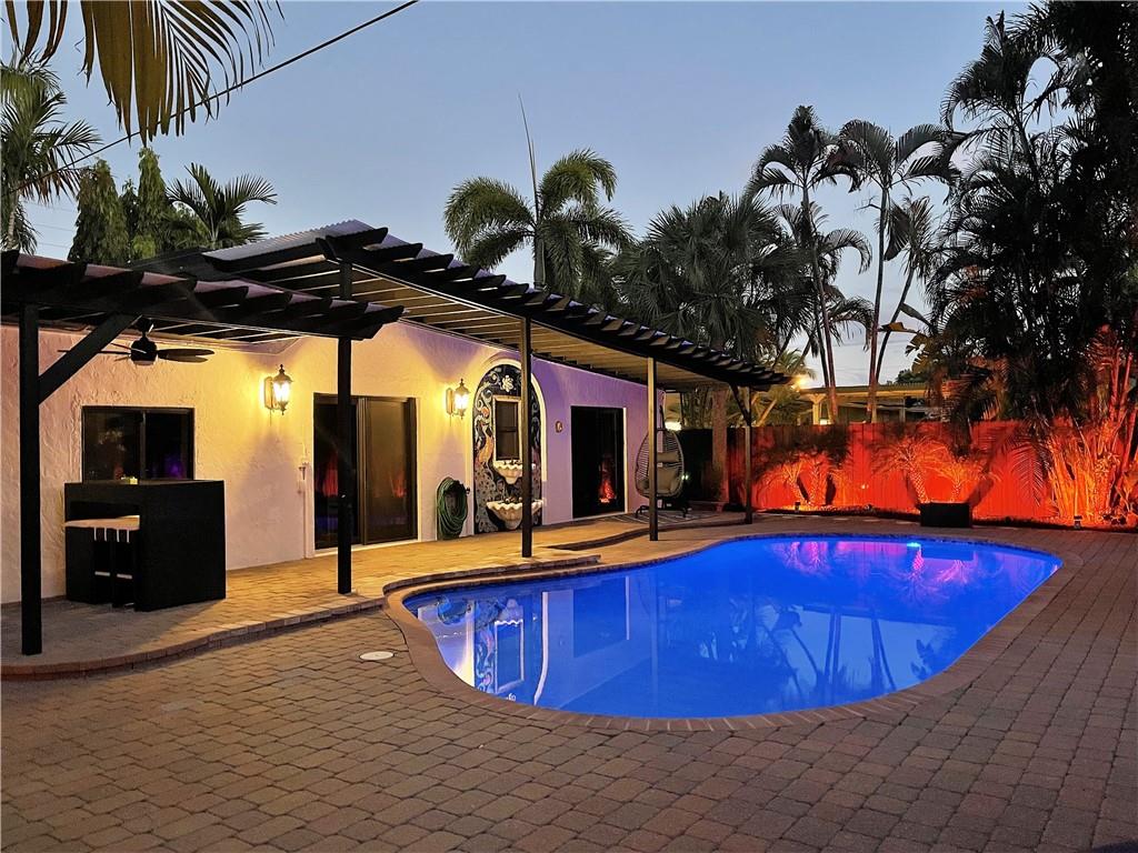 A unique opportunity to own this Poinsettia Height Oasis ideally located 2,5 miles from the beach: The backyard is lush with professional-design landscaping, allowing for the ultimate privacy. The serene lot is completely fenced in, with plenty of entertainment space and open areas to enjoy the renovated heated 35' long saltwater Swimming Pool, BBQ Grill Island, and Outdoor Dining. Brand new European soundproof Insulated Hurricane Windows & Doors. Custom Surround Outdoor Lighting. Each room welcomes light in, with original medieval wooden doors. Quartz kitchen countertops and new appliances. You’ll feel like you’re on vacation every day! Great income potential for a Short Term Rental! Minutes away from Dining, Shopping, George English Park, Boating, and Nightlife. Come see for yourself.