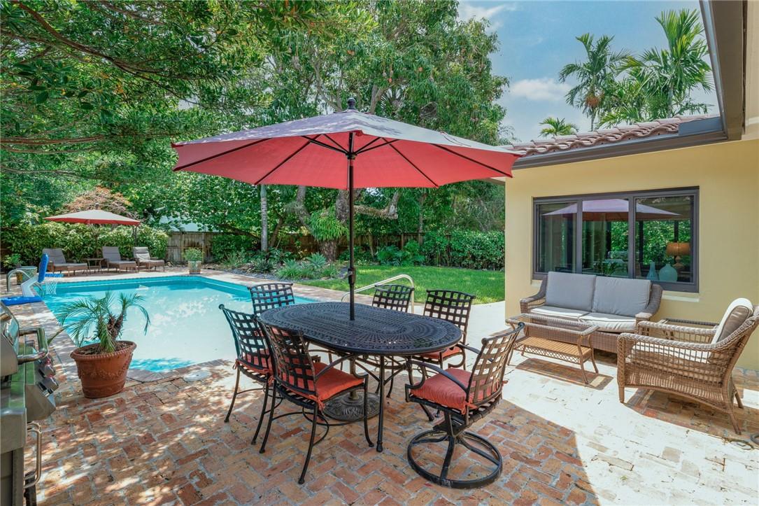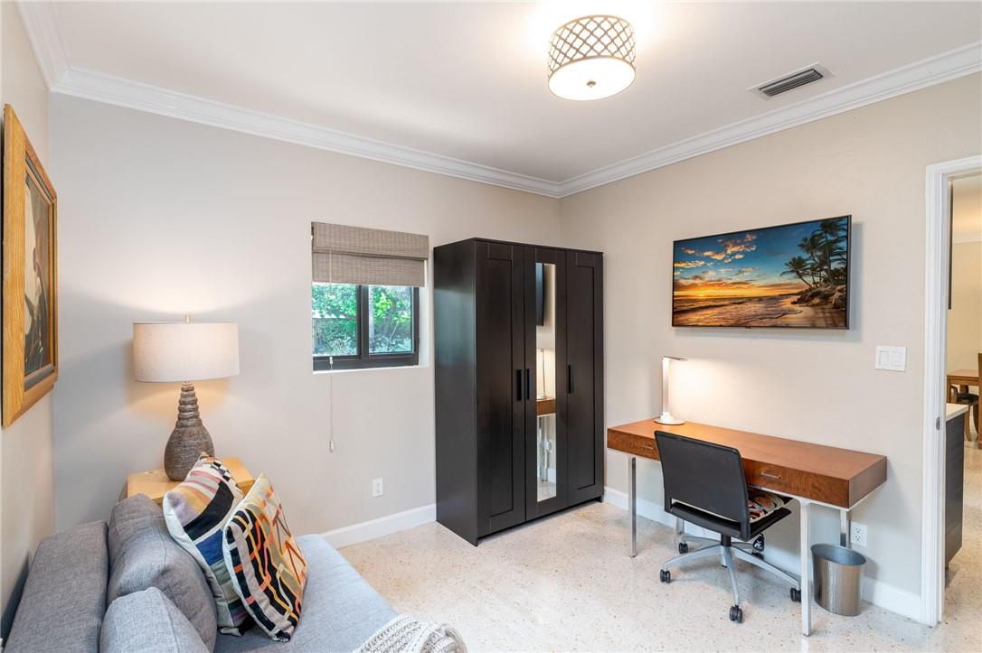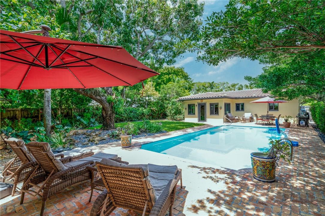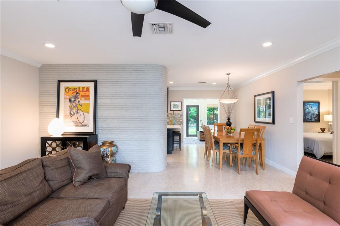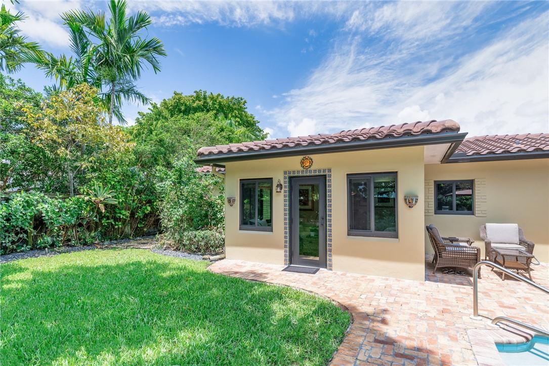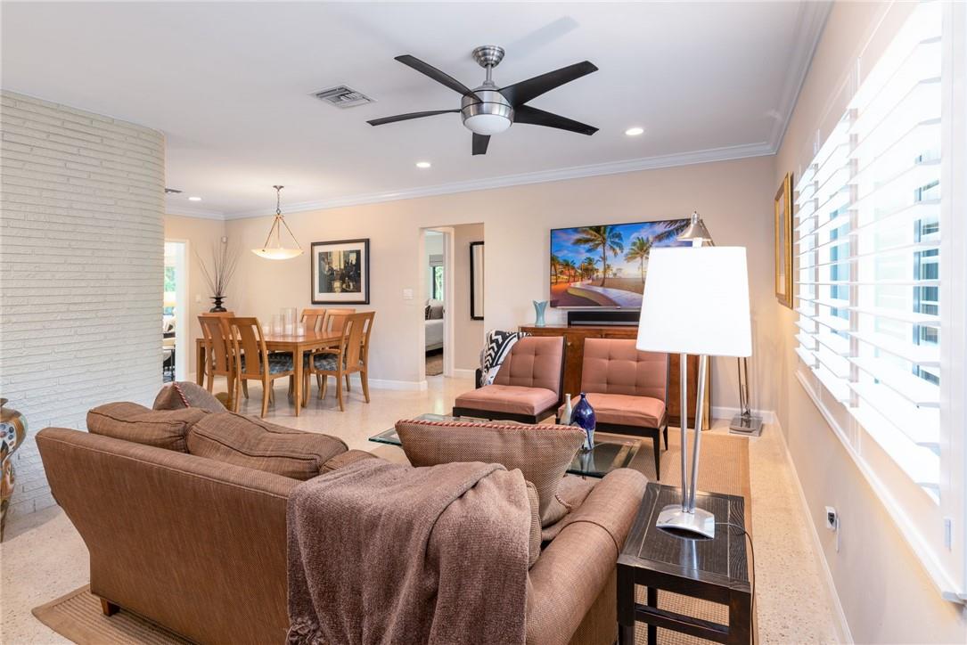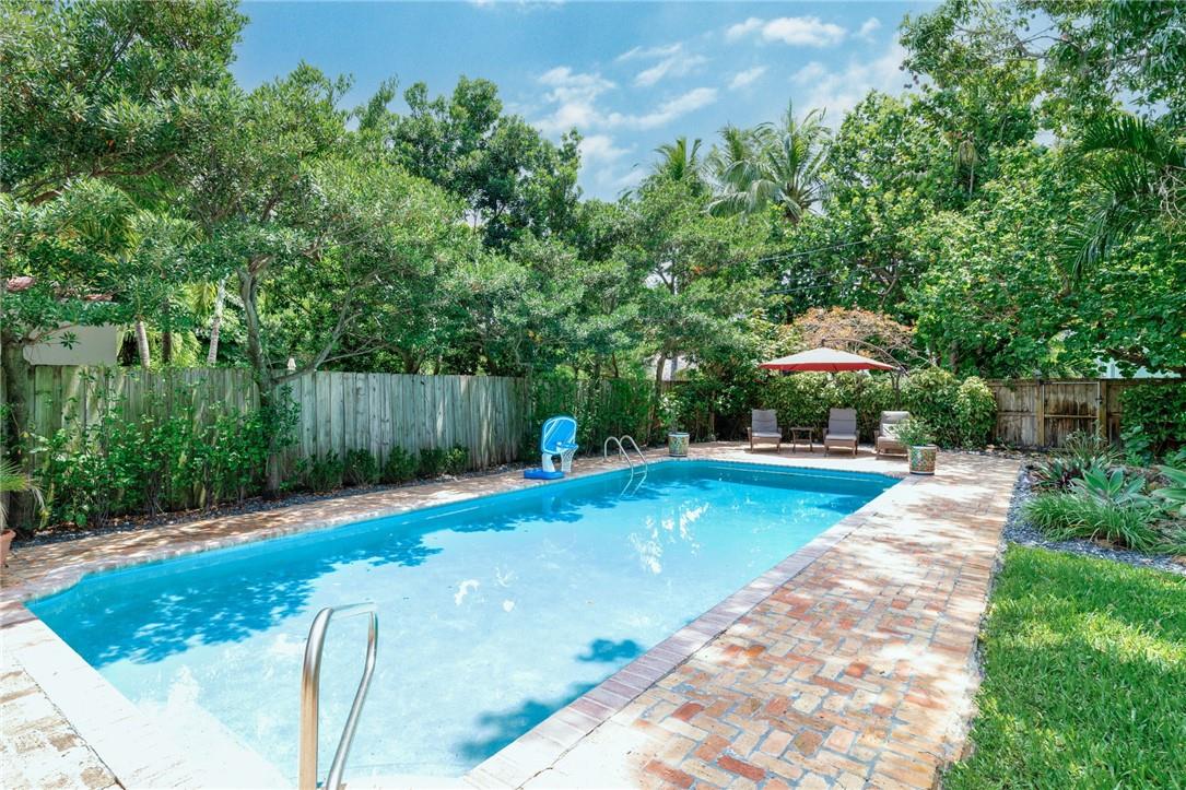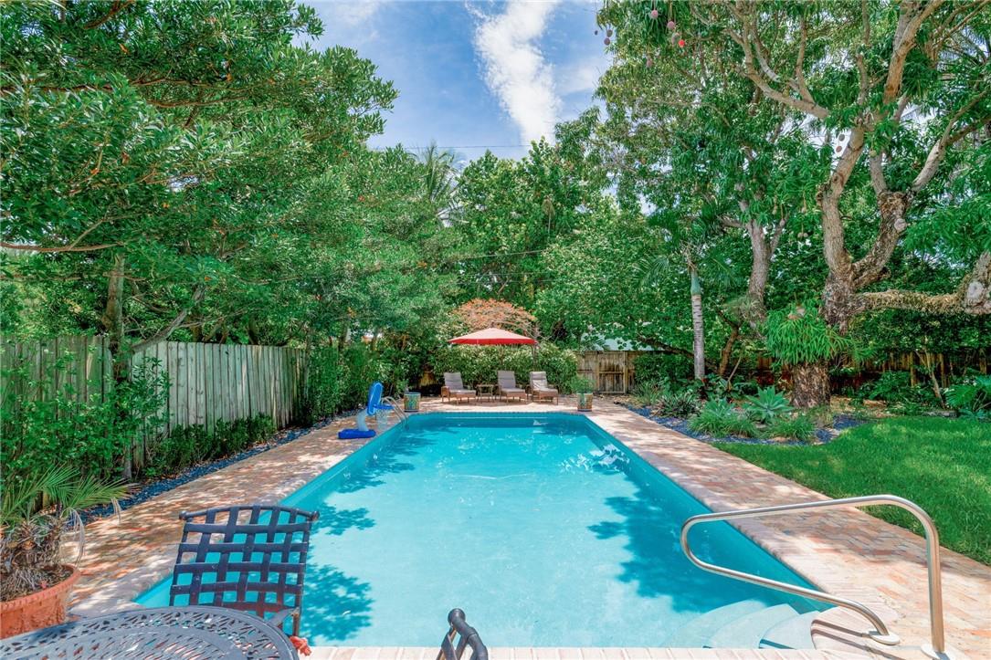 Welcome to this UPDATED Victoria Park classic with pleasant mid-century style. Ensuite primary & second bedroom & bedroom/office share a second bath. Lovely sunroom with built-ins & wide views of the uncommonly large salt water heated pool & ample serene yard space. Meticulously restored terrazzo floors compliment the mid-century look & feel. A must see with many improvements such as fresh paint inside & out, custom window treatments & IMPACT throughout including garage door. Step out of your sunroom & enjoy a fully fenced private yard with gorgeous shade fruit tree, brick surround with ample patio area perfect for parties. Perfect night scene with new low volt lighting front and back. The location is a great spot within easy reach of Las Olas, coffee shops, restaurants, airport & train.