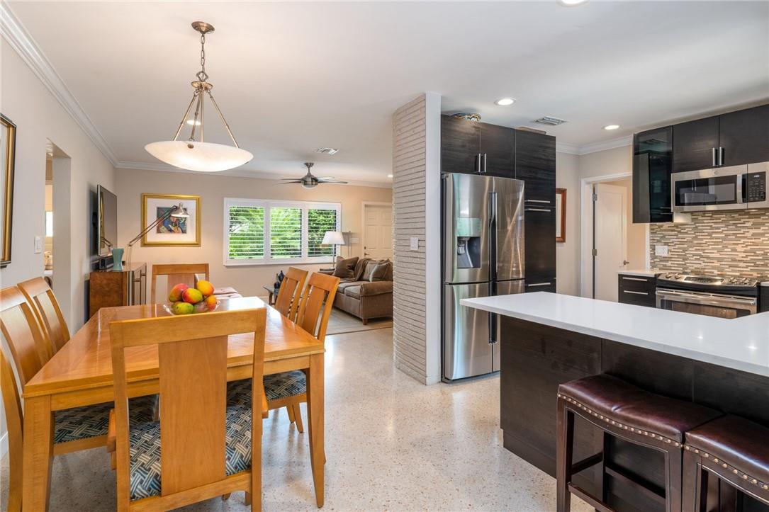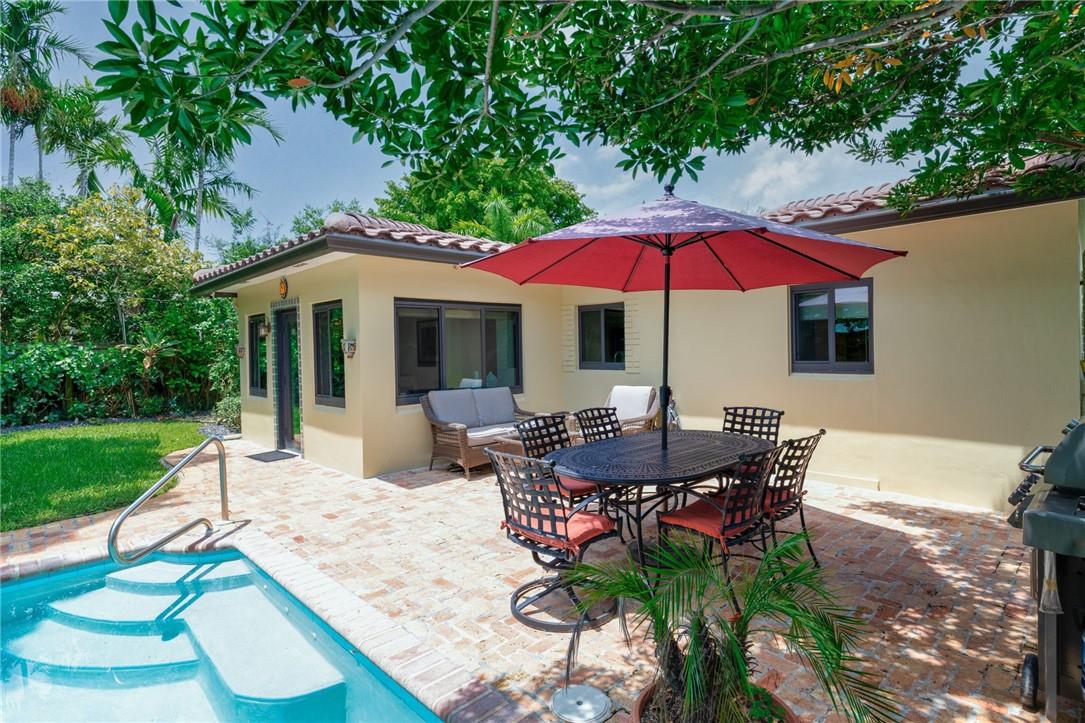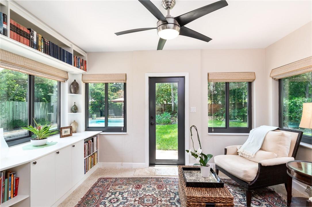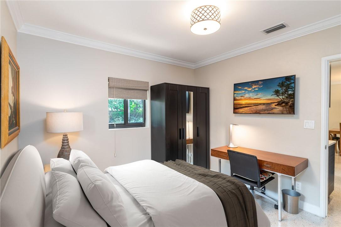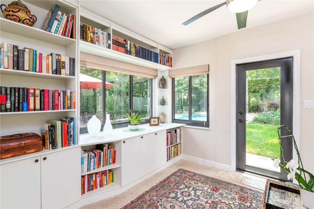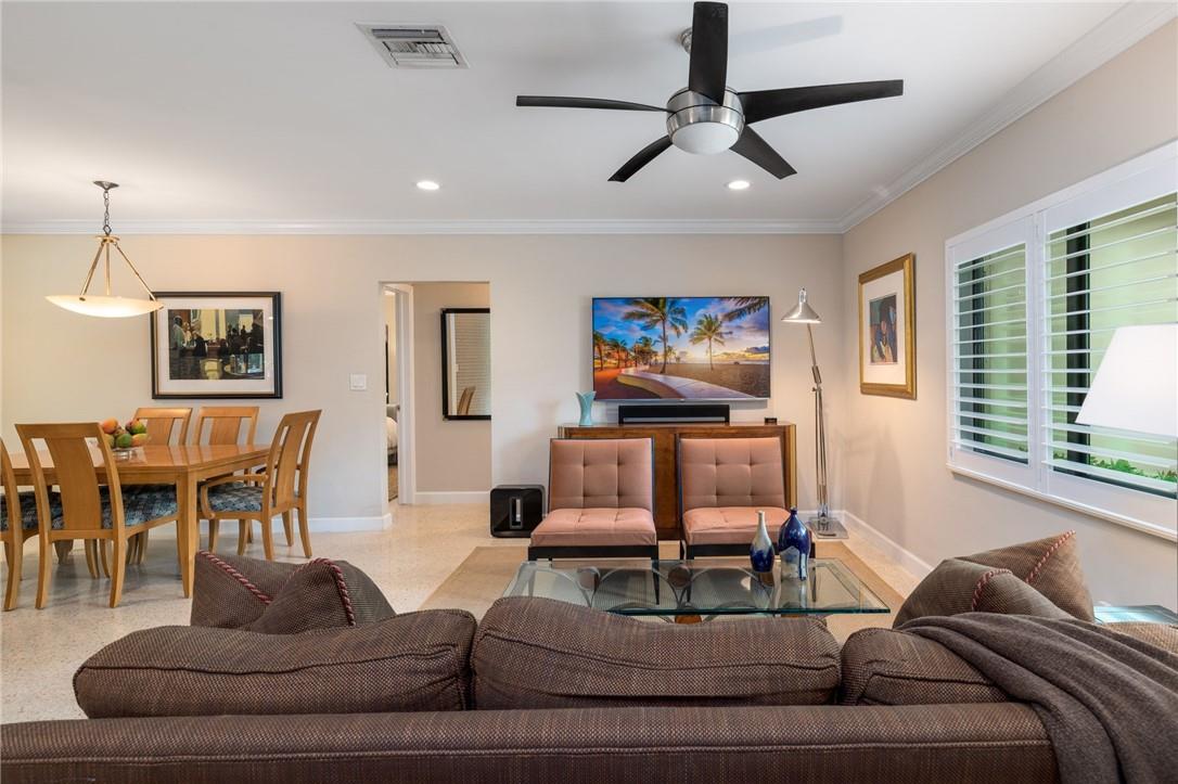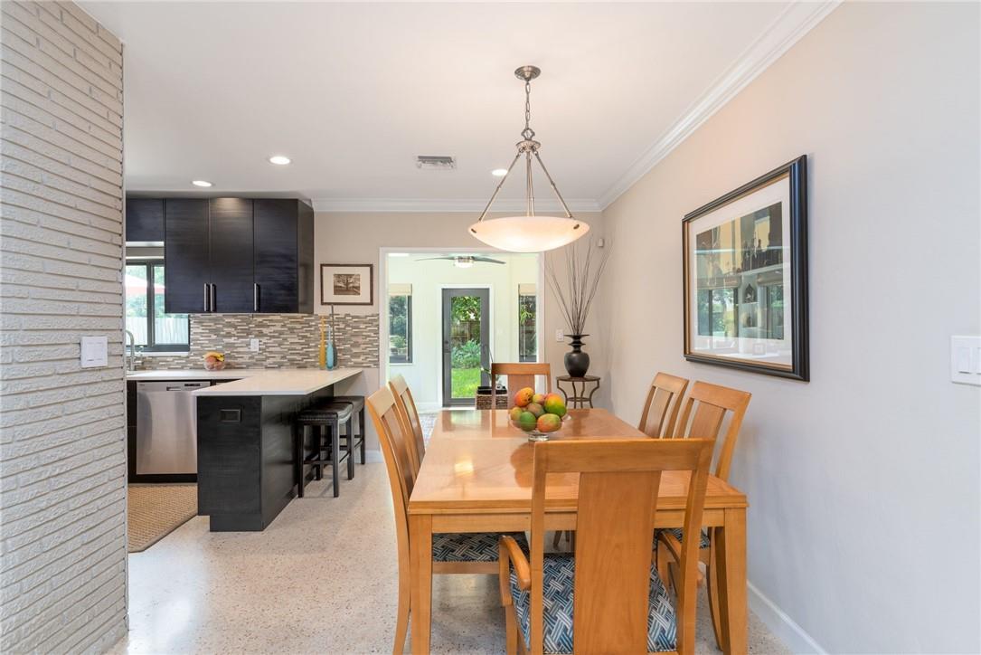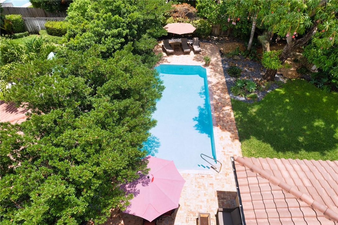 Welcome to this UPDATED Victoria Park classic with pleasant mid-century style. Ensuite primary & second bedroom & bedroom/office share a second bath. Lovely sunroom with built-ins & wide views of the uncommonly large salt water heated pool & ample serene yard space. Meticulously restored terrazzo floors compliment the mid-century look & feel. A must see with many improvements such as fresh paint inside & out, custom window treatments & IMPACT throughout including garage door. Step out of your sunroom & enjoy a fully fenced private yard with gorgeous shade fruit tree, brick surround with ample patio area perfect for parties. Perfect night scene with new low volt lighting front and back. The location is a great spot within easy reach of Las Olas, coffee shops, restaurants, airport & train.