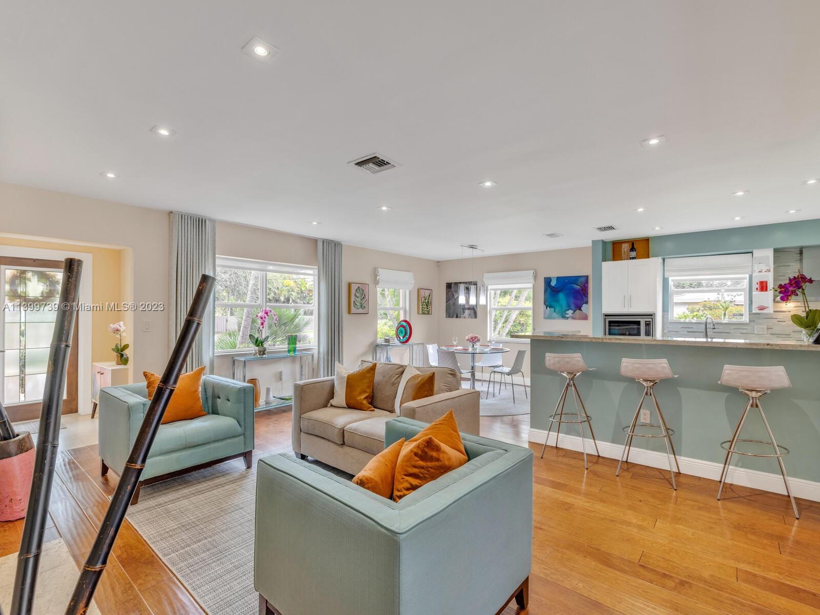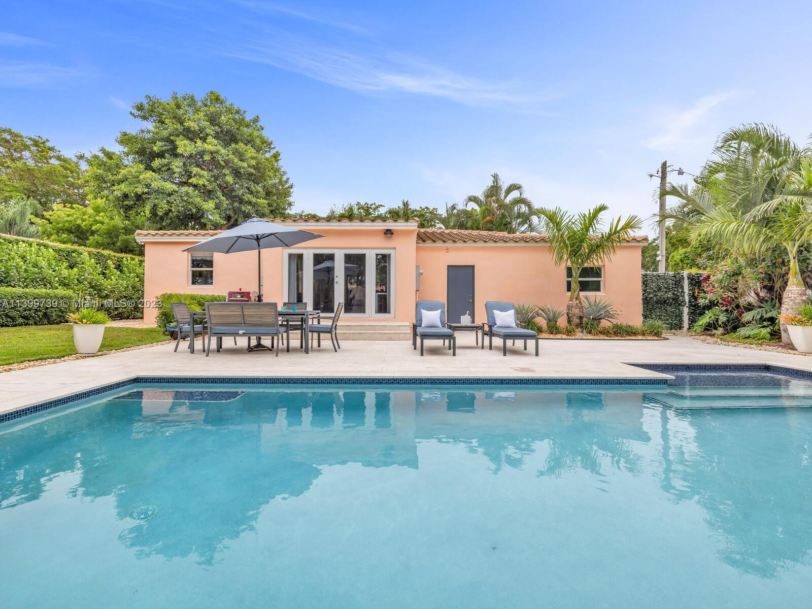 Welcome to Shores Casa Rosa, where everything is coming up roses in this nicely remodeled and updated pool home. Great open flow space with large, formal living and dining, updated kitchen and spacious media room with doors to the spectacular backyard. You’ll feel like you’re viewing the world through rose-tinted glasses when you marvel at the fabulous heated pool, large entertainment patio, and lush landscaping throughout— your own private oasis! Unwind in the lovely main ensuite retreat with updated bath, plus a guest wing with updated bath and two spacious guest rooms. All situated on a corner lot with a side alley garage entry (spacious one-car garage), new roof, new AC, impact windows-doors— in a non-flood zone, just a few blocks to the shops and restaurants of Downtown Miami Shores.